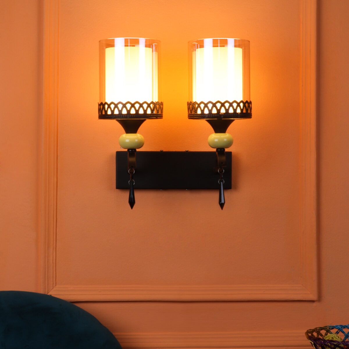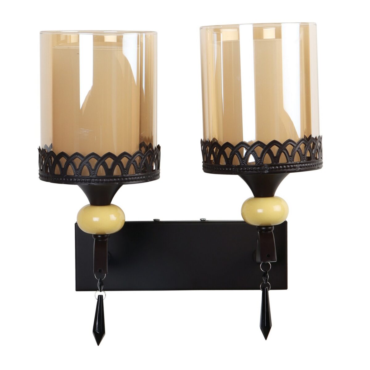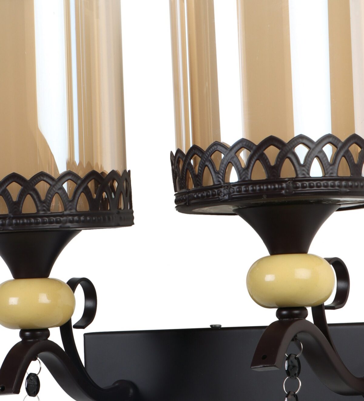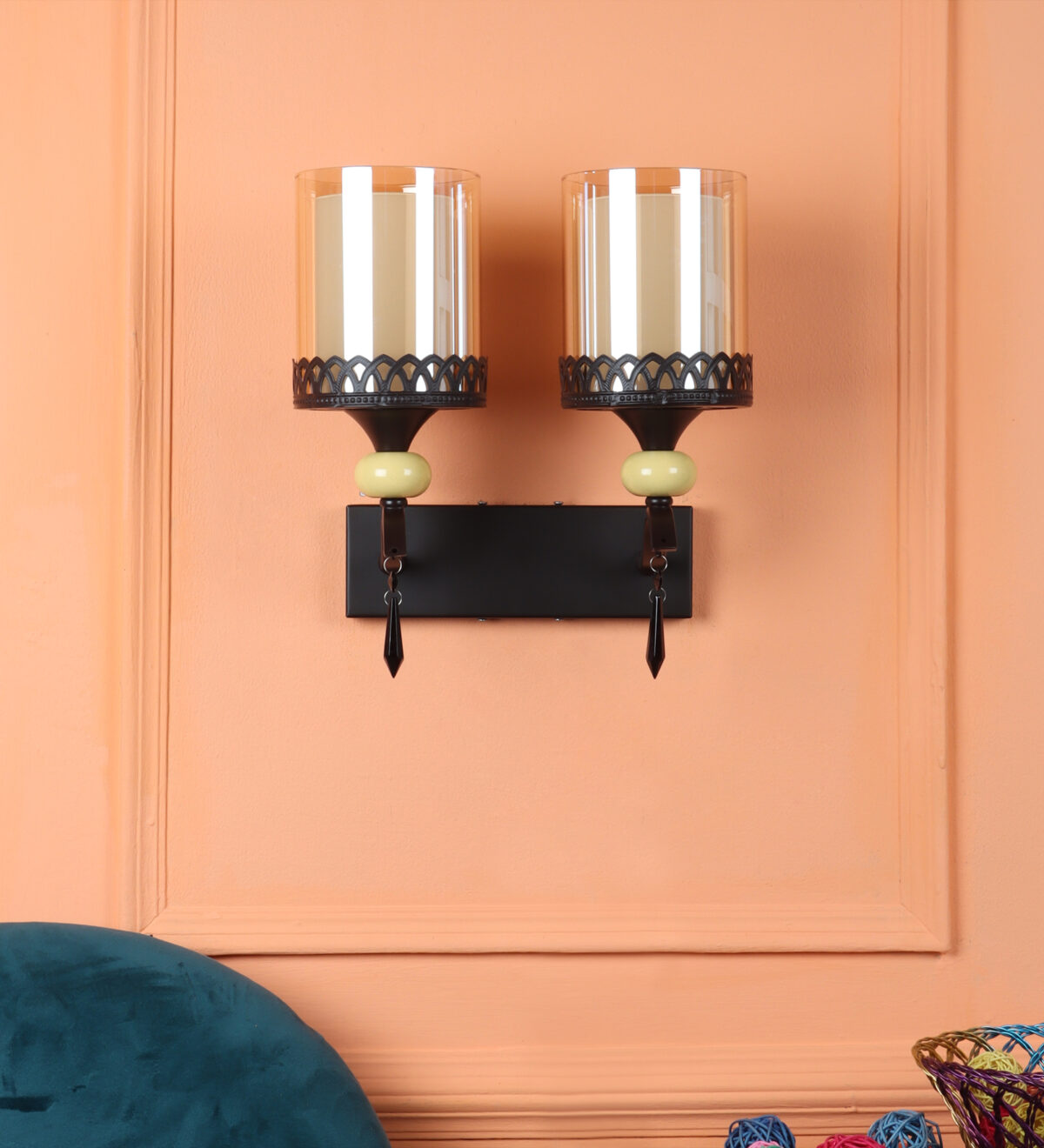 Dark brown, (wood) finish double wall light with cylinderical Champaign colored two layered glass . It is maintenance free, easy to remove glass and wash it. Comes with an E27 holder, only the change of lamp is required, which is available locally everywhere. Application includes both residential and commercial premises wherever it matches with your interiors. Matching single wall light code – WL2693. LAMP NOT INCLUDED.