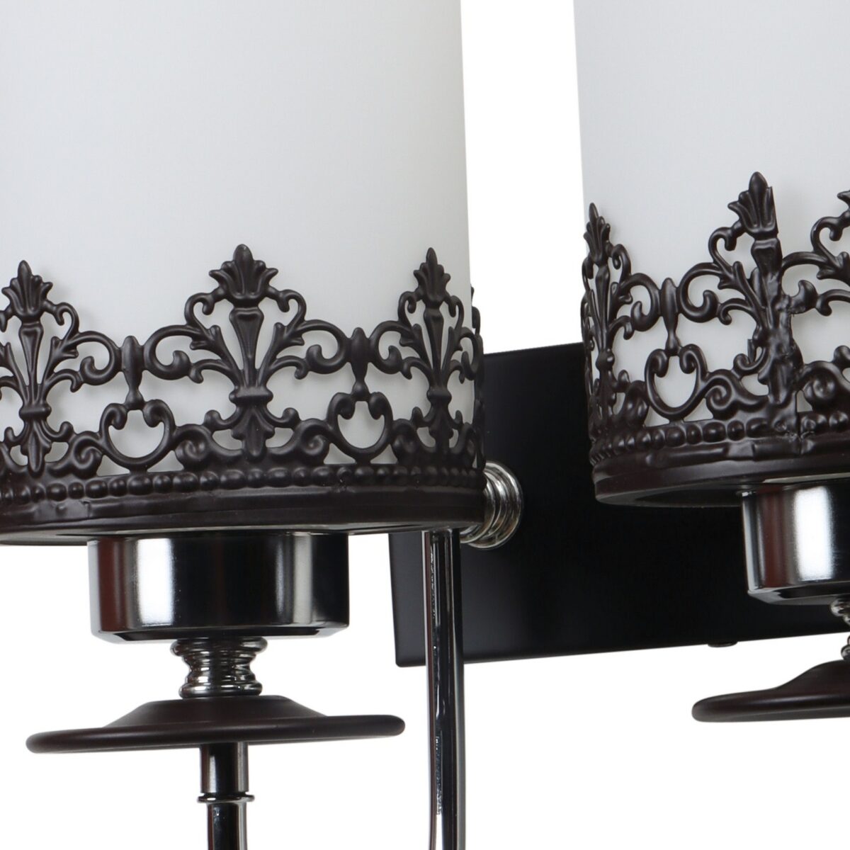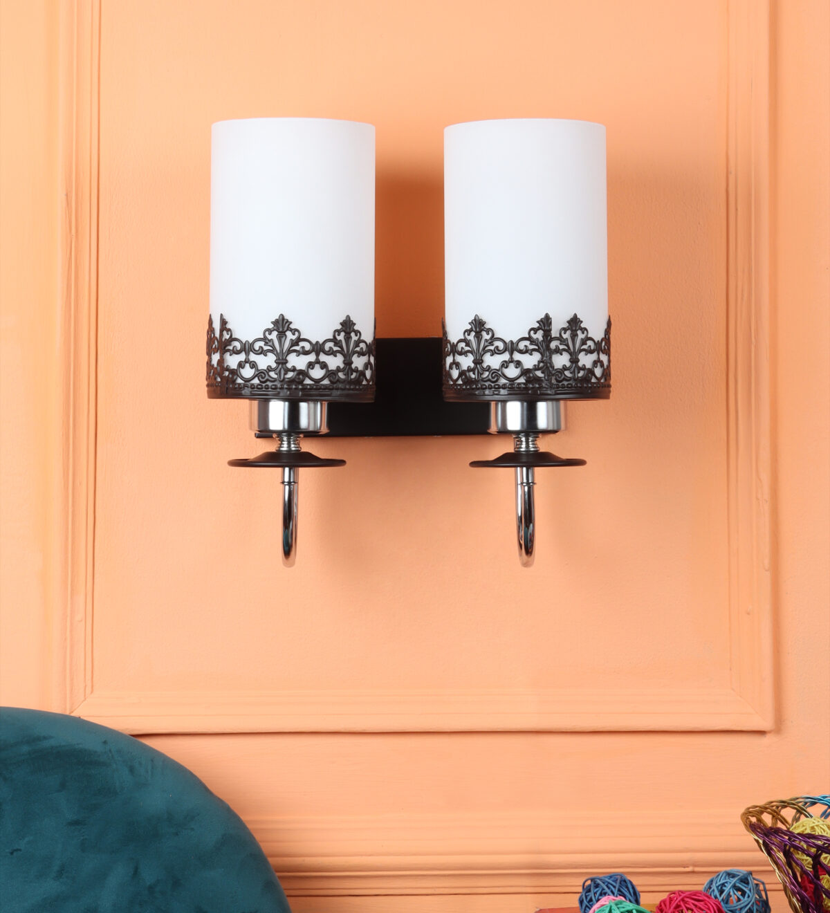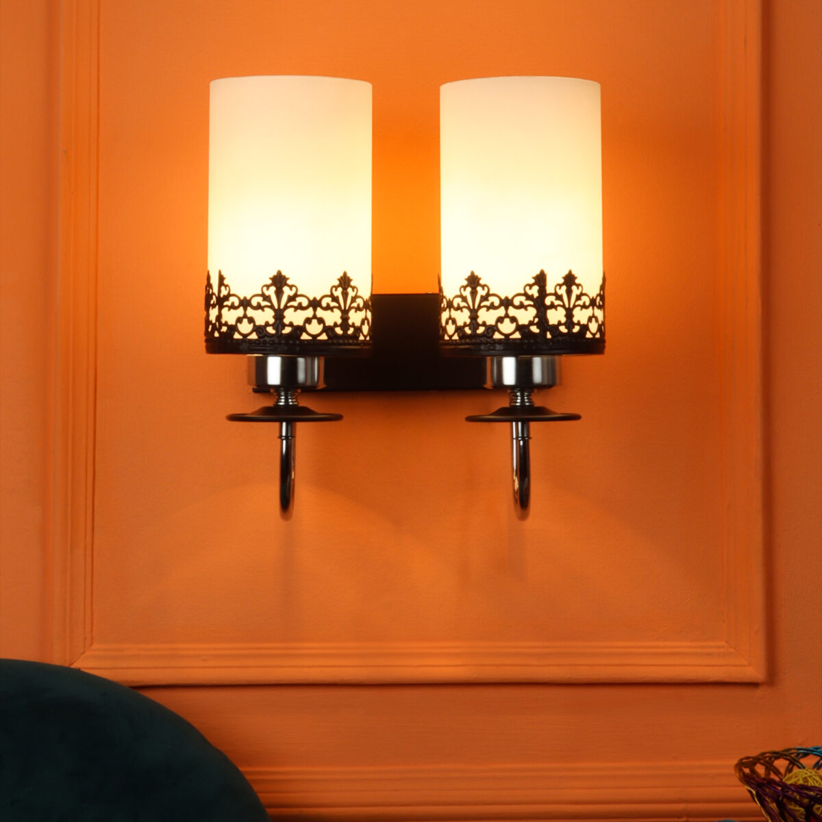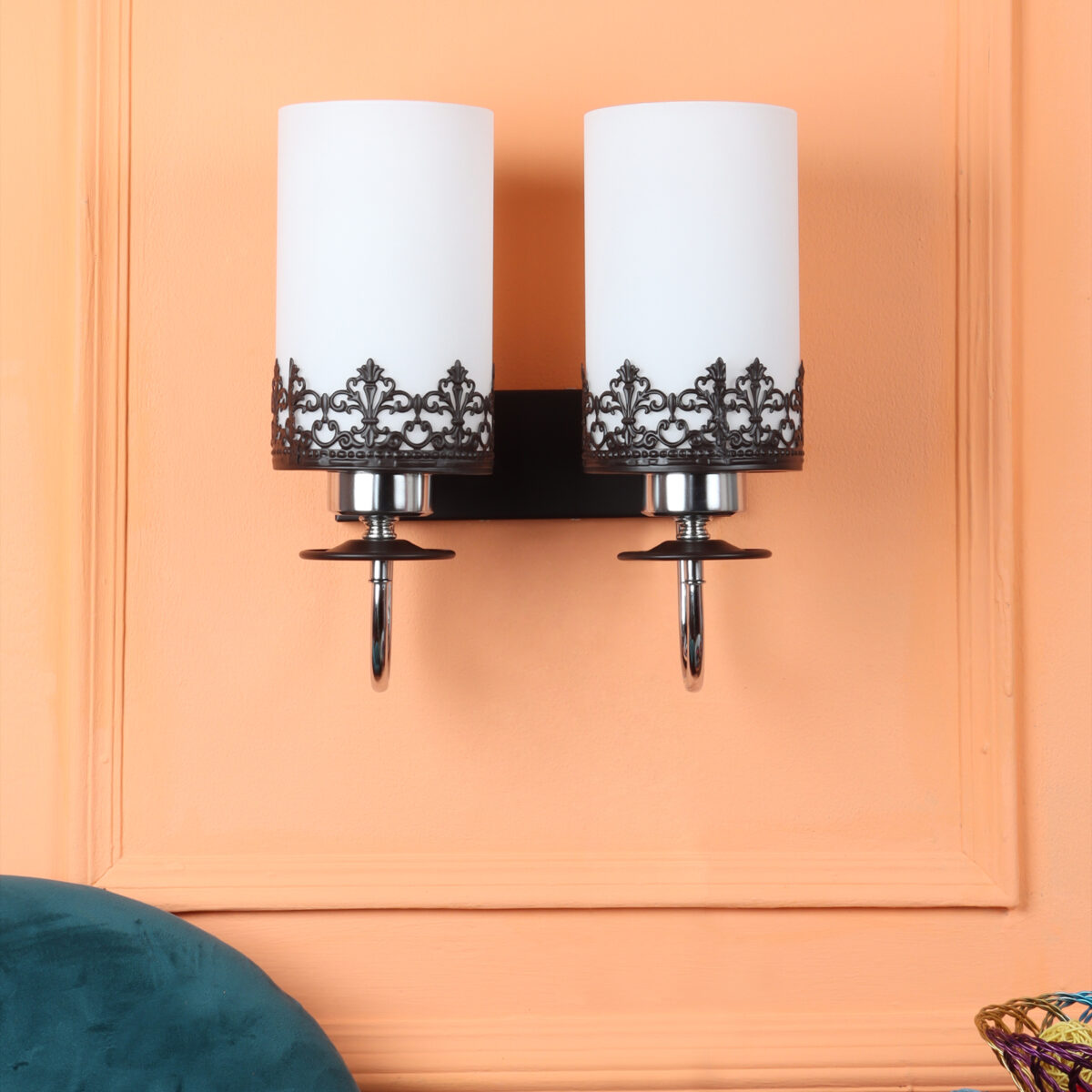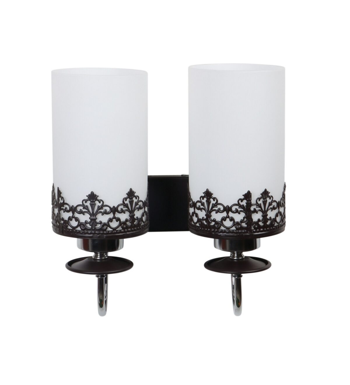 Dark brown (wood) double wall light made of mild steel, with big round cylindrical white glass. It is maintenance free, easy to remove glass and wash them, comes with an E27 holder, only the change of lamp is required, which is available locally everywhere. You can of course swap out the bulb for one that is dimmable, has a higher light output or a different color temperature. Application includes both residential and commercial premises wherever it matches with your interiors. Matching single wall light code- WL2727. Matching Chandellier code – CH462-6, CH462-9. Can be customized as per requirement in case of bulk quantities. LAMP NOT INCLUDED.