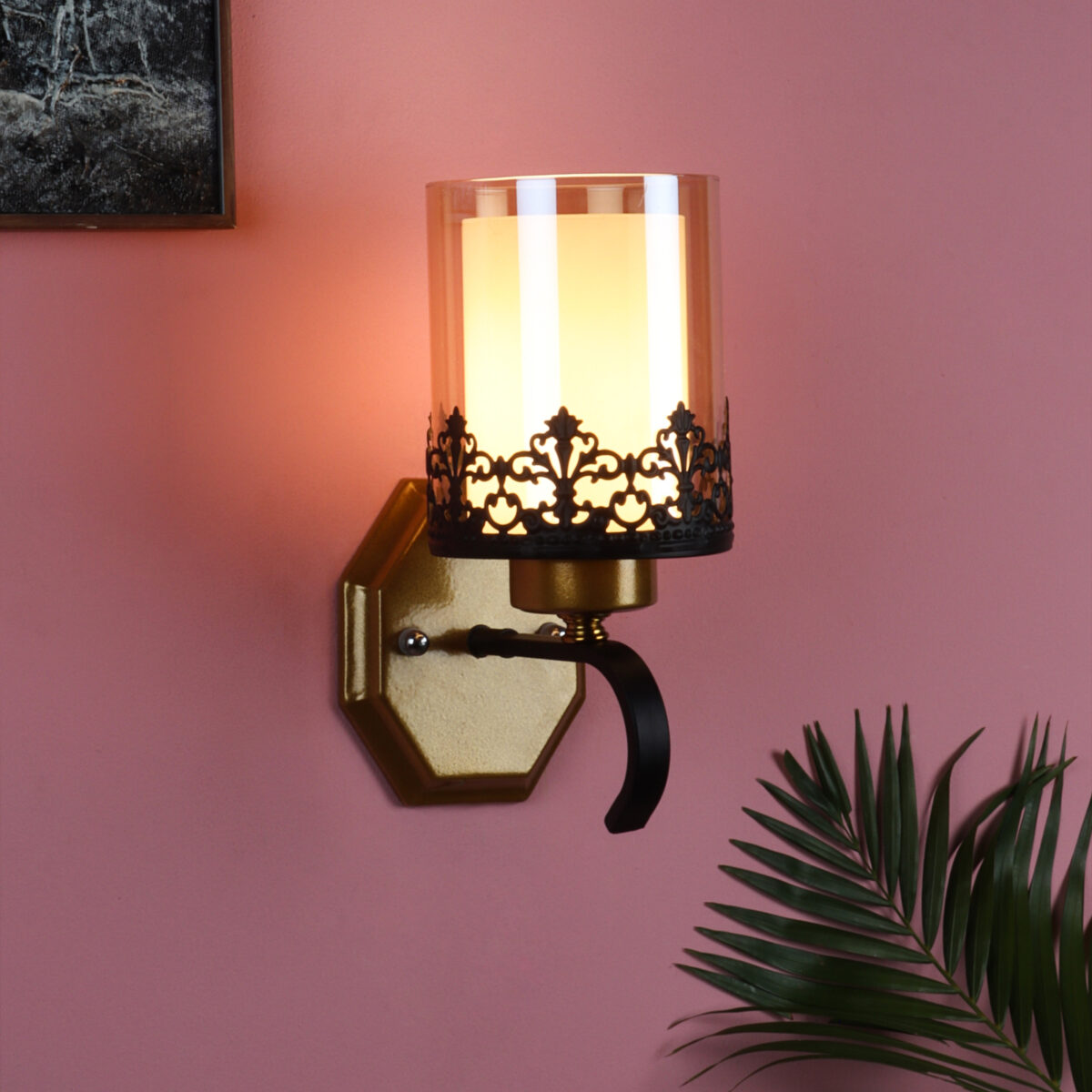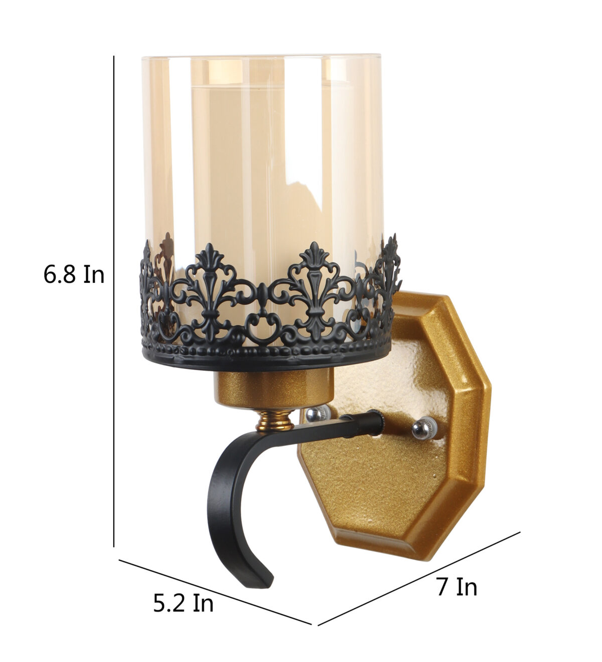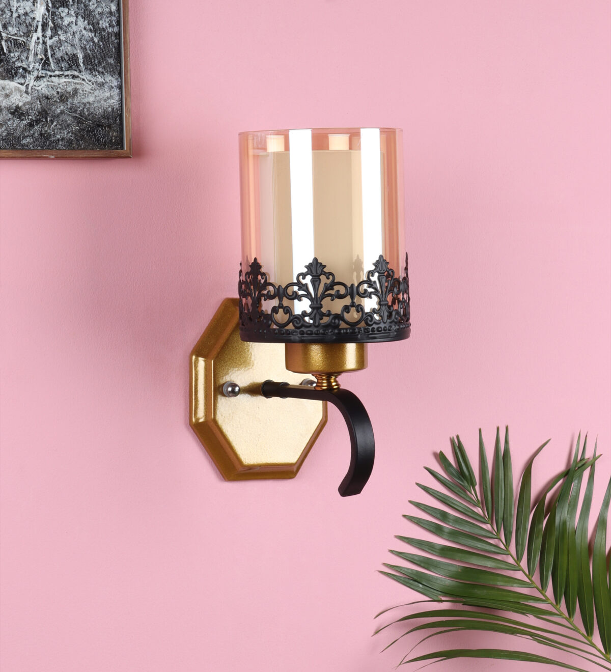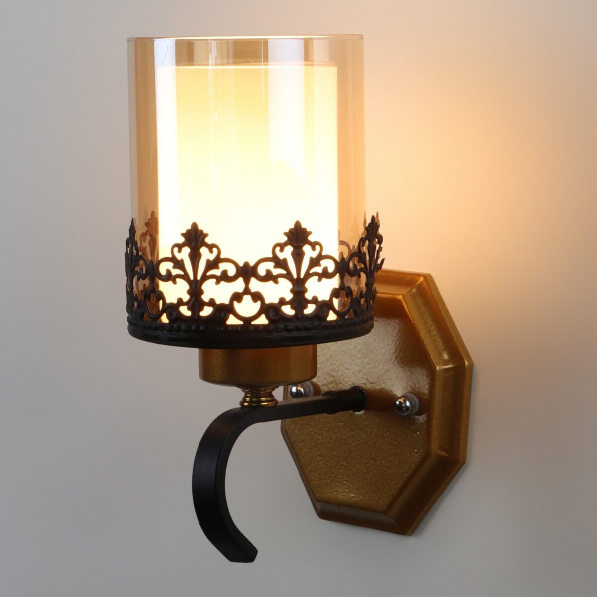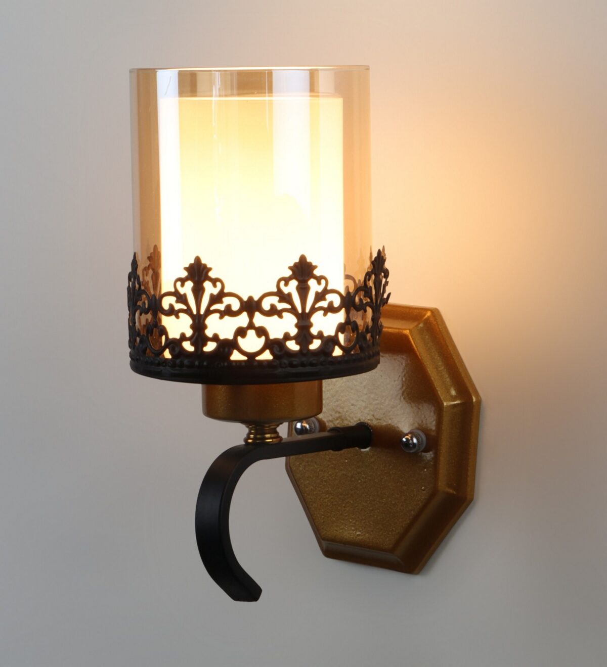 Antique gold, brown finish single wall light having round, cylindrical two layered champaign coloured glass. It is maintenance free, easy to remove glass and wash it, comes with an E27 holder, only the change of lamp is required, which is available locally everywhere. Application includes both residential and commercial premises wherever it matches with your interiors. Matching double wall light code – WL2730. Can be customized as per requirement in case of bulk quantity, LAMP NOT INCLUDED.