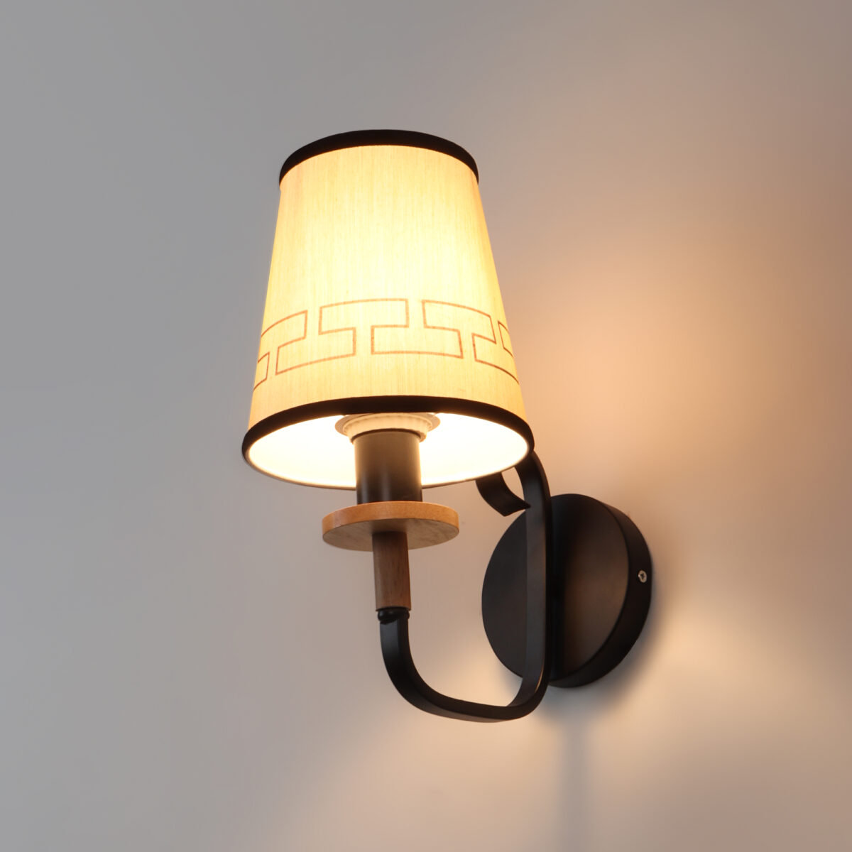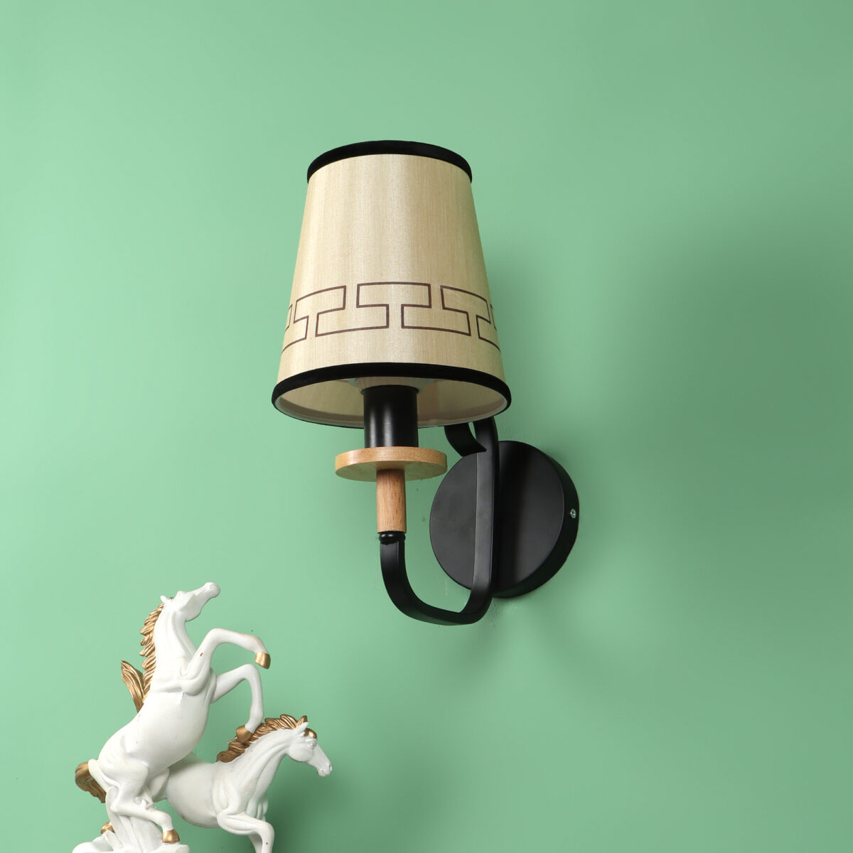 Dark brown finish, taper off white fabric shade with brown border at both the edges, single wall light made of mild steel. It is maintenance free. Comes with an E27 holder, only the change of lamp is required, which is available locally everywhere. Application includes both residential and commercial premises wherever it matches with your interiors. Can be customized as per requirement. LAMP NOT INCLUDED.