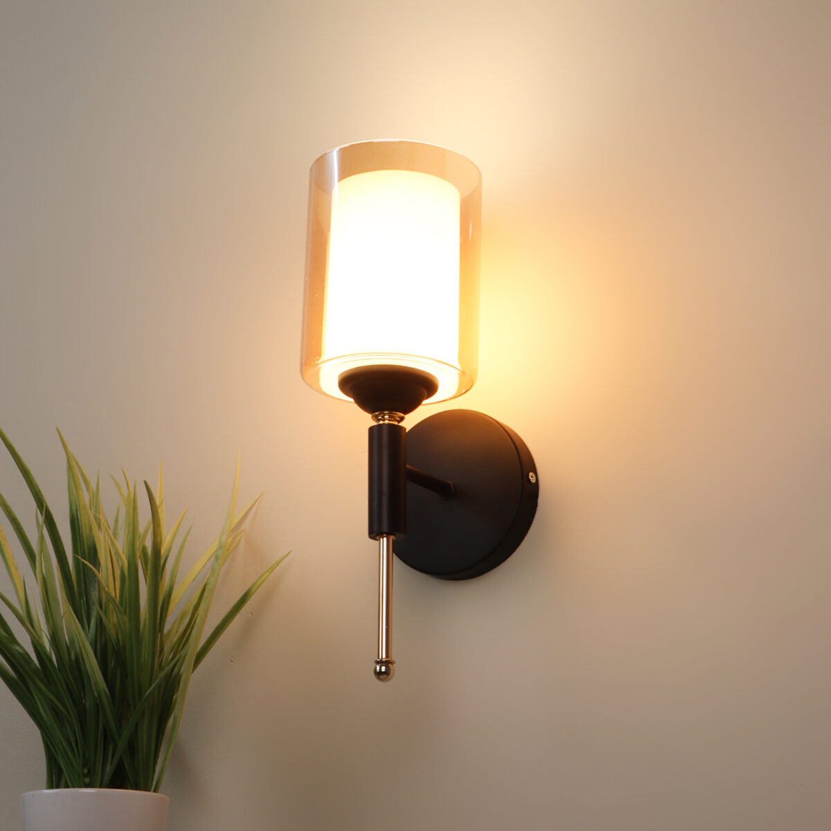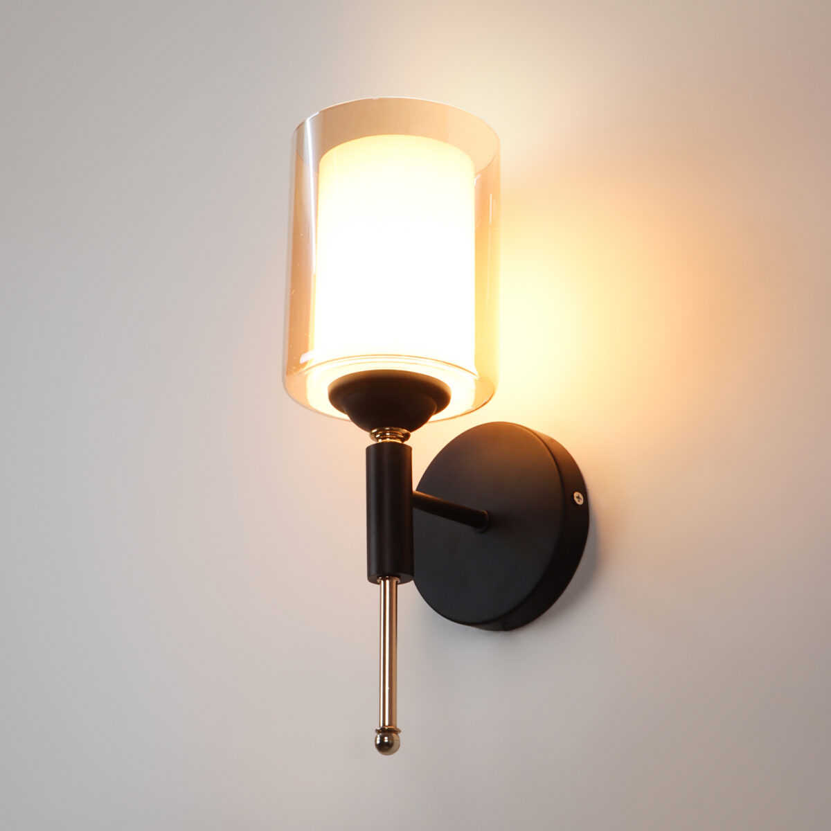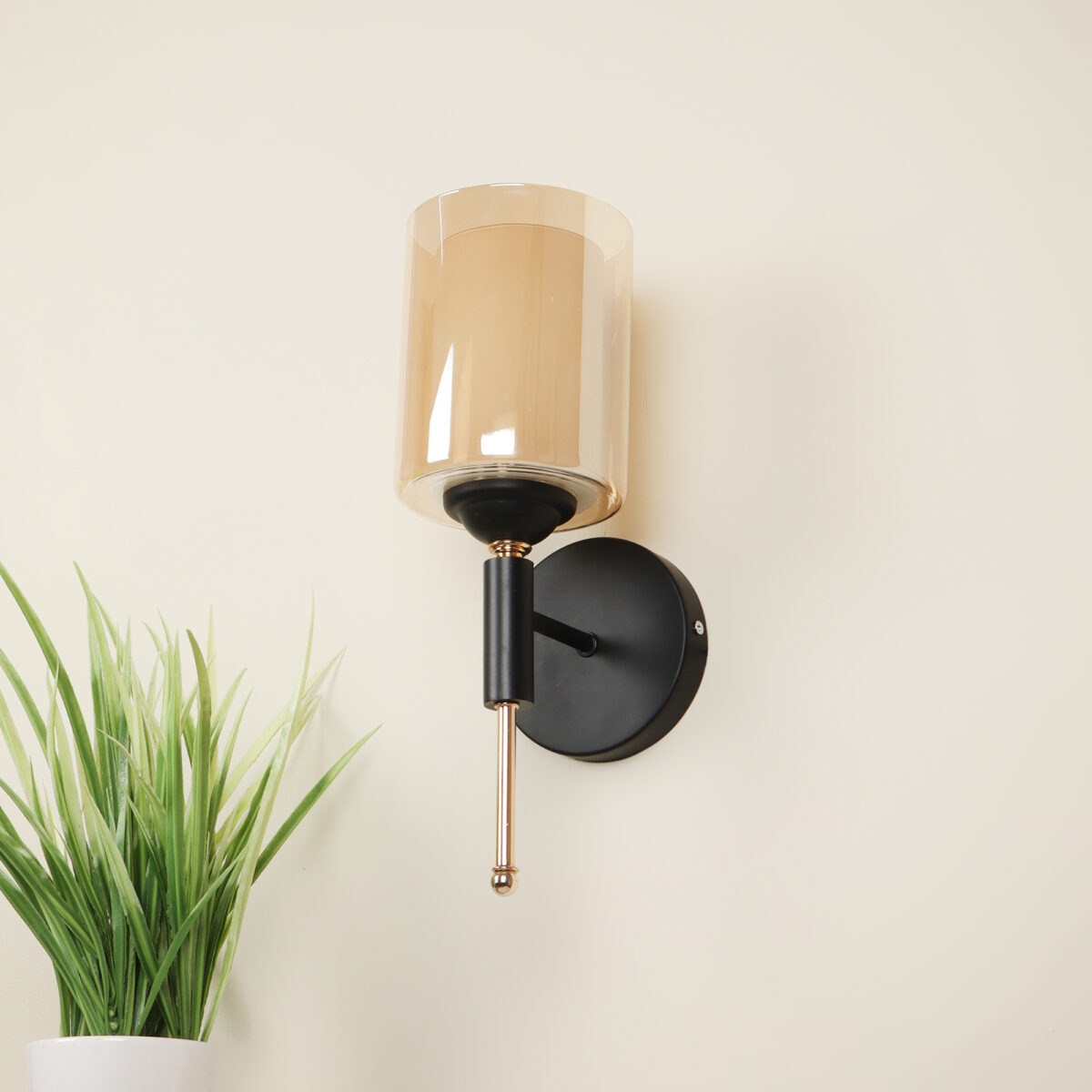 Modern, brown, Gold finish, mild steel single wall light in Champaign colour two layered glass. It is maintenance free, comes with an E27 holder, only the change of lamp is required, which is available locally everywhere. Application includes both residential and commercial premises wherever it matches with your interiors. Can be customized as per requirement. LAMP NOT INCLUDED.