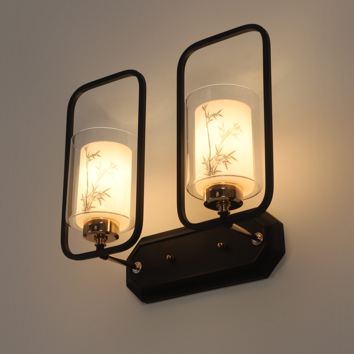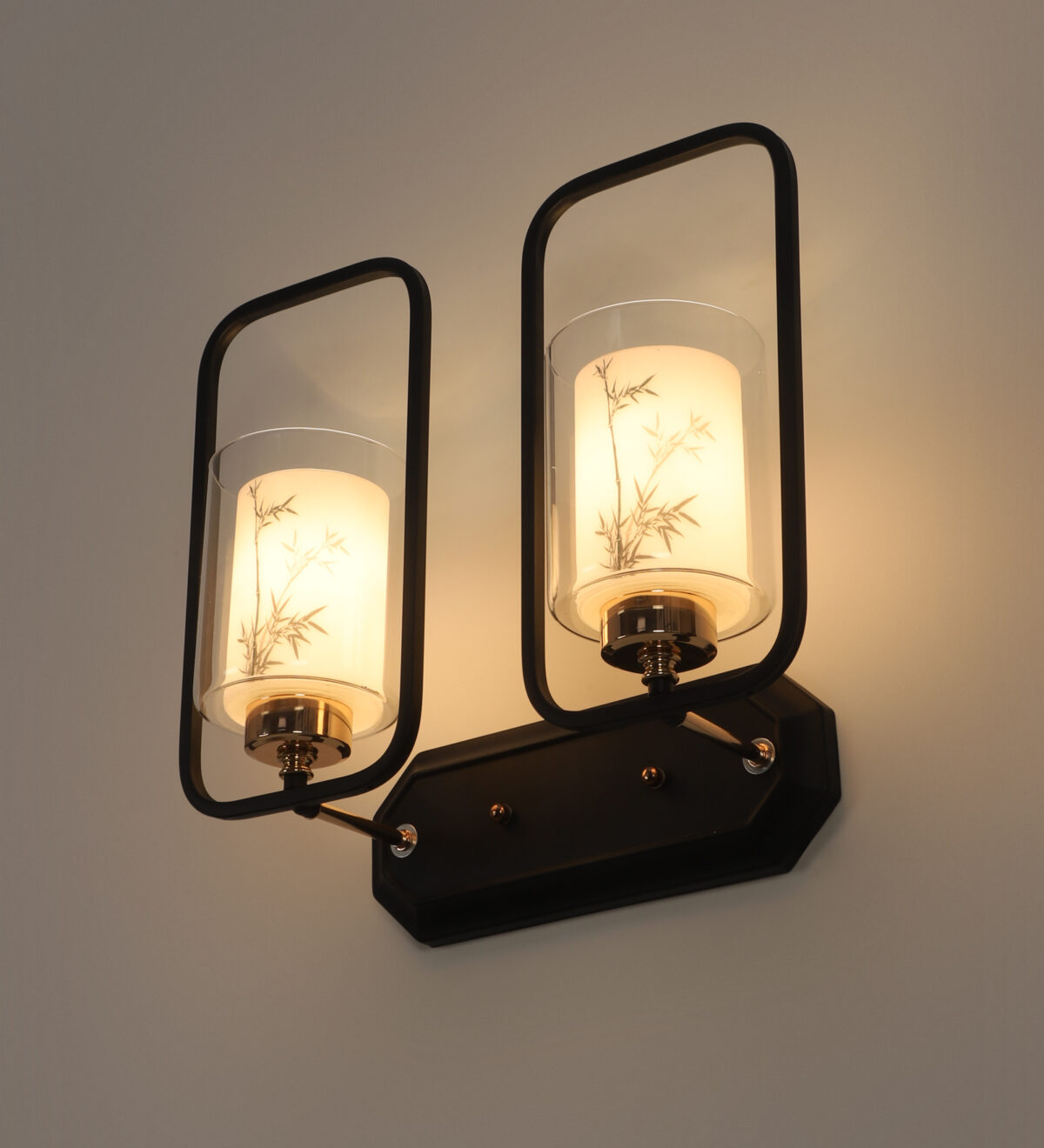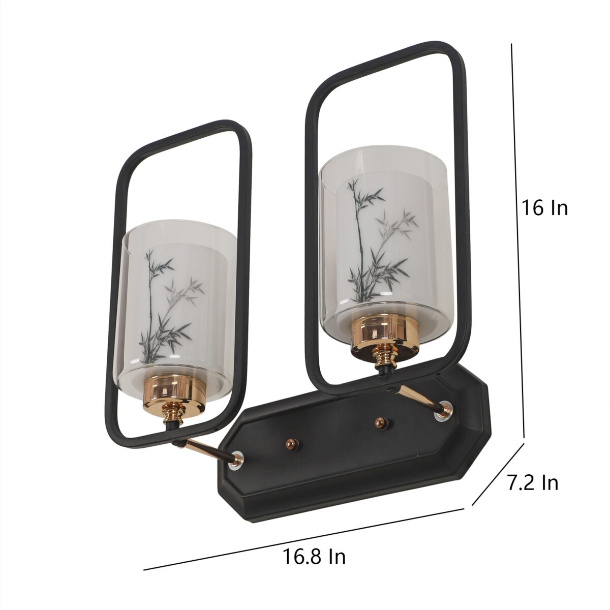 Brown, Gold finish, mild steel double wall light with white glass having a printed design. It is maintenance free, comes with an E27 holder, only the change of lamp is required, which is available locally everywhere. Application includes both residential and commercial premises wherever it matches with your interiors. Can be customized as per requirement. LAMP NOT INCLUDED.