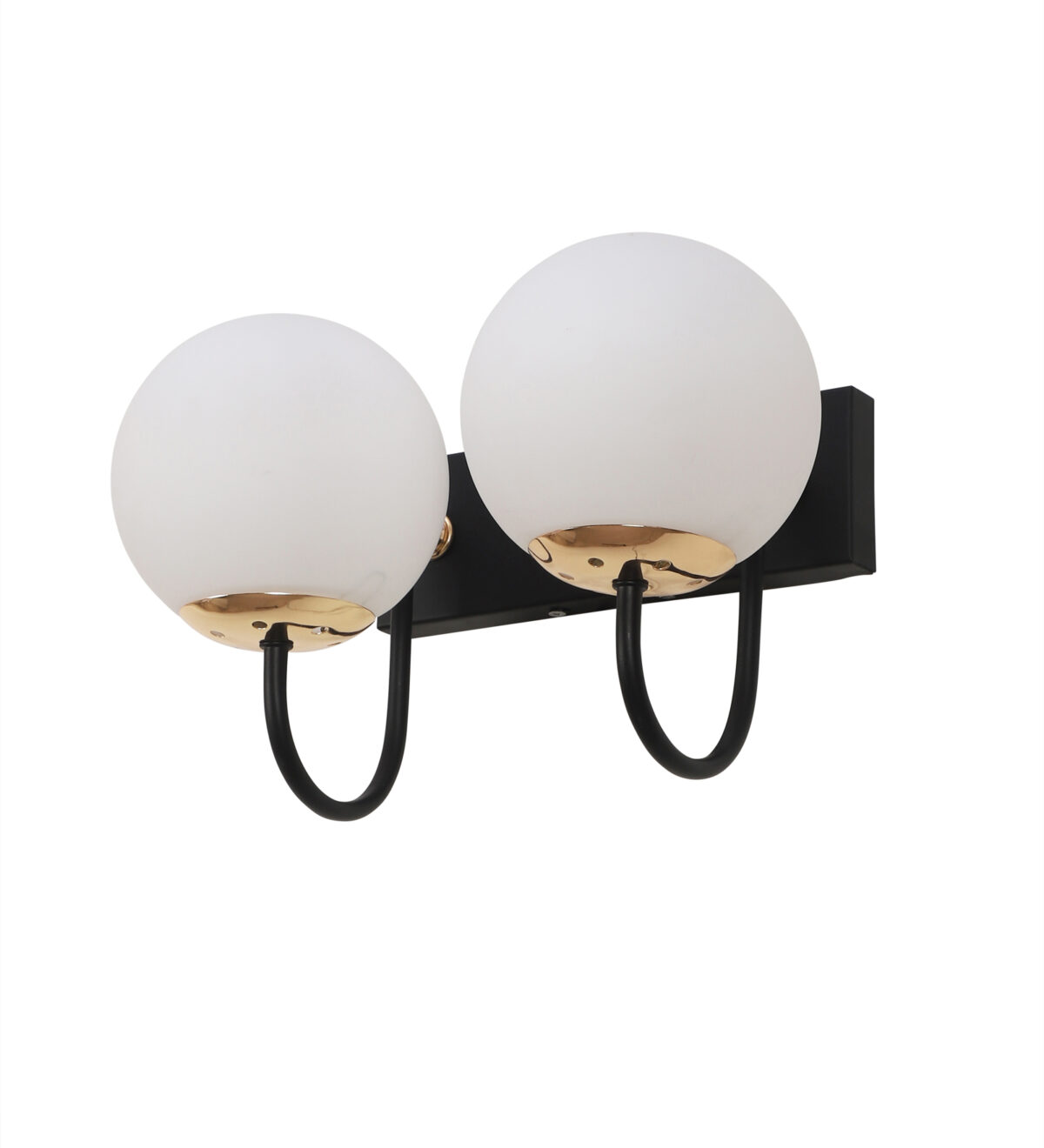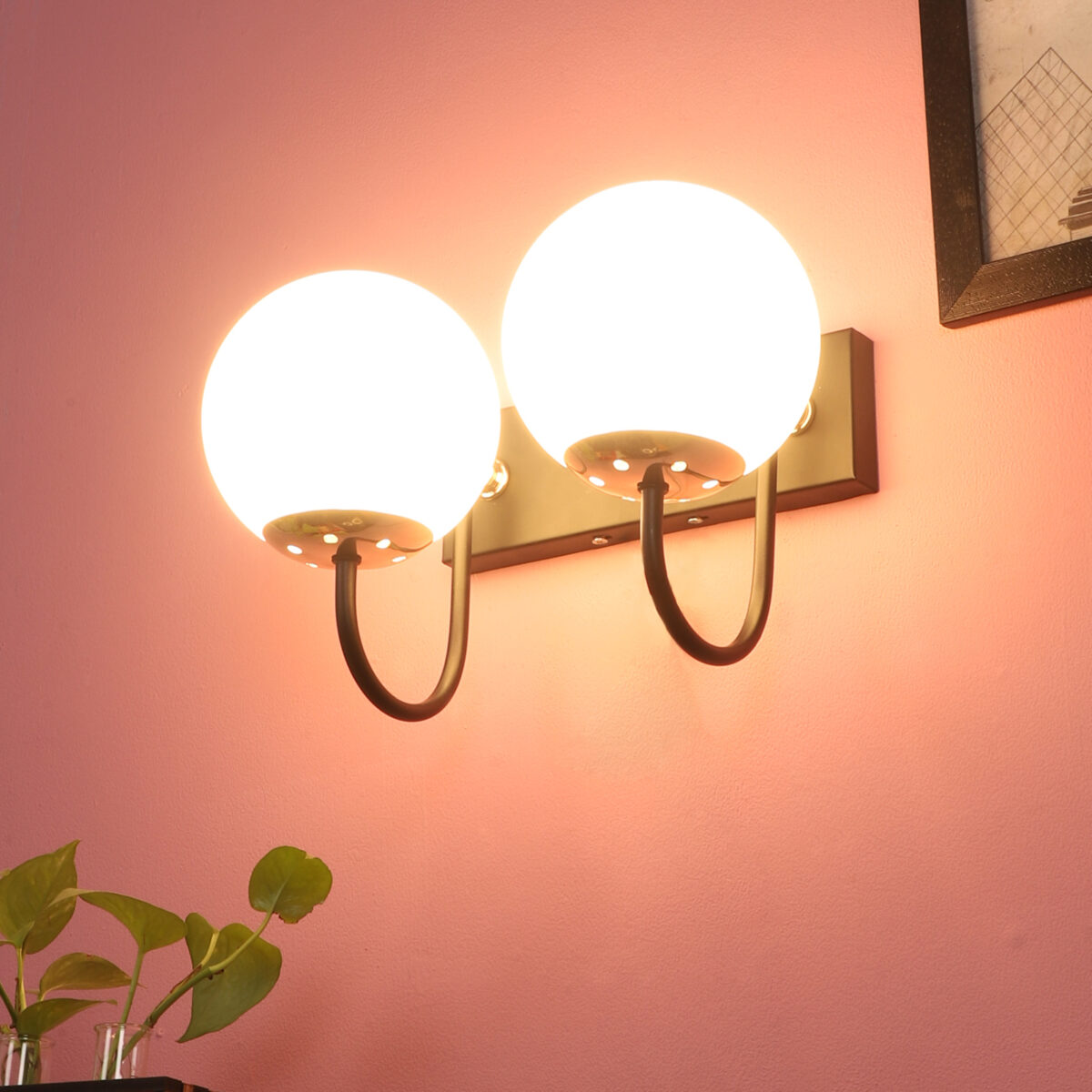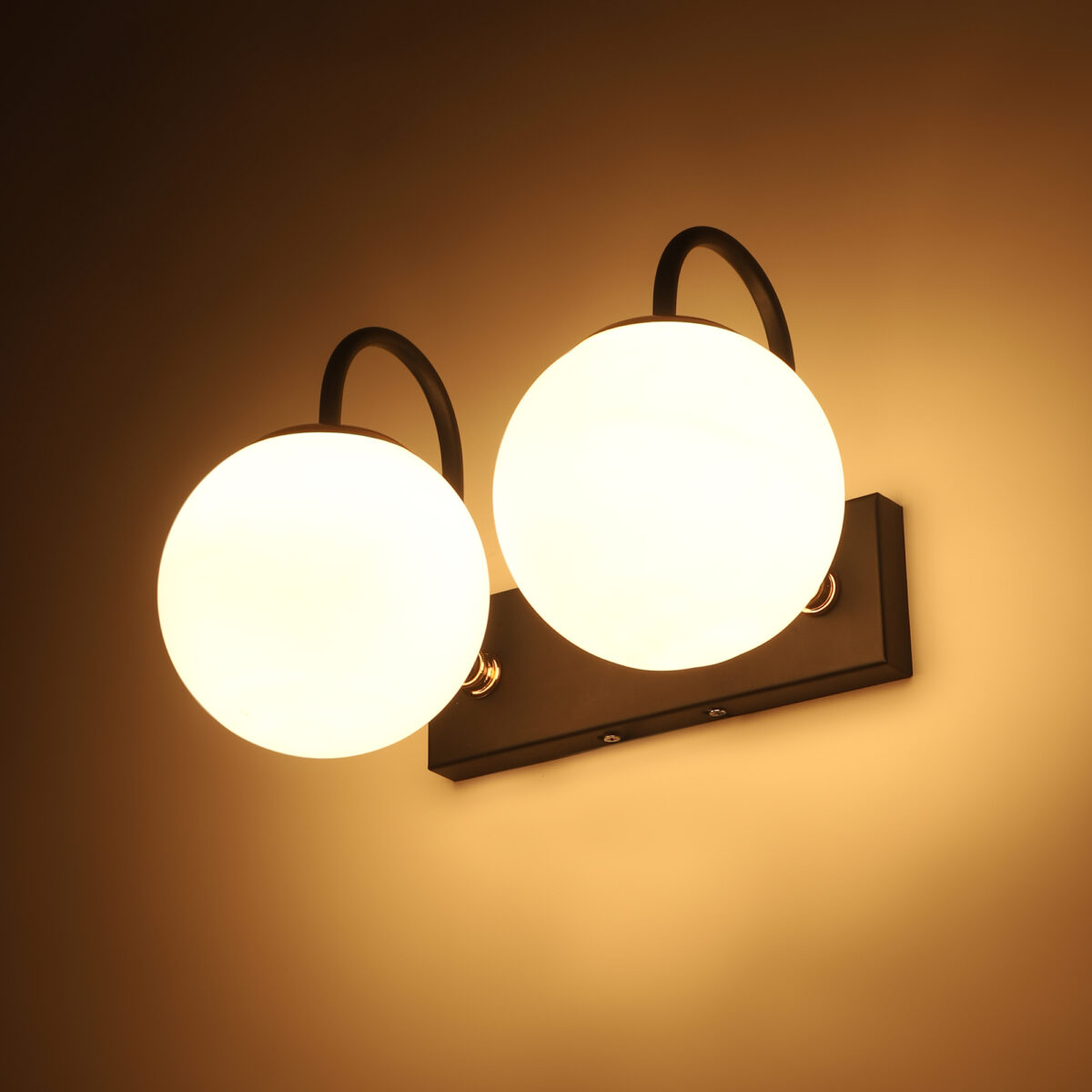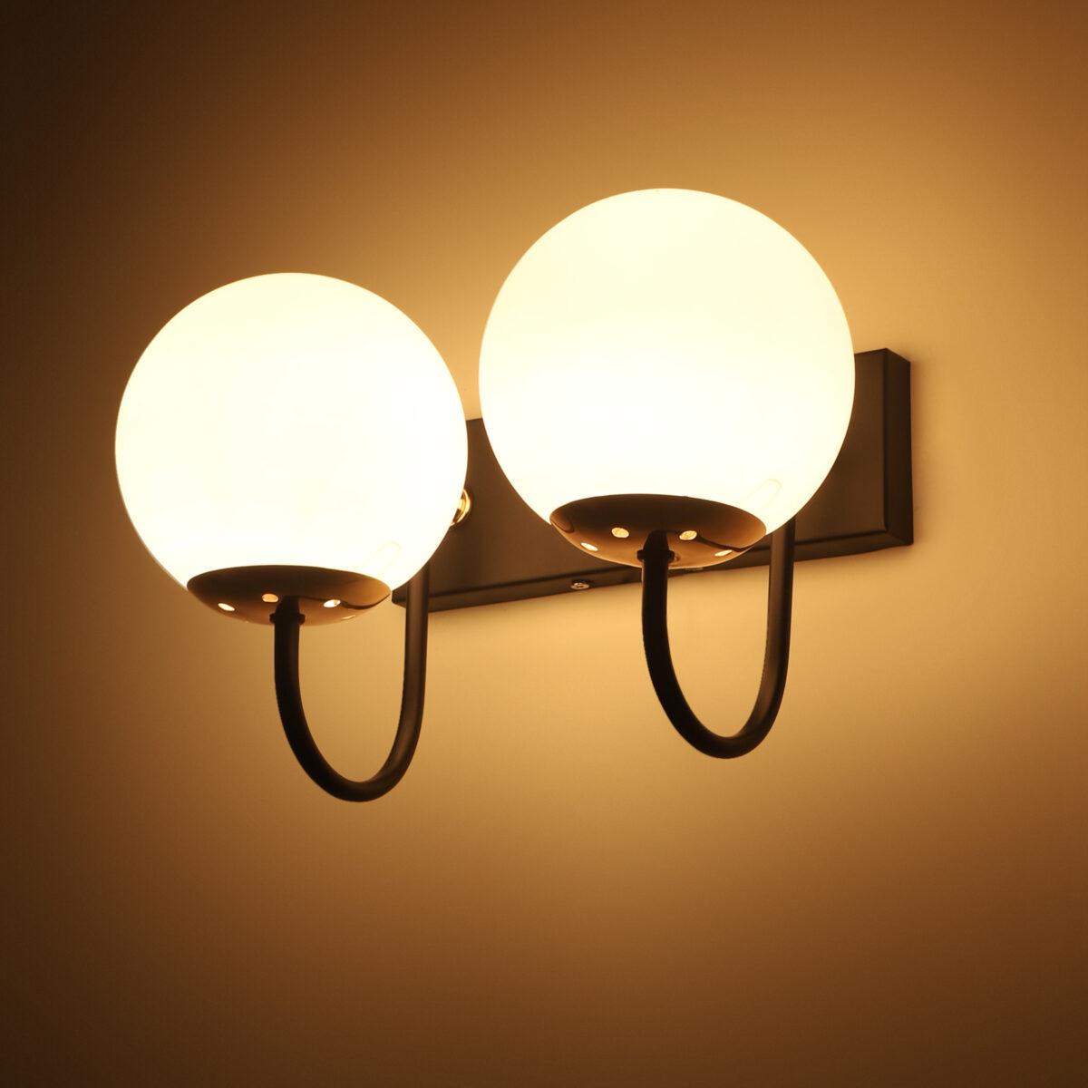 Brown, gold finish double wall light with small round globe (doom) type white glasses . It is maintenance free, easy to remove glass and wash it. Comes with an E27 holder, only the change of lamp is required, which is available locally everywhere. Application includes both residential and commercial premises wherever it matches with your interiors. Can be customized as per requirement. LAMP NOT INCLUDED.