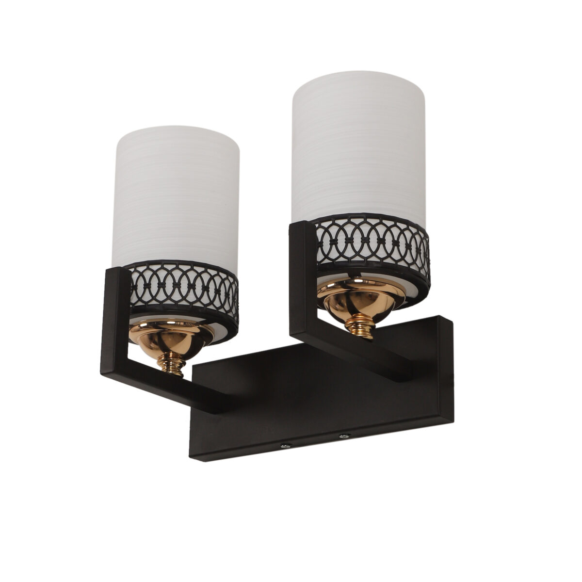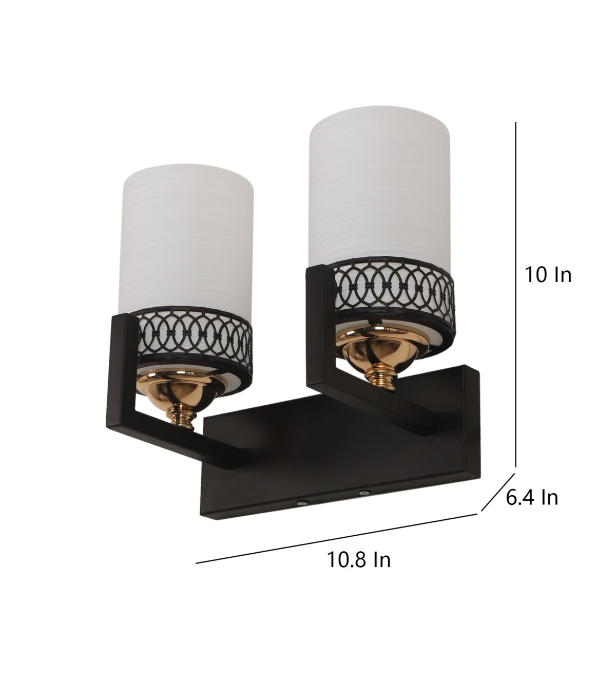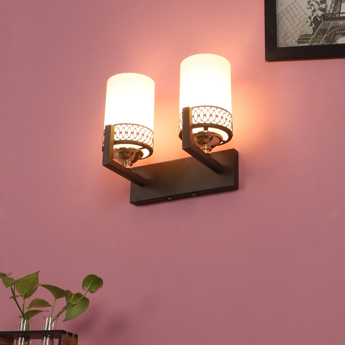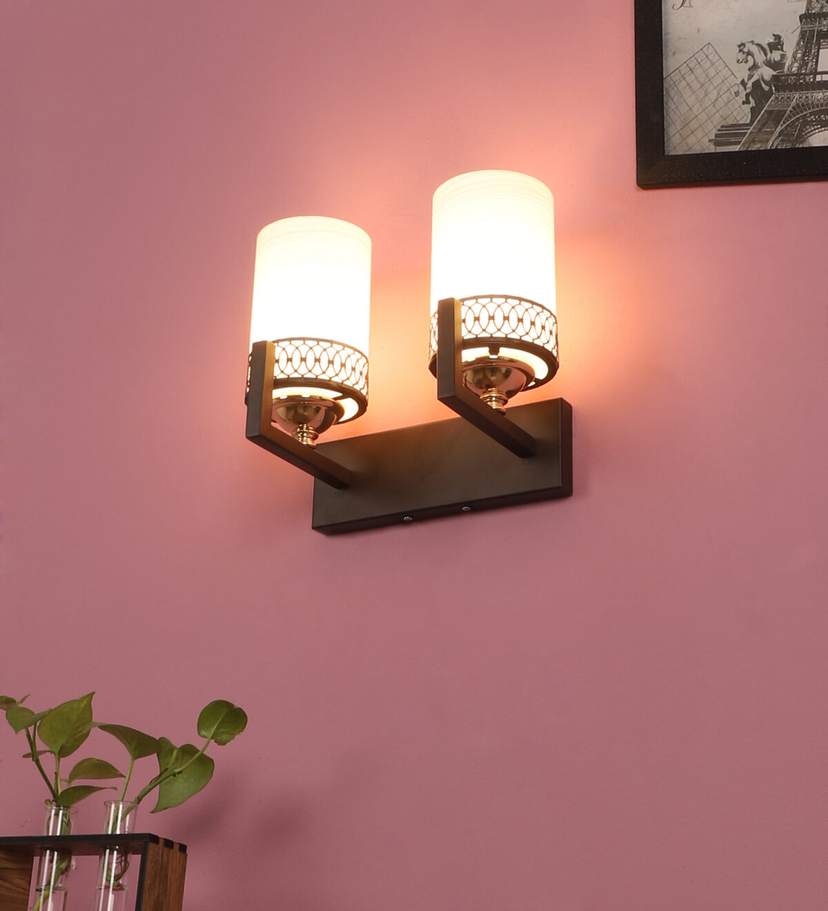 Dark brown finish double wall light having cylinderical white glass having self textured design mounted on a designer frame made of mild steel. It is maintenance free. It is easy to remove glasses and wash them. Comes with an E27 holder, only the change of lamp is required, which is available locally everywhere. Application includes both residential and commercial premises wherever it matches with your interiors. Can be customized as per requirement. LAMP NOT INCLUDED.