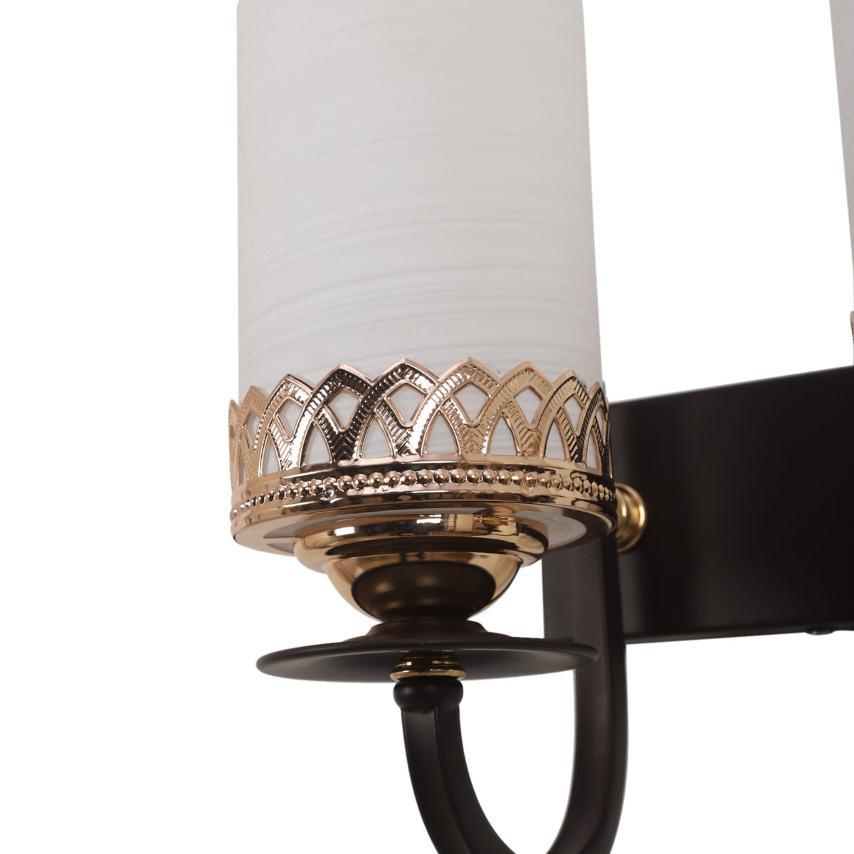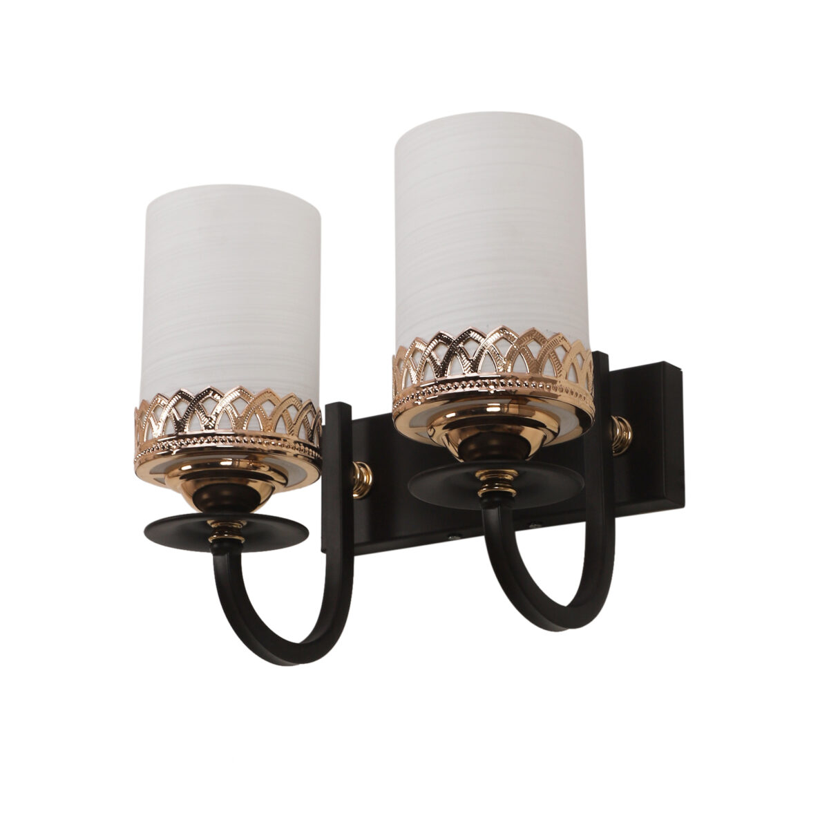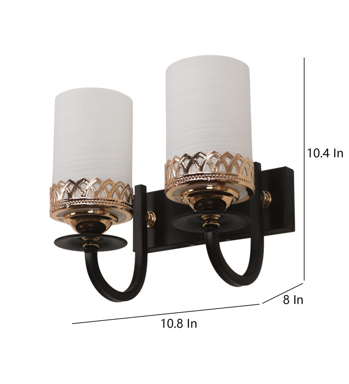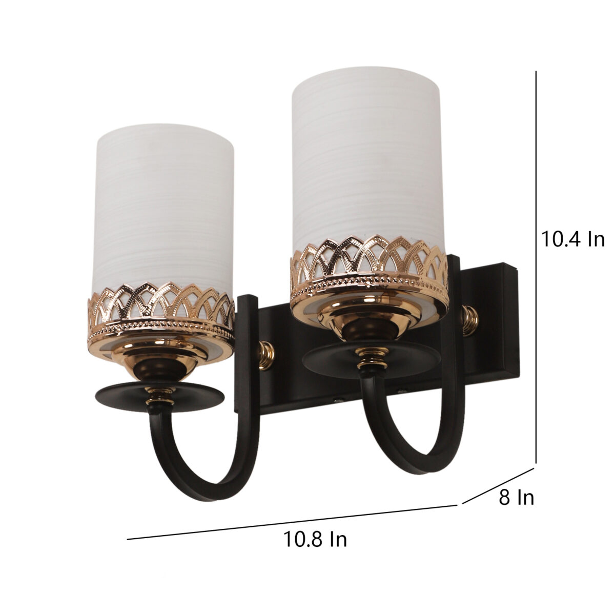 Dark brown finish single wall light having cylinderical white glass having self textured design mounted on a designer frame made of mild steel. It is maintenance free. It is easy to remove glass and wash it. Comes with an E27 holder, only the change of lamp is required, which is available locally everywhere. Application includes both residential and commercial premises wherever it matches with your interiors. Can be customized as per requirement, LAMP NOT INCLUDED.