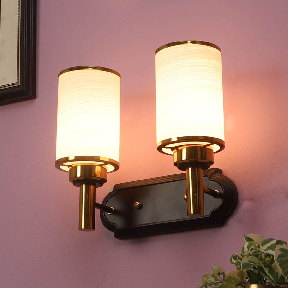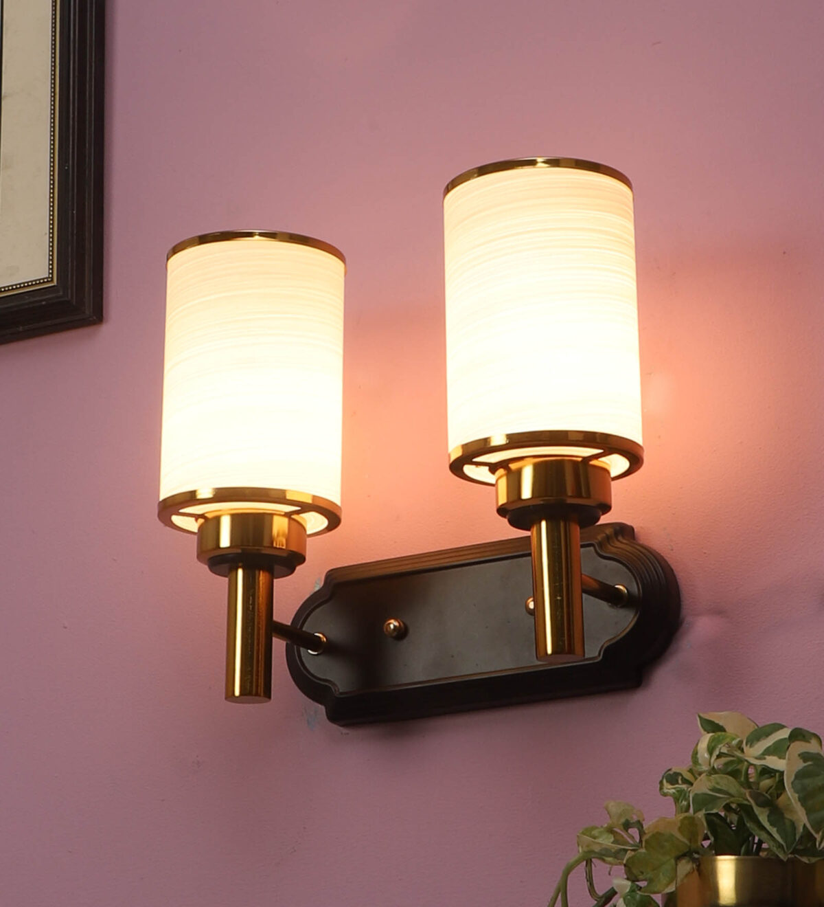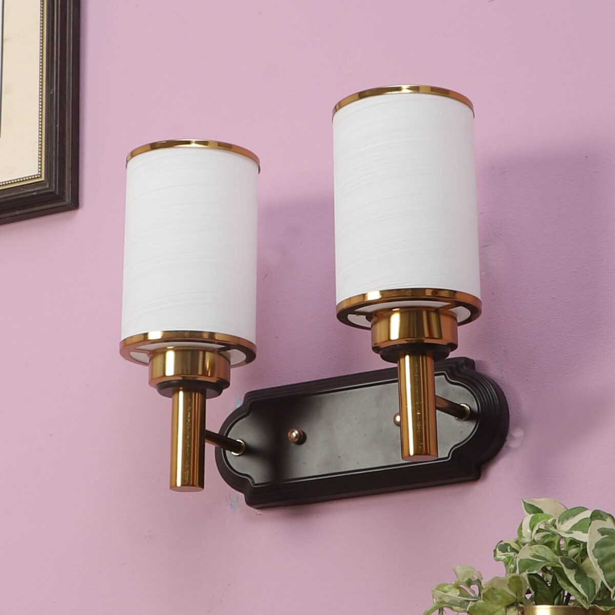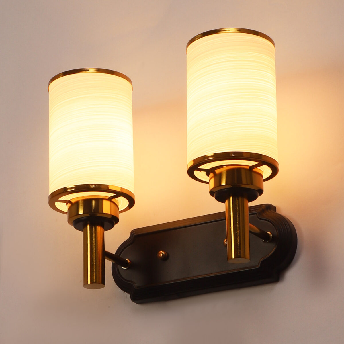 Dark brown, gold finish double wall light. Can be customized as per requirement. LAMP NOT INCLUDED.