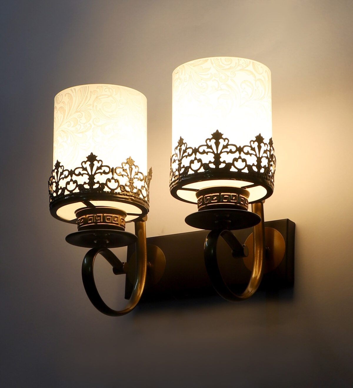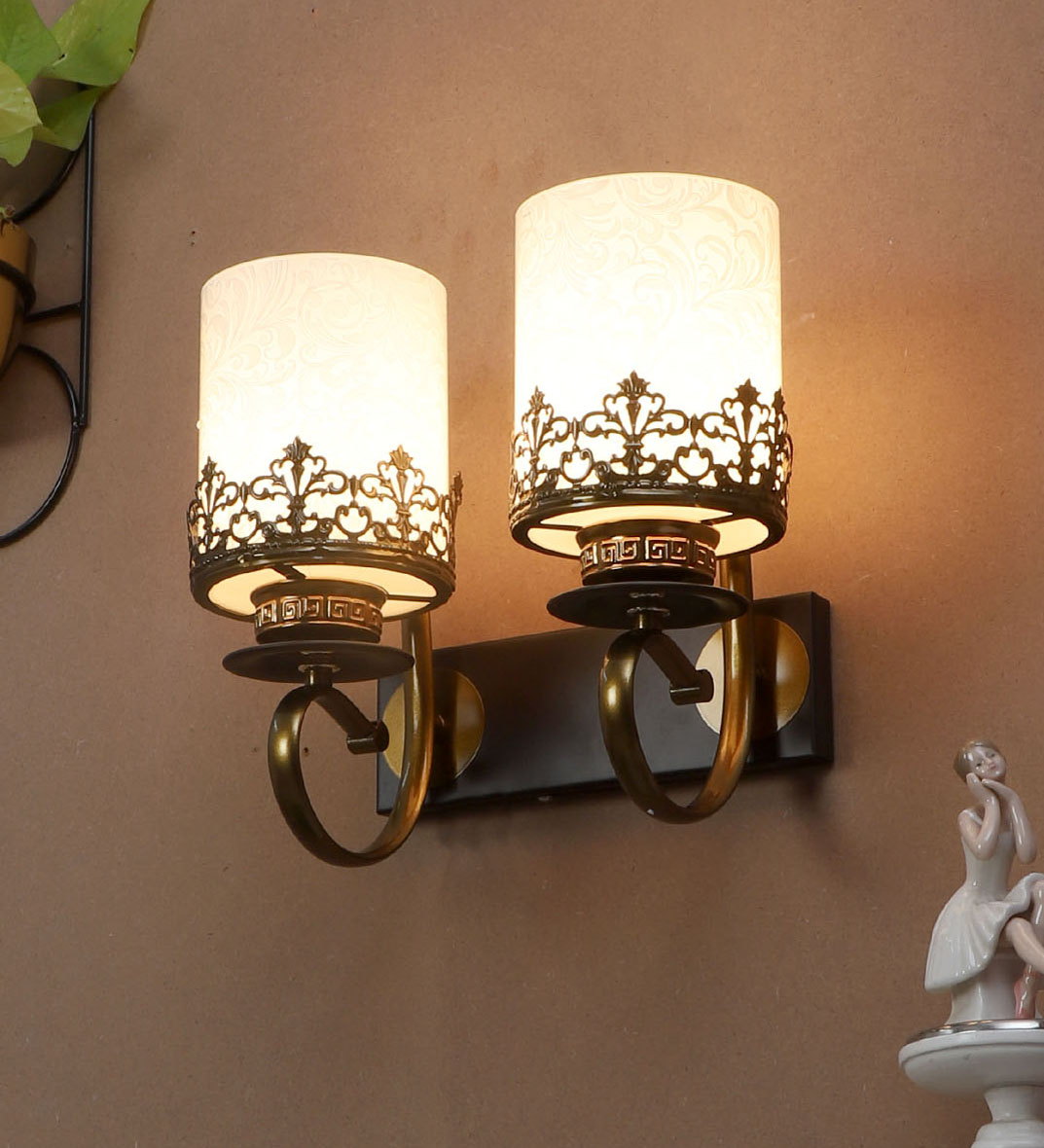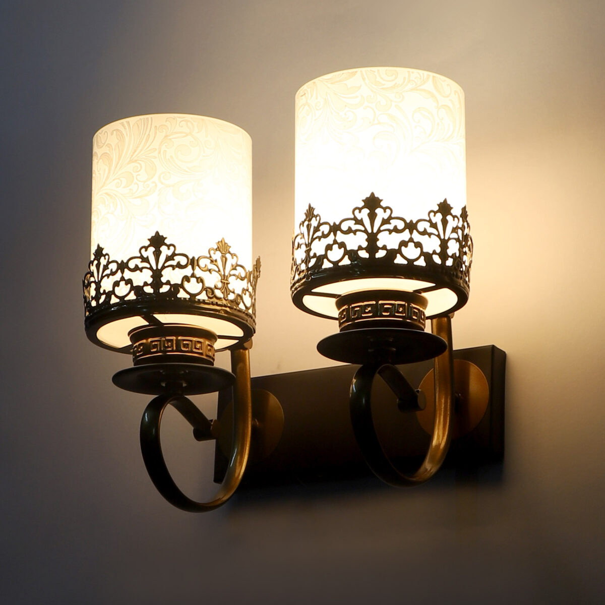 Antique and dark brown finish double wall light. Can be customized as per requirement. LAMP NOT INCLUDED.