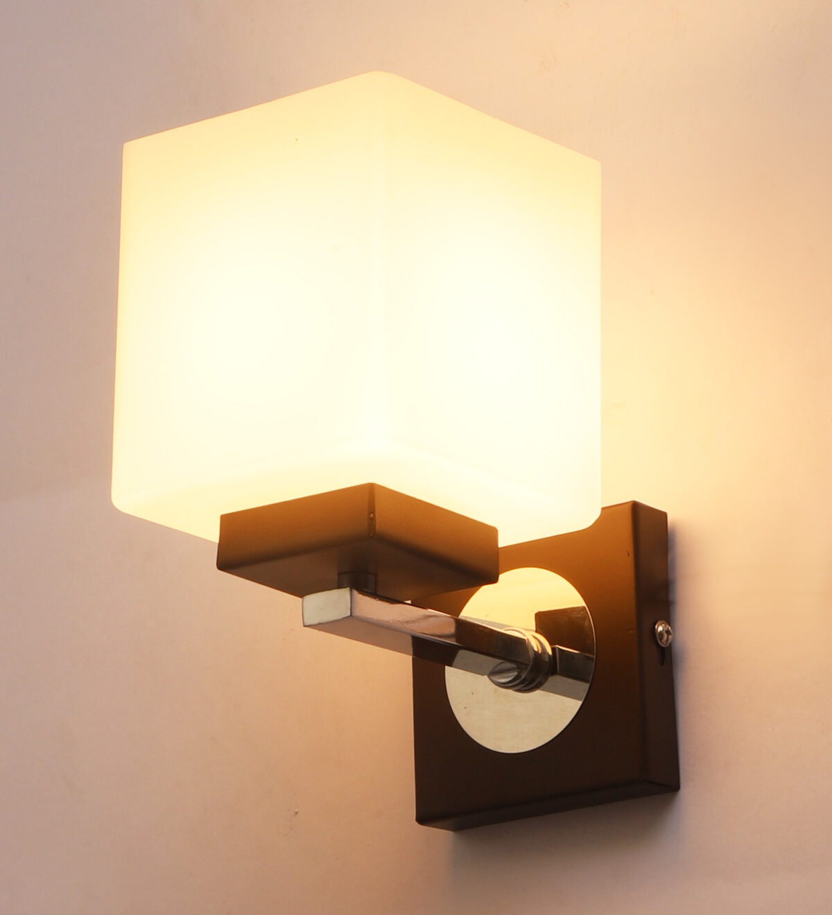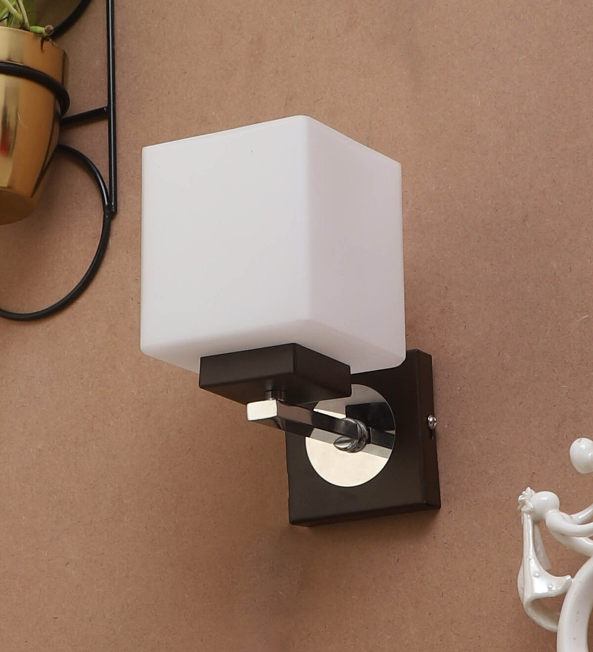 Dark brown and chrome finish single wall light. Can be customized as per requirement. LAMP NOT INCLUDED.