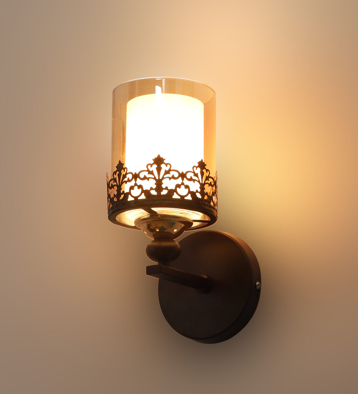 Brown finish single wall light. Can be customized as per requirement. LAMP NOT INCLUDED.