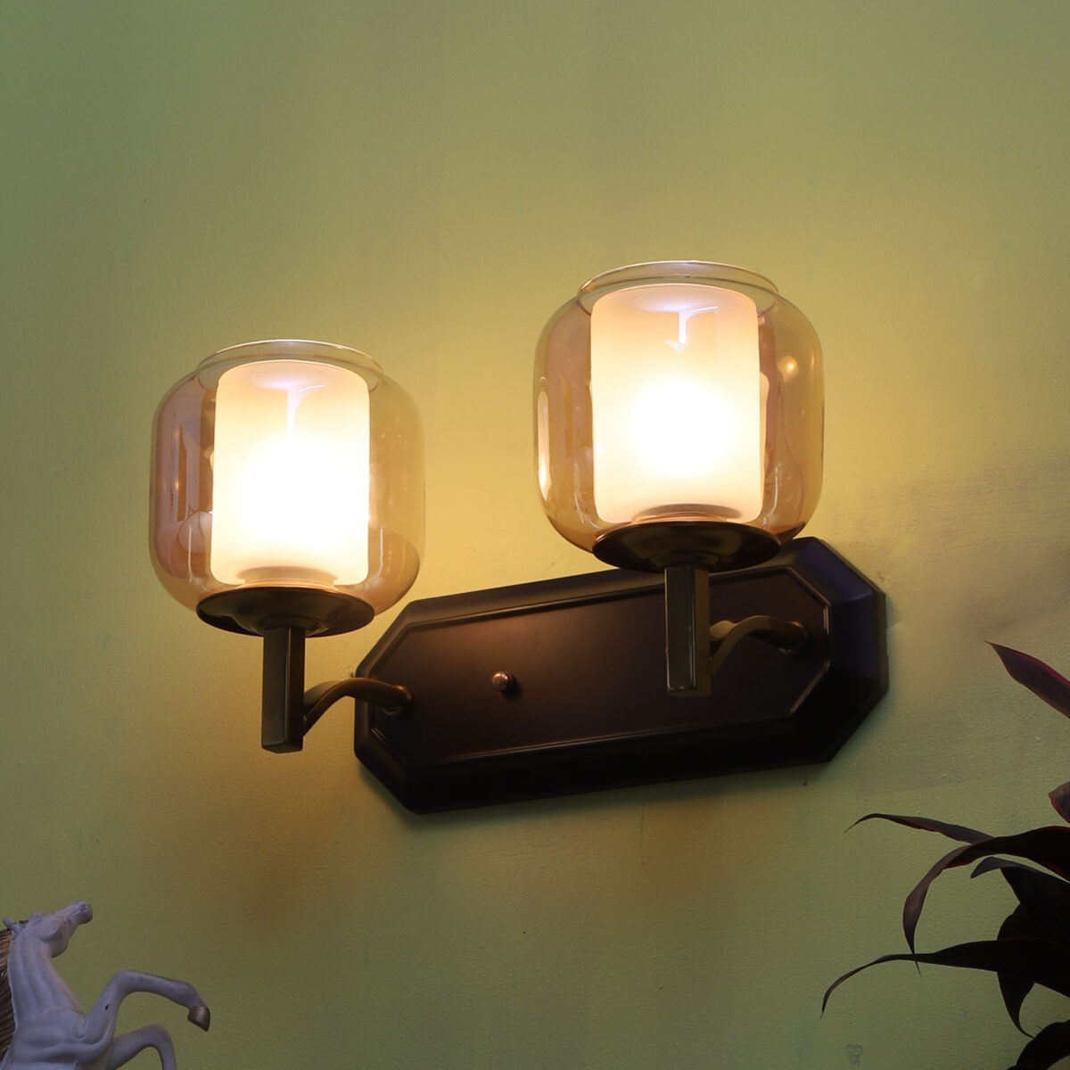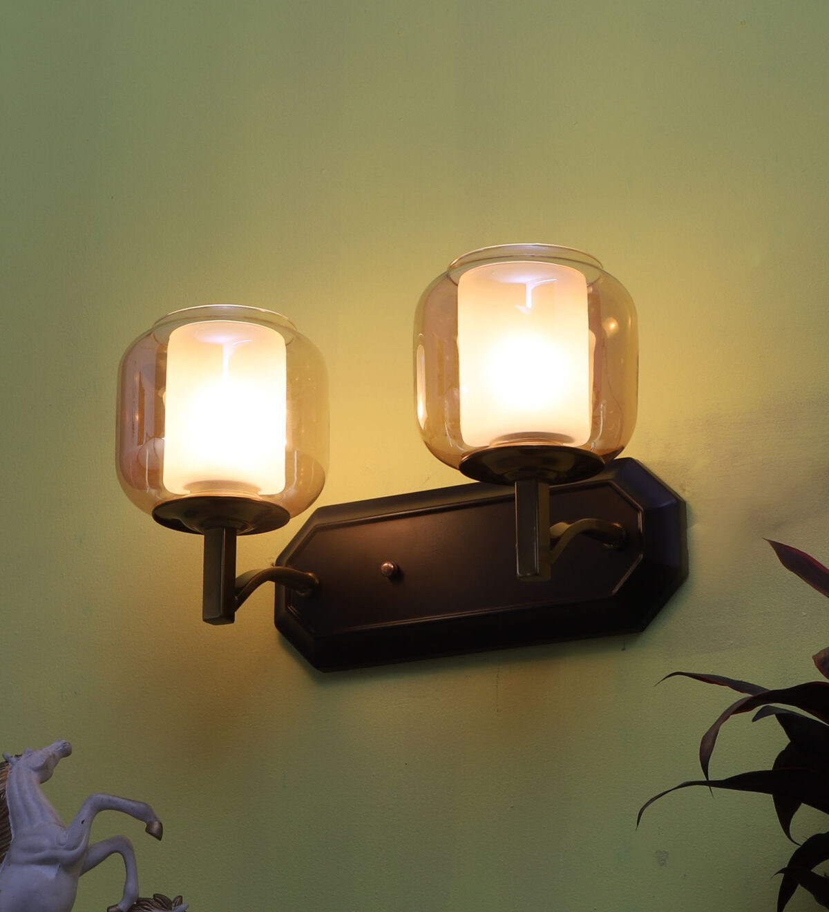 Antique and brown finish double wall light. Can be customized as per requirement. LAMP NOT INCLUDED.