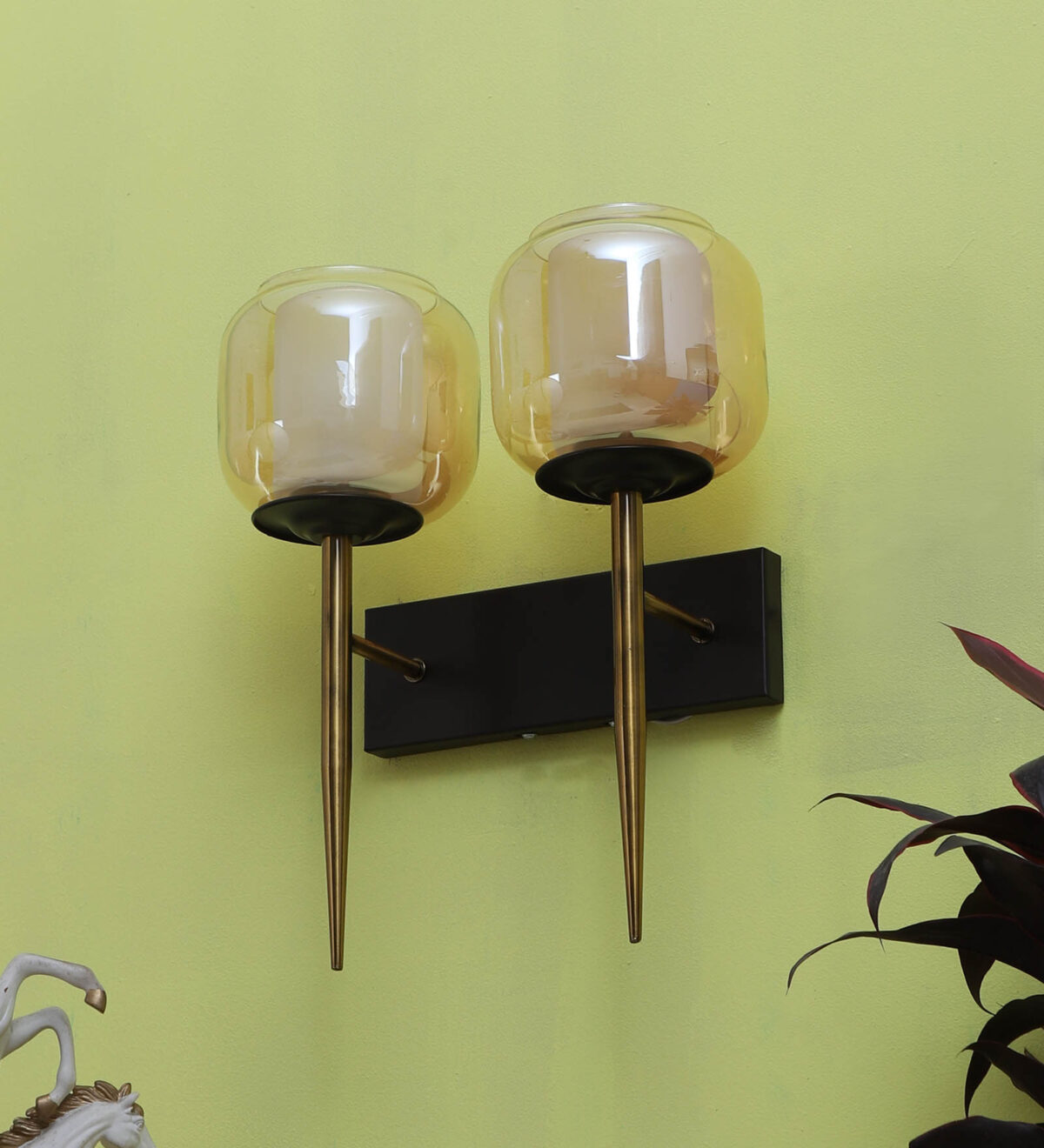 Gold and brown finish double wall light. Can be customized as per requirement. LAMP NOT INCLUDED.