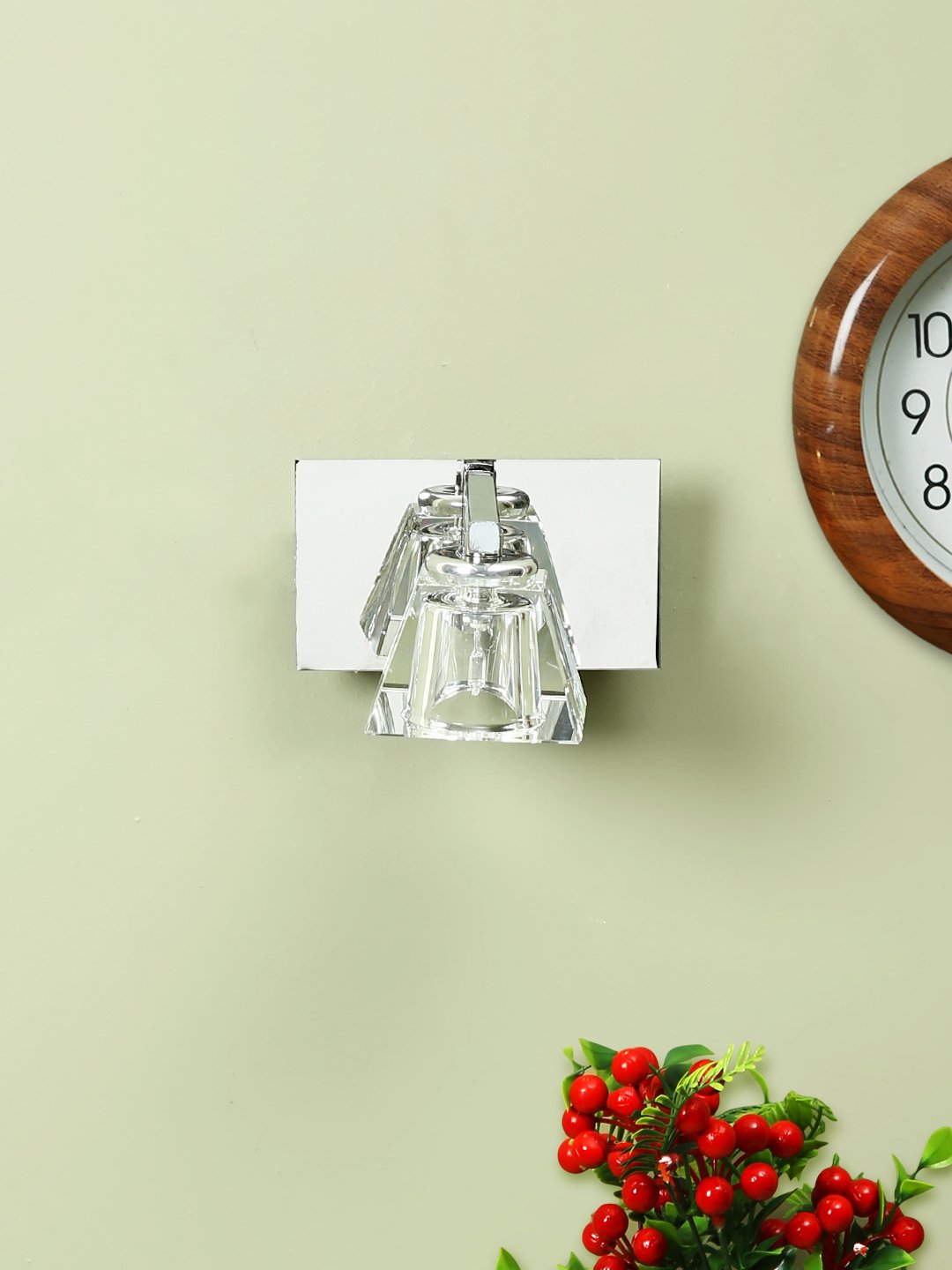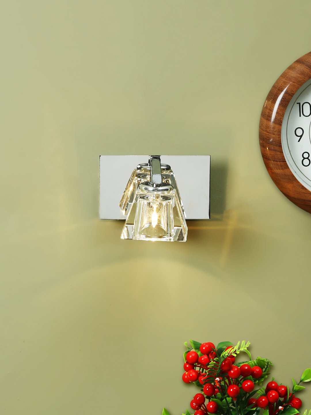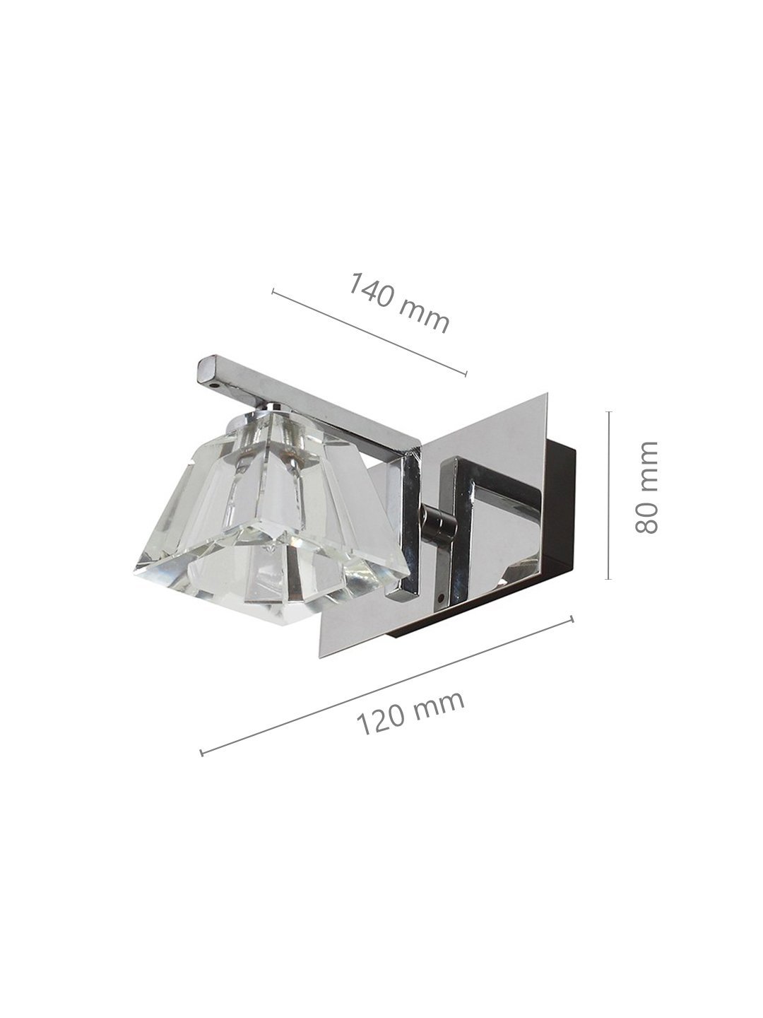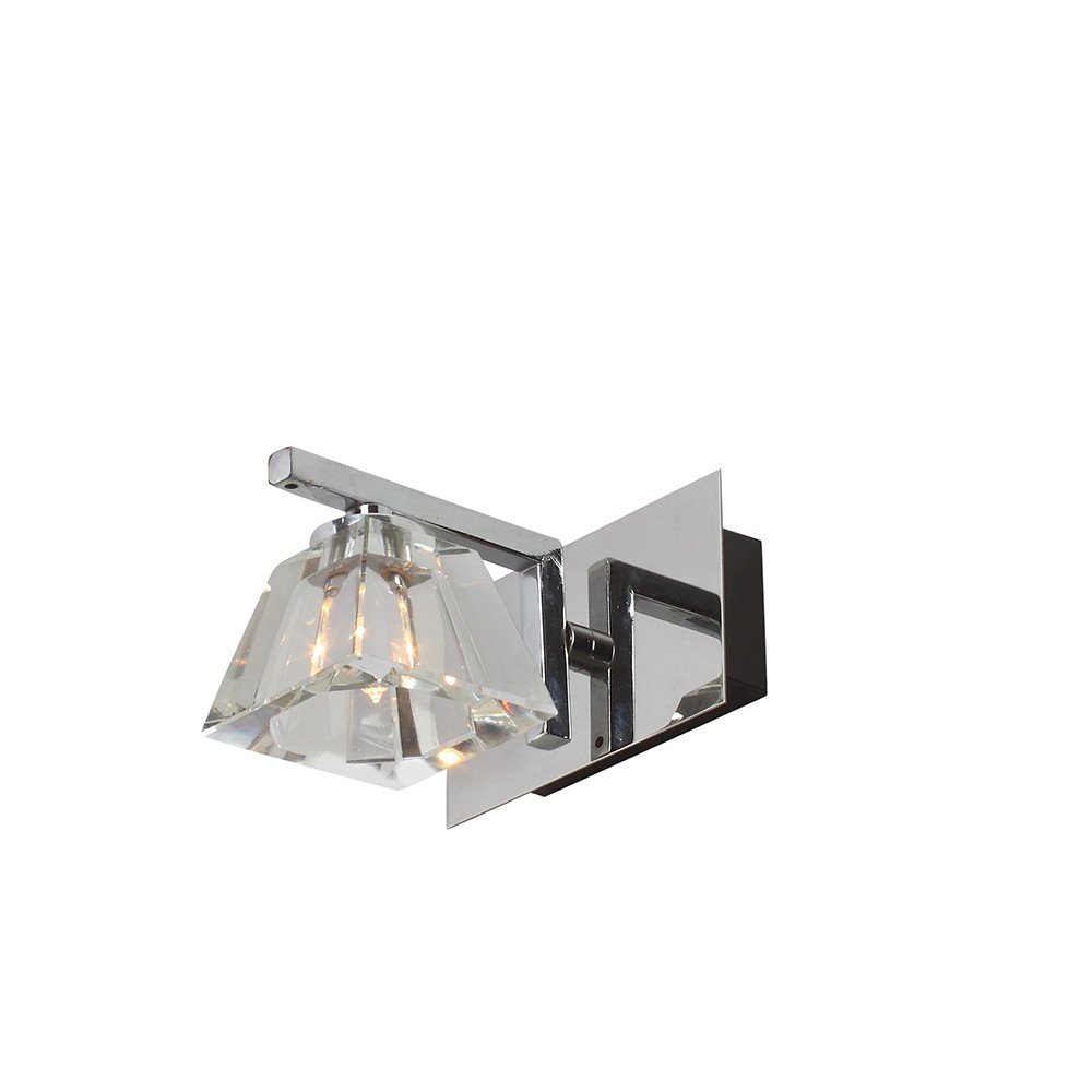Ultra modern, premium, mild steel silver (chrome) finish, heavy crystal glass single spot light. Great for installation above a dressing mirror, dressing table, to provide illumination while applying make-up. It can also be used as a wall light, spot light, bed side light, picture light. It is comes with an G4 holder and inbuilt transformer. Matching two light code – ML315-2. Matching three light code – ML315-3, Matching four light code – ML315-4, Matching five light code – ML315-5. LAMP INCLUDED.