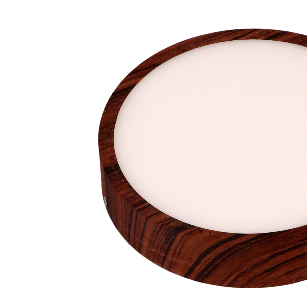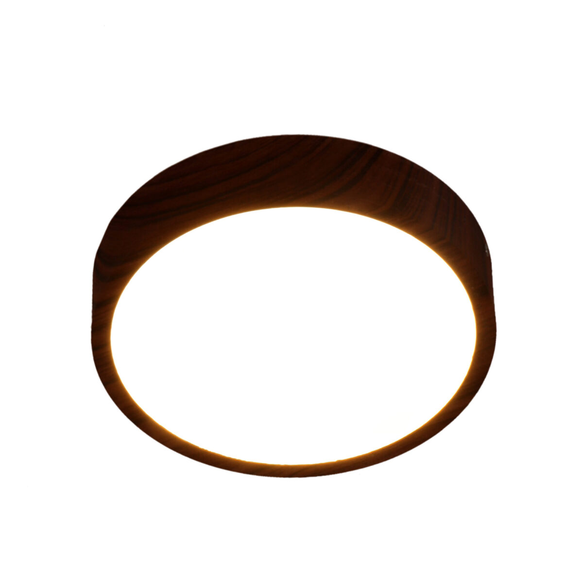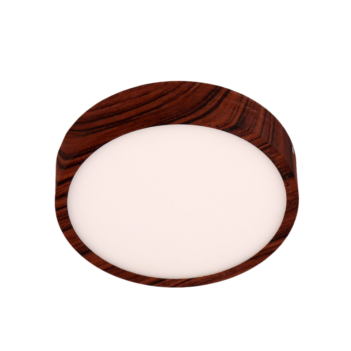 Brown (wood) finish round LED surface seiling light with warm white (yellow) light output. Can be used both indoors and outdoors. Also avalable in black finish. Please scroll down to see matching products.