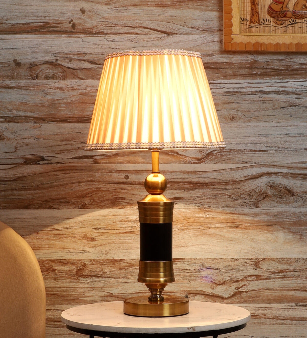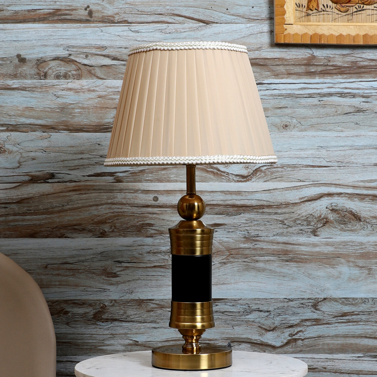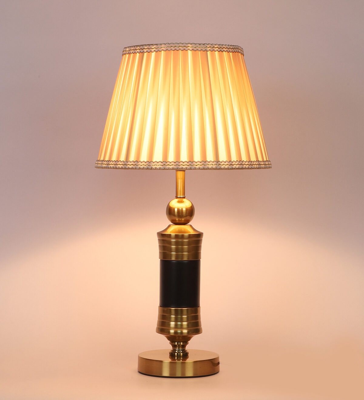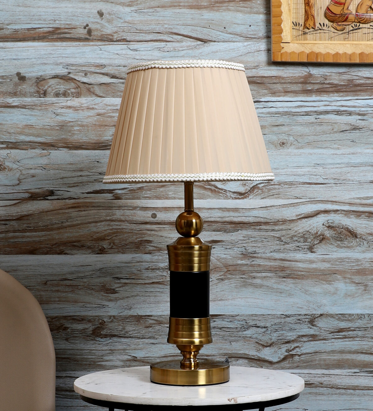 LEARC gold bronze and black finish table lamp with dark cream shade TL5018-E