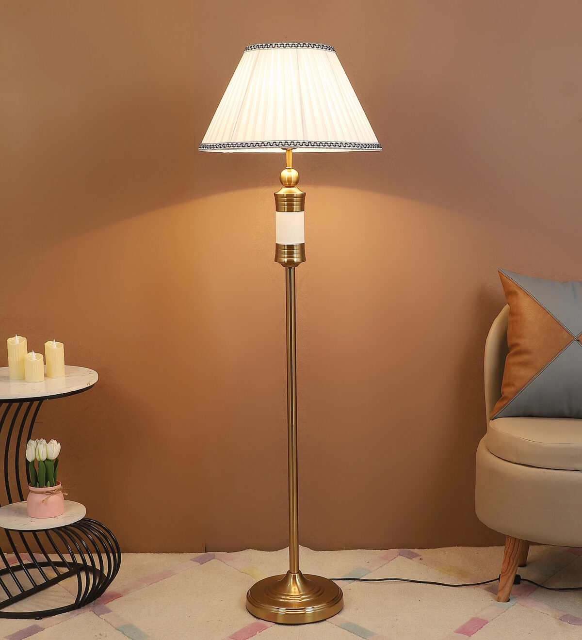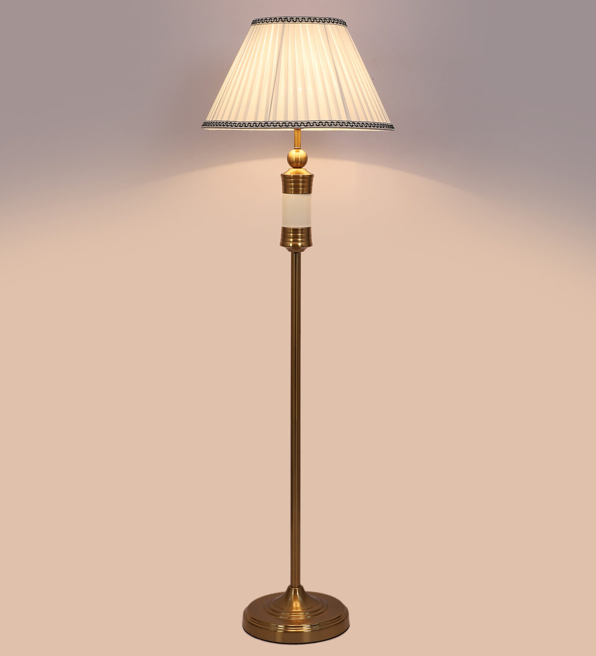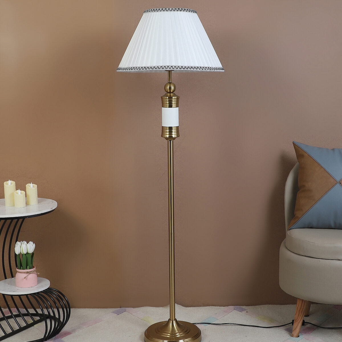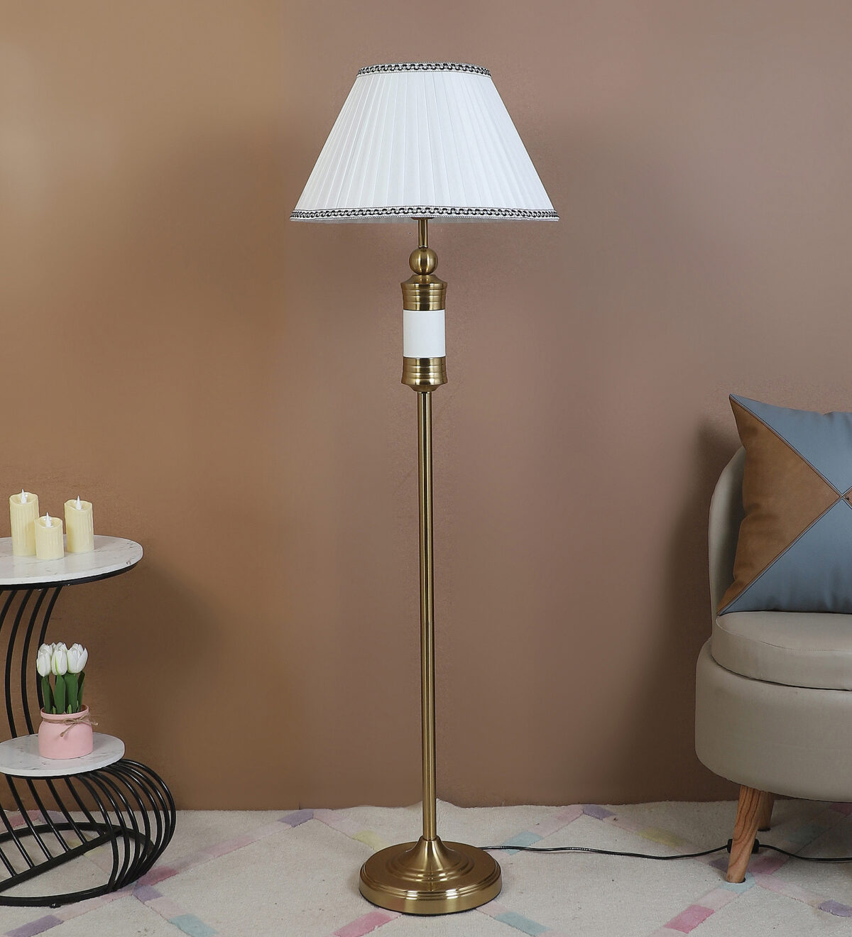 LEARC gold bronze and white finish floor lamp with cream shade FL5017-A