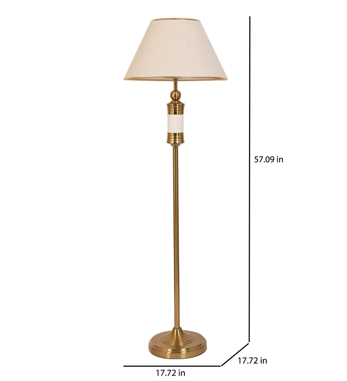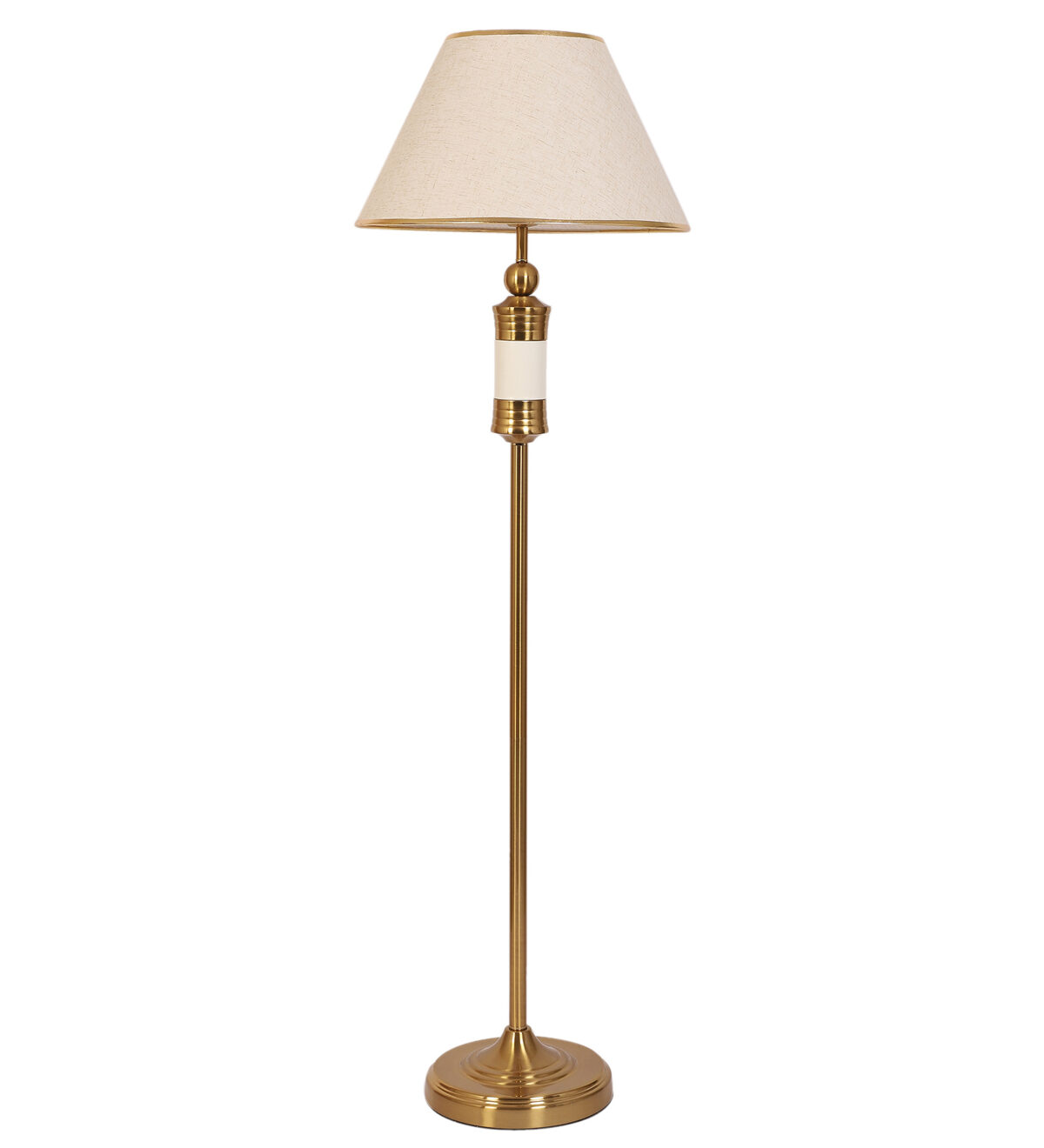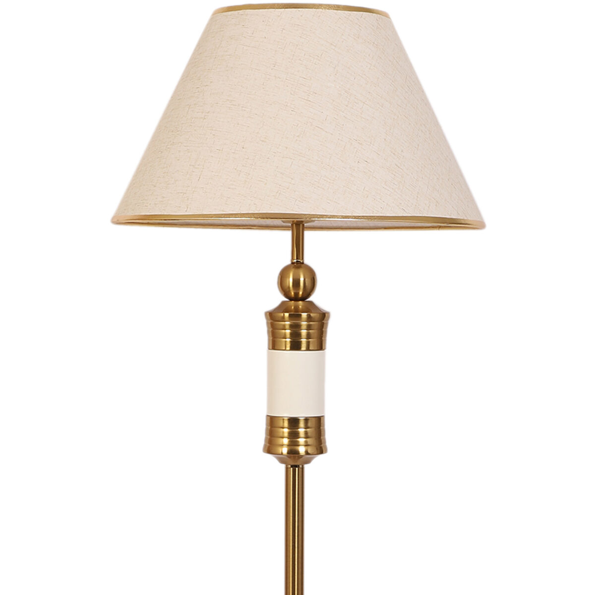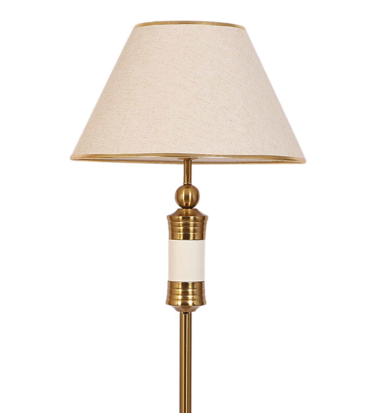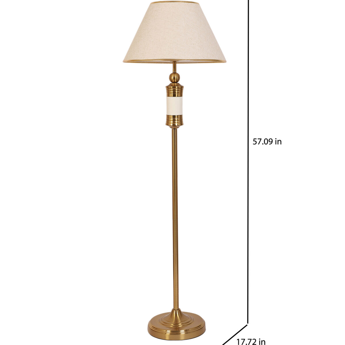 LEARC gold bronze and white finish floor lamp with cream textured shade having golden border. LAMP NOT INCLUDED.