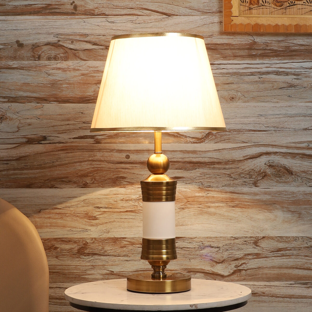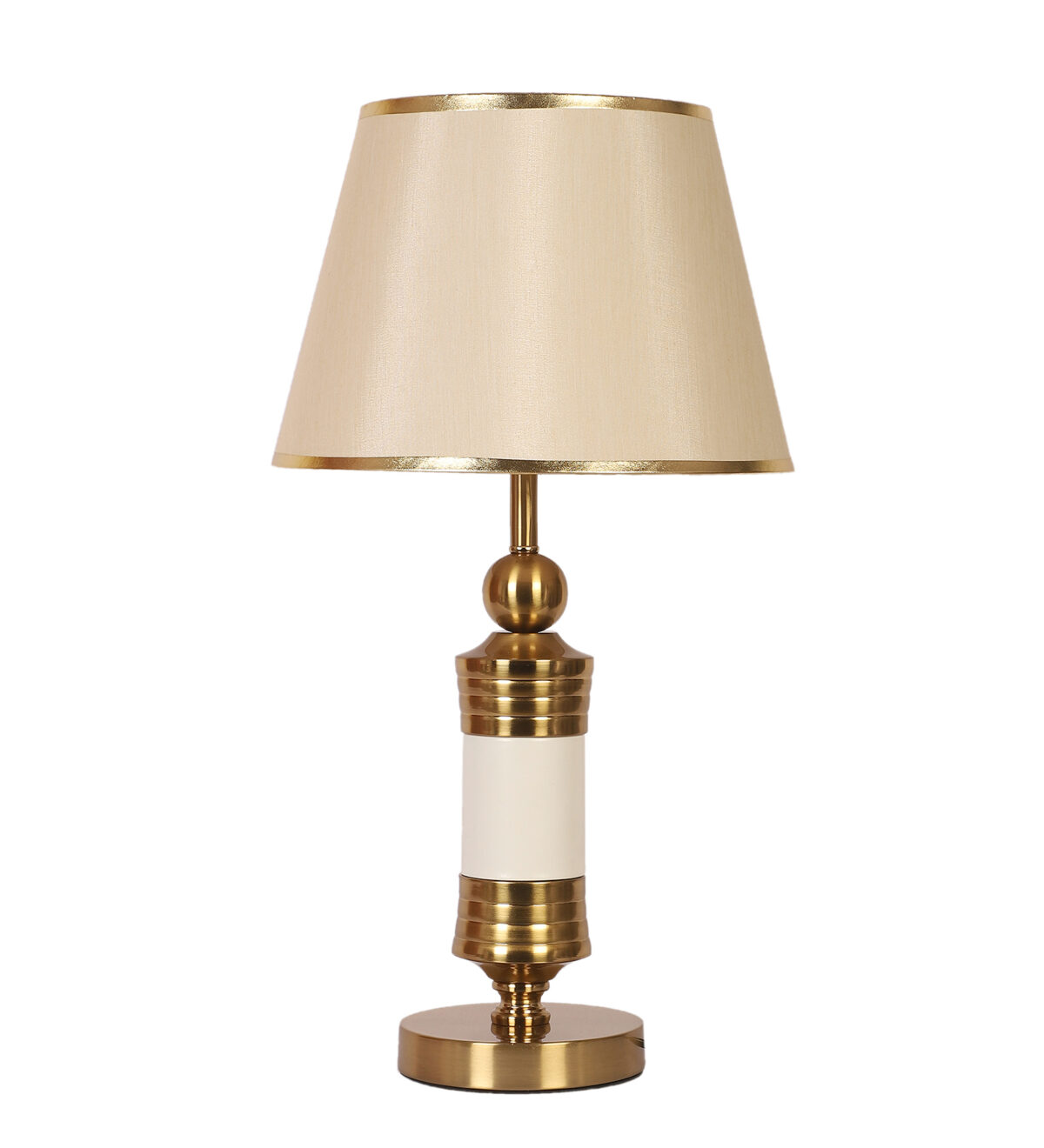 LEARC gold bronze and white finish table lamp with dark cream shade TL5017-E
