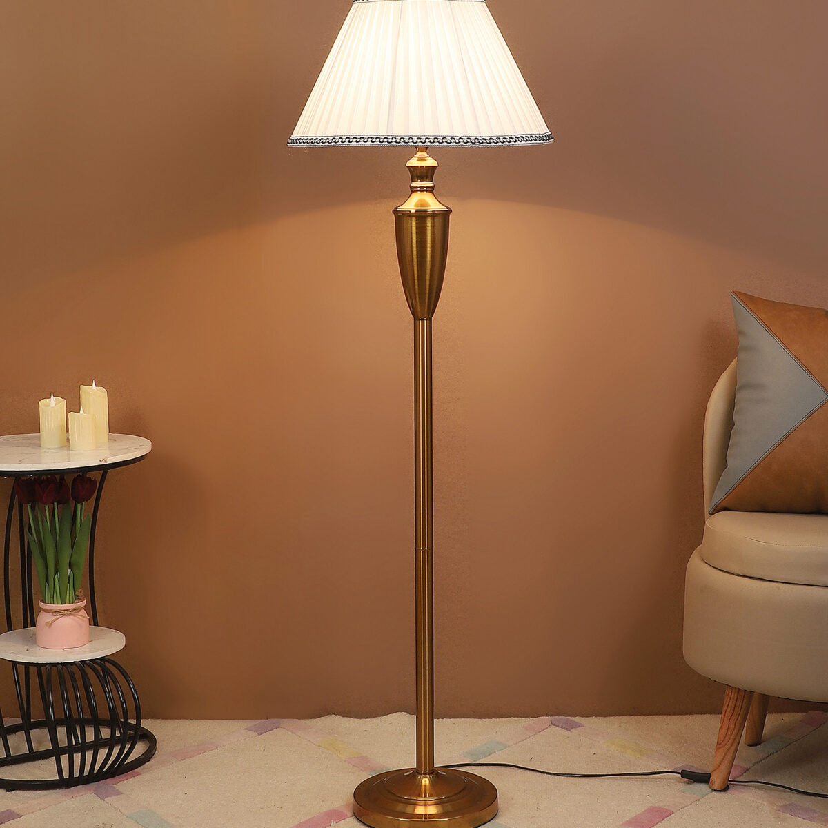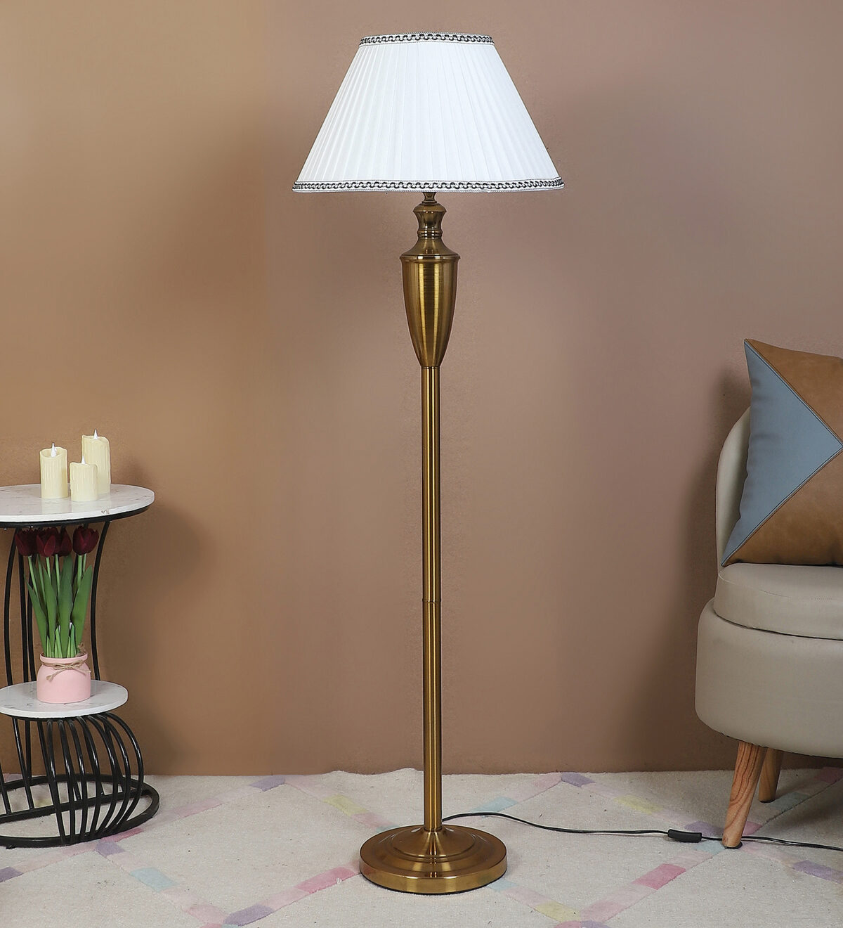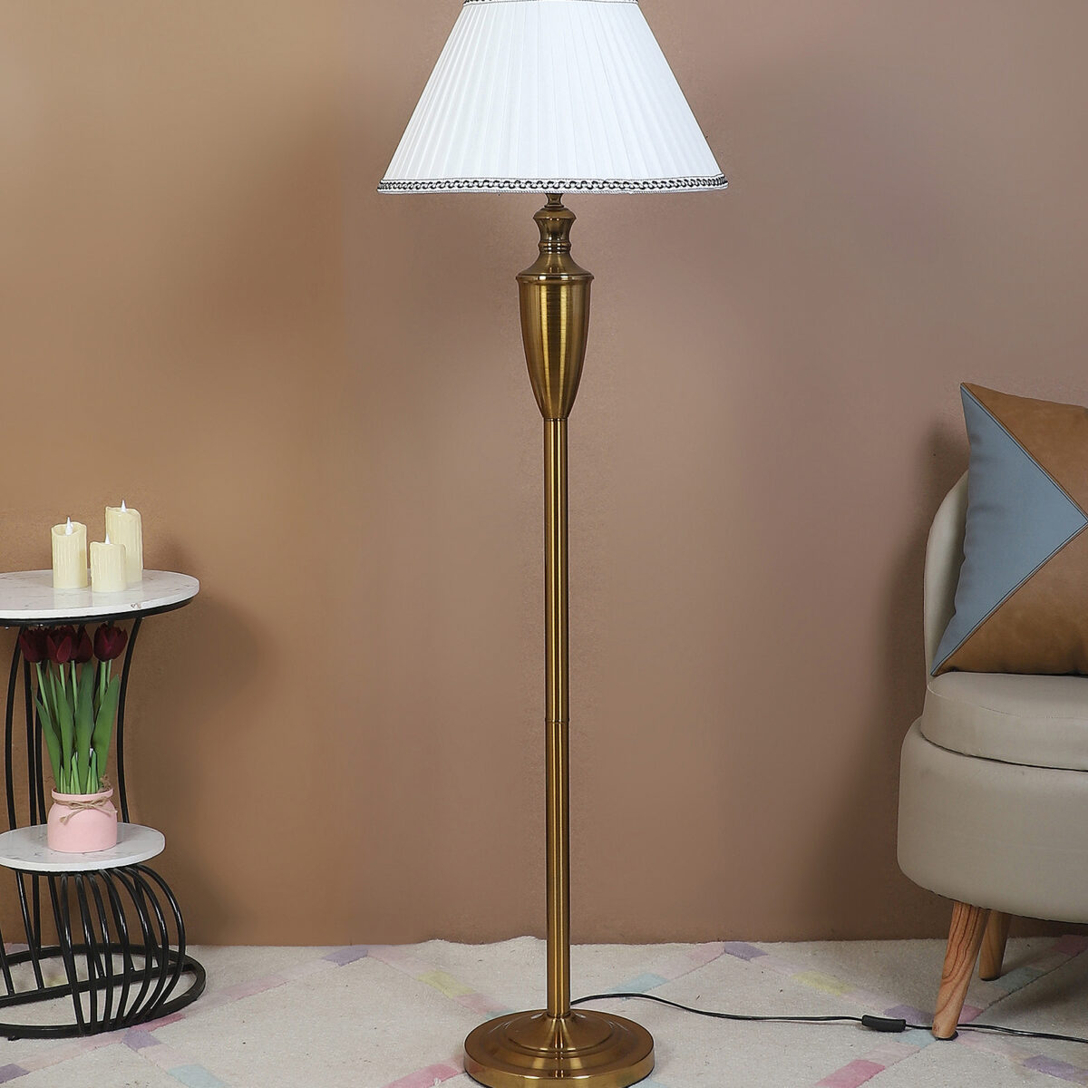 Be the first to review “LEARC gold bronze finish floor lamp with cream shade FL5021-A”