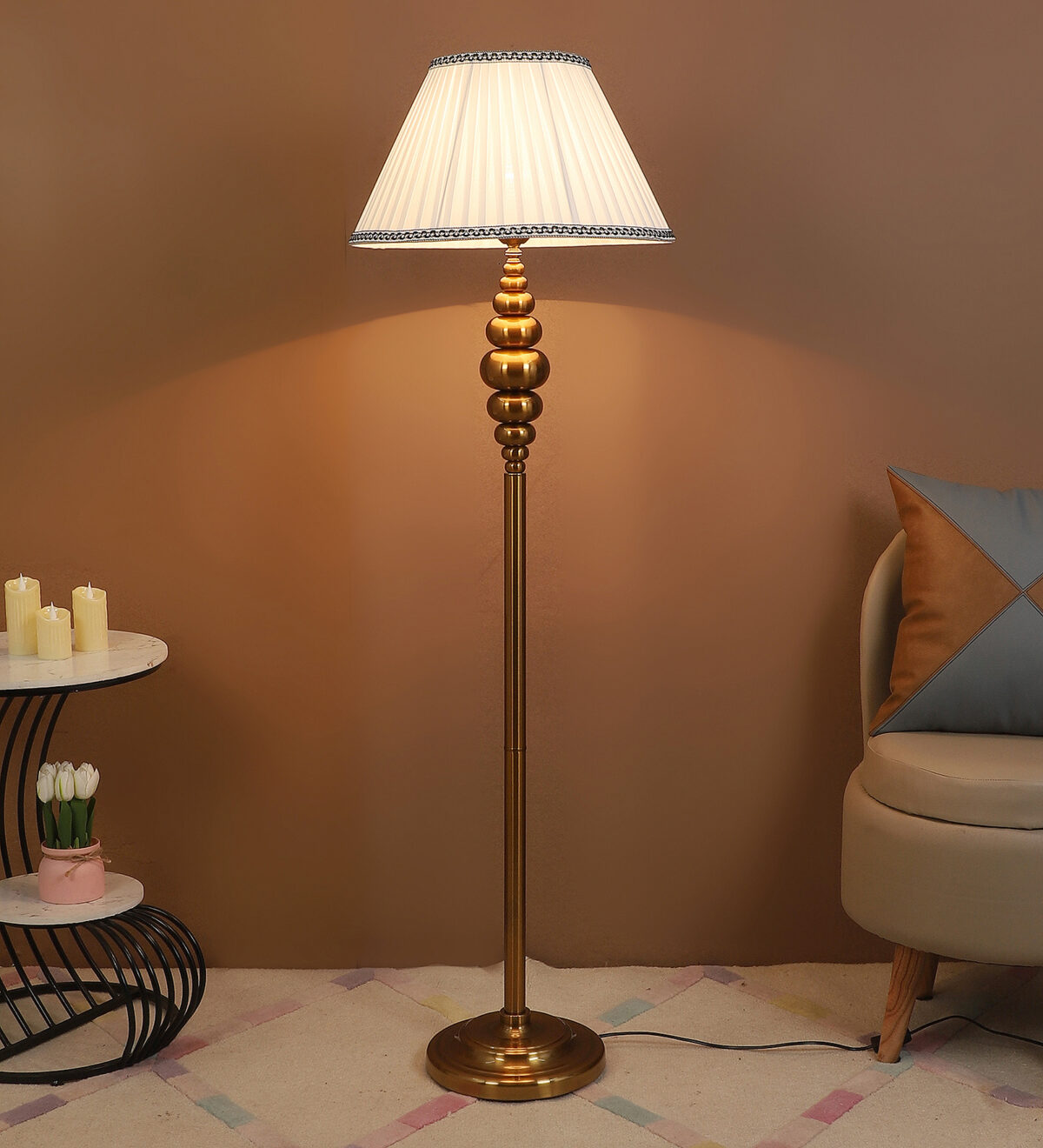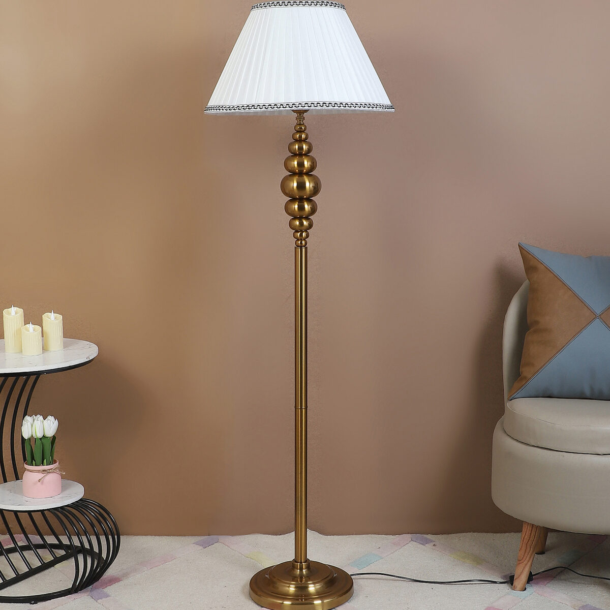 Be the first to review “LEARC gold bronze finish floor lamp with cream shade FL5022-A”