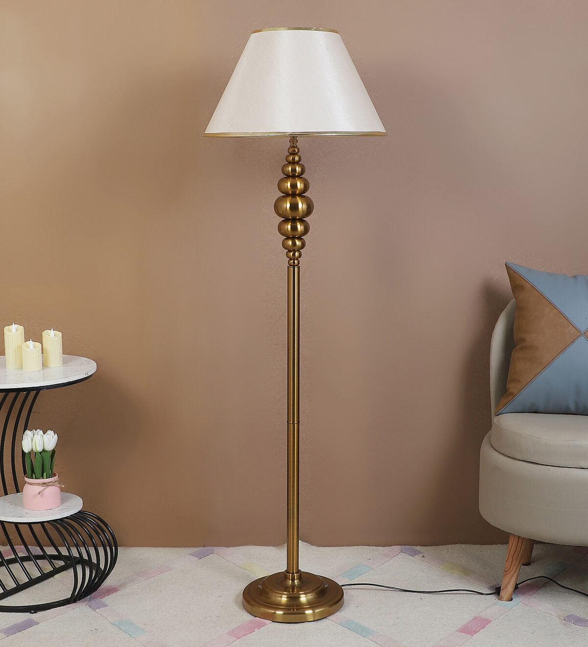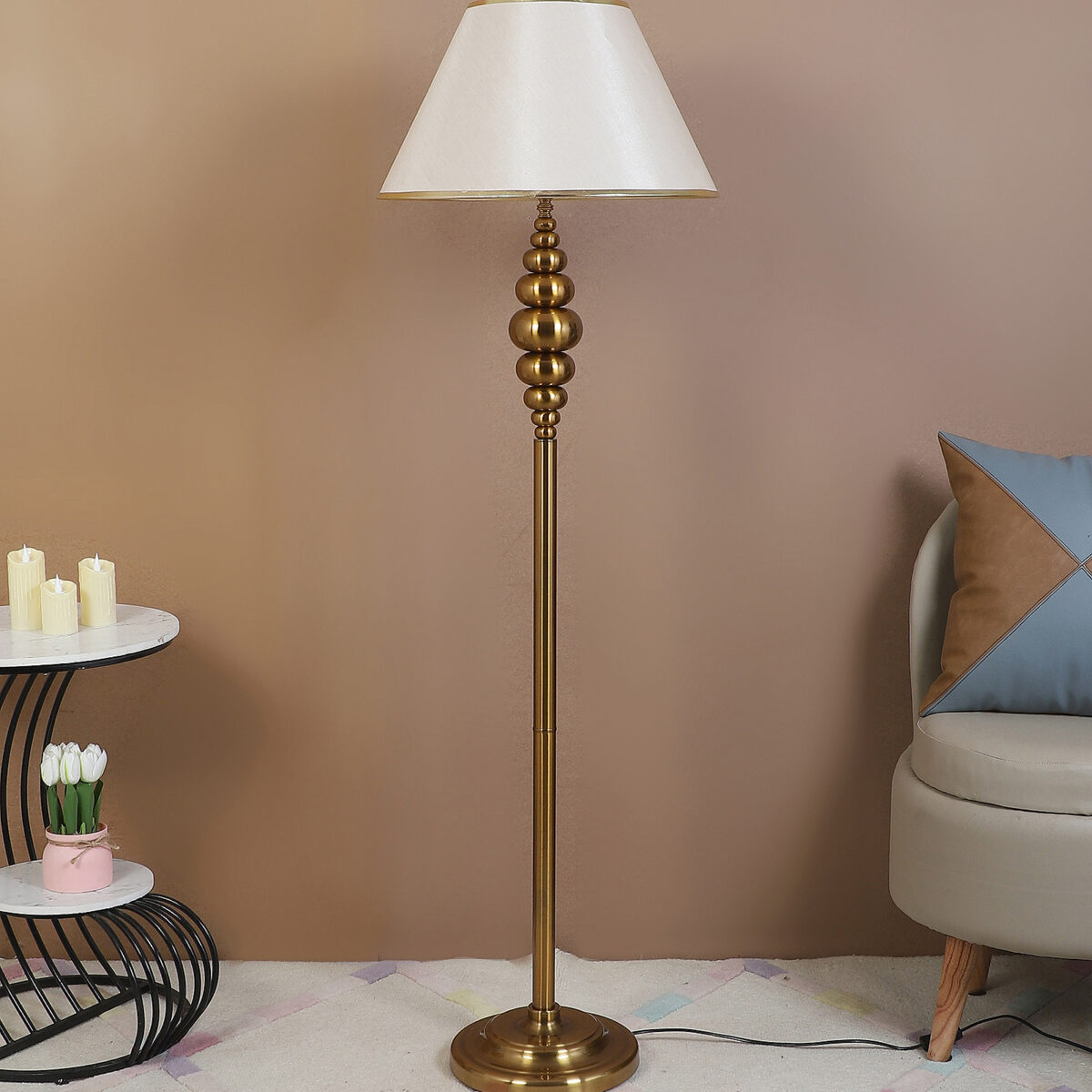 Be the first to review “LEARC gold bronze finish floor lamp with light gold shade having golden border FL5022-D”