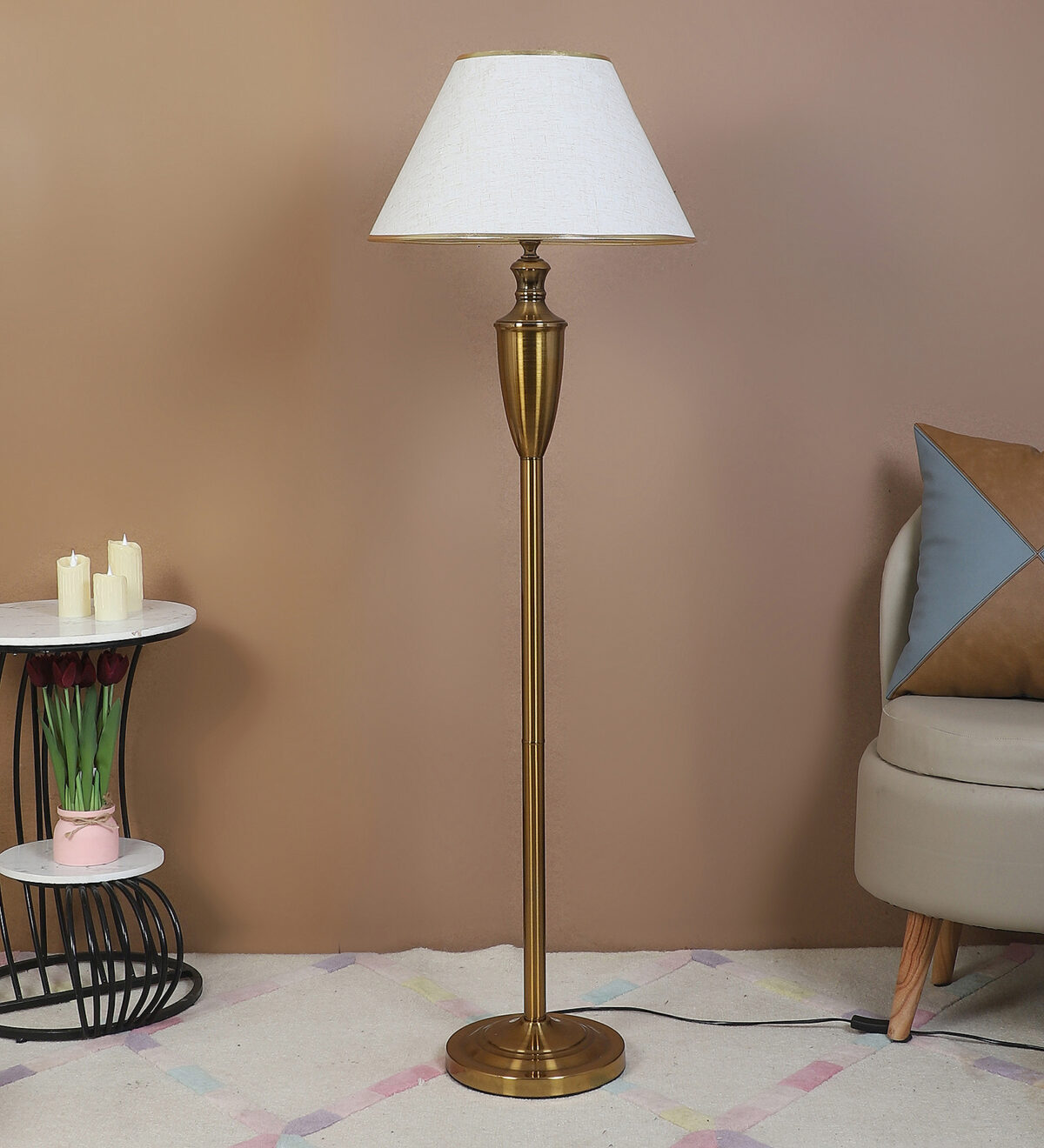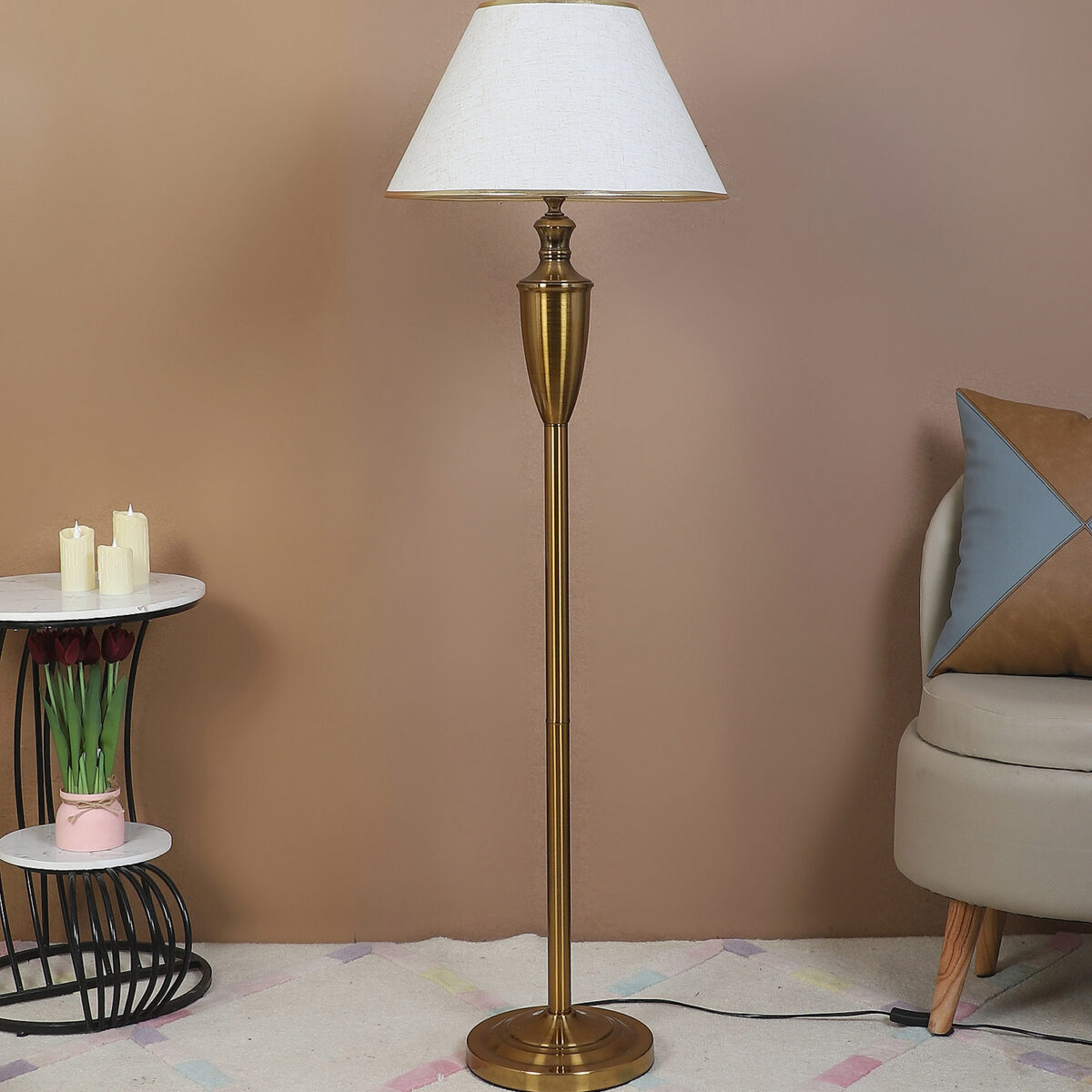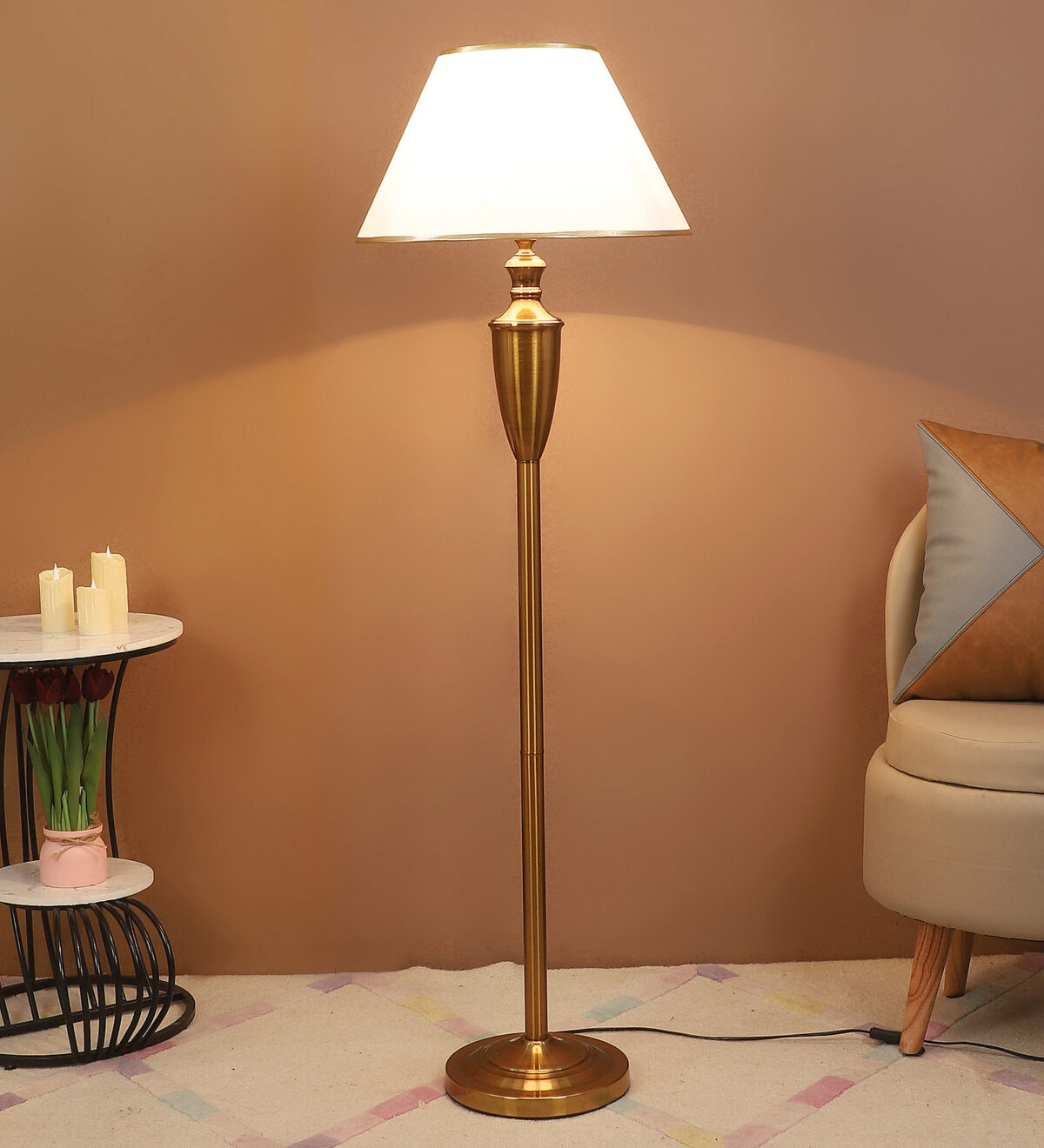 Be the first to review “LEARC gold bronze finish floor lamp with white shade having golden border FL5021-C”
