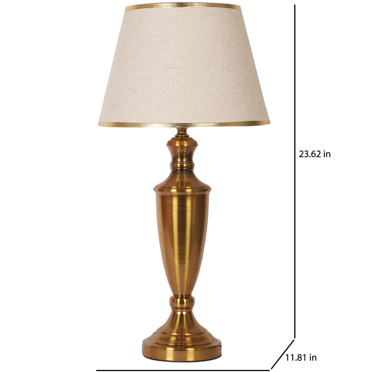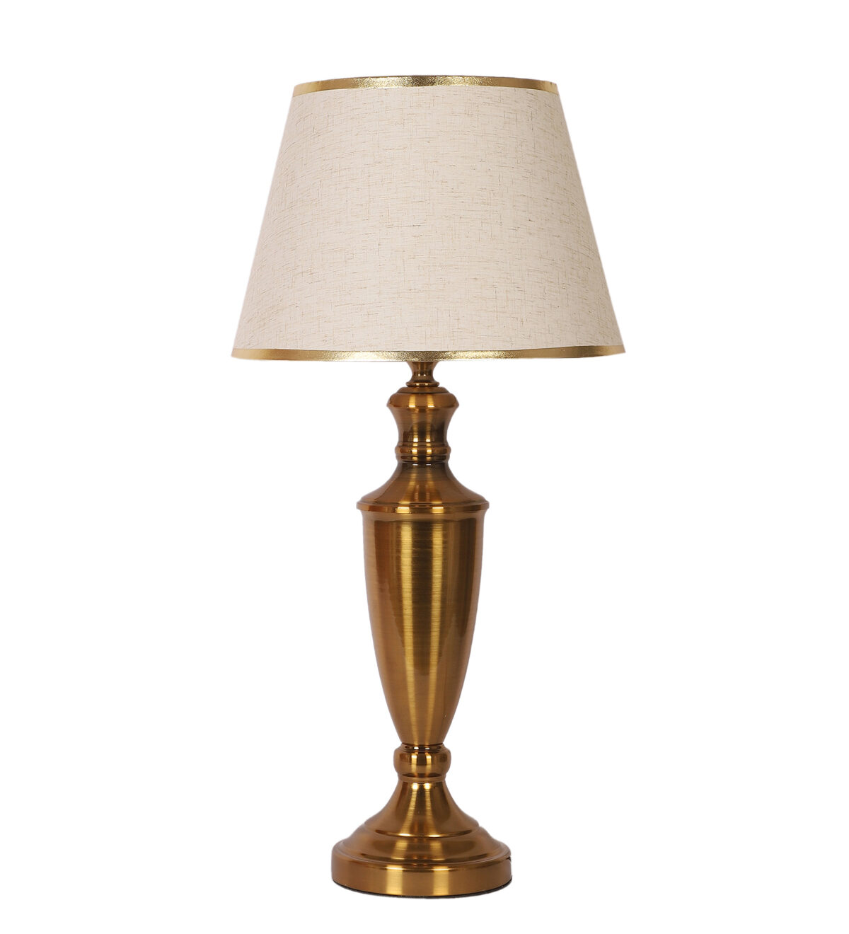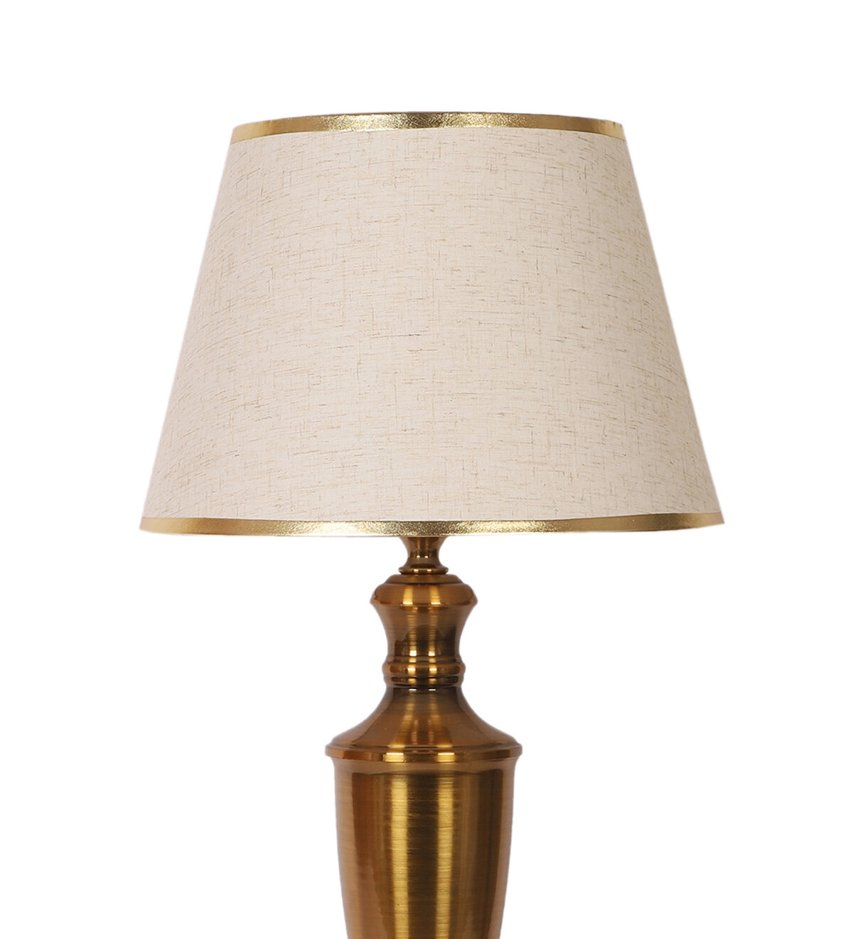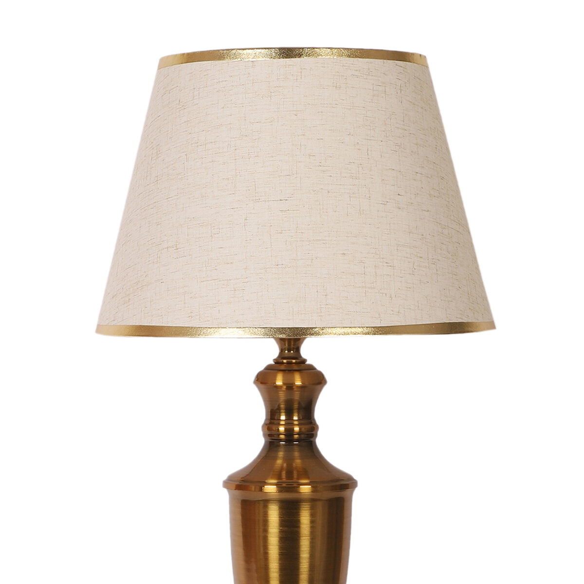 LEARC gold bronze finish table lamp with cream textured shade having golden border. LAMP NOT INCLUDED.