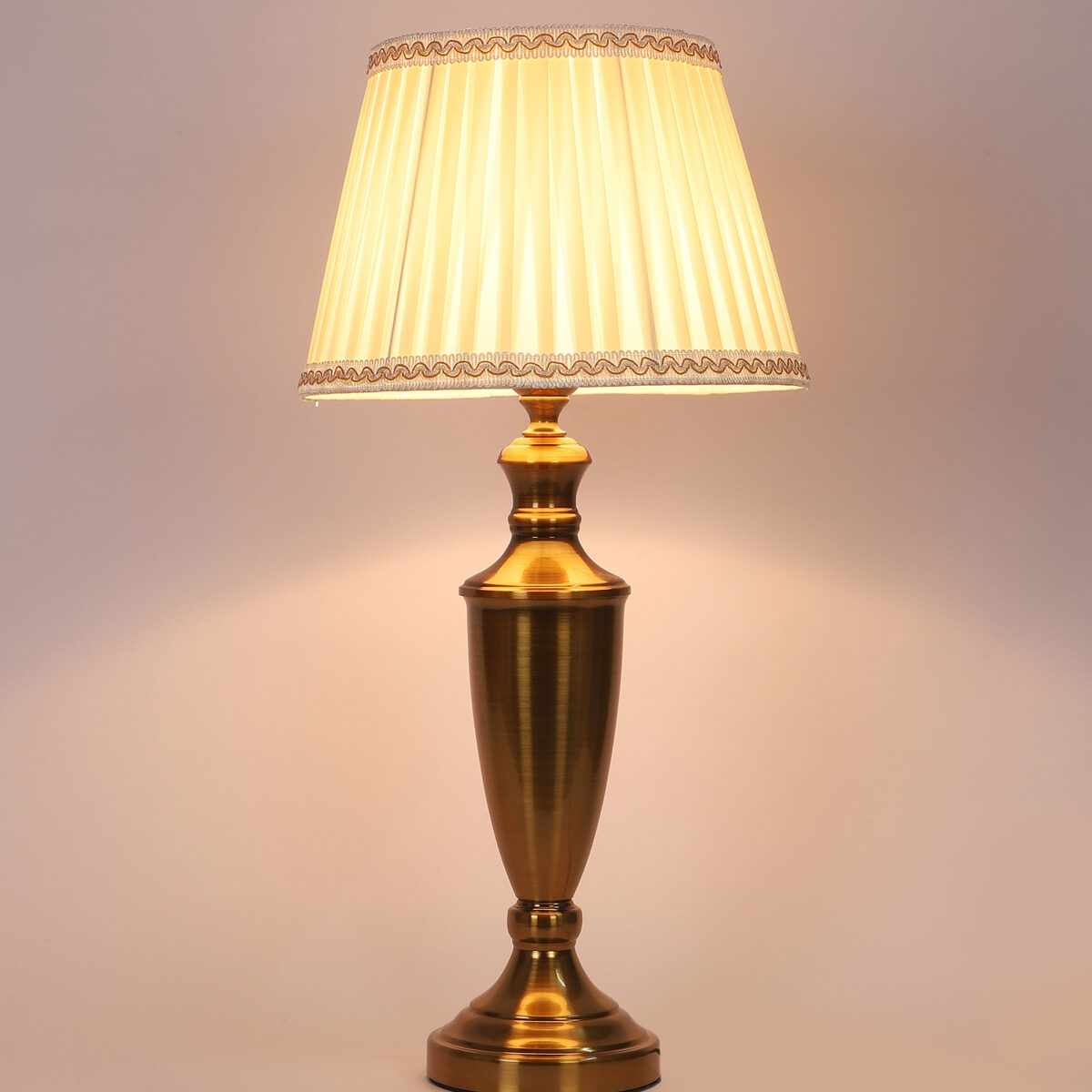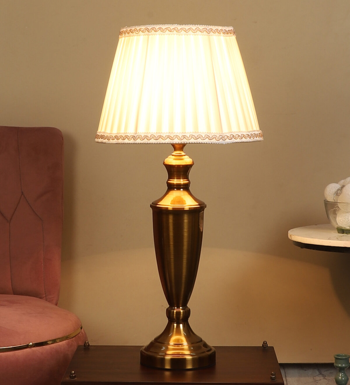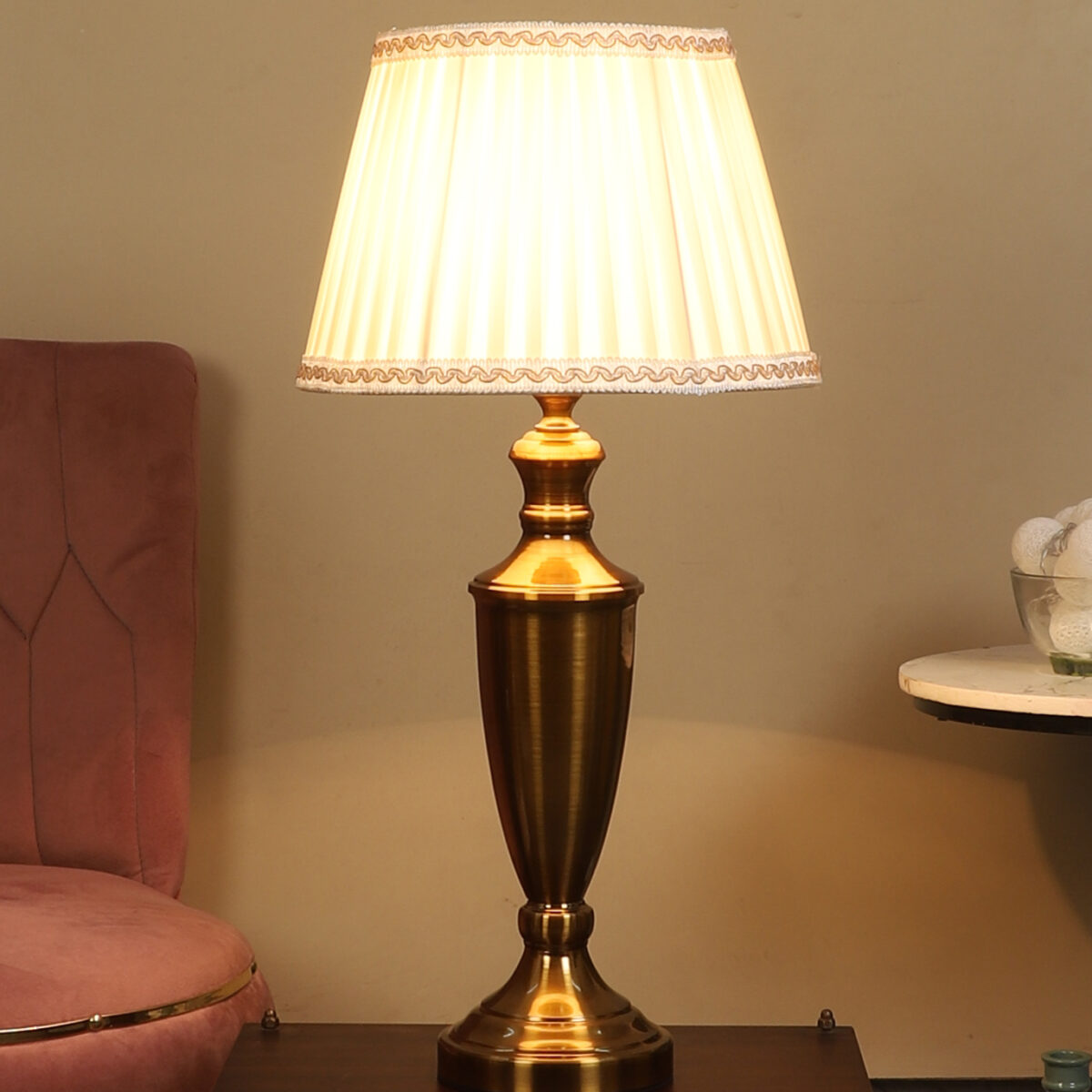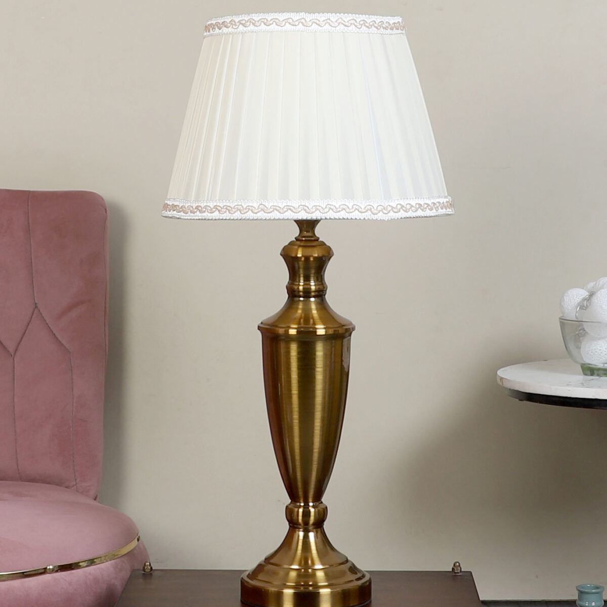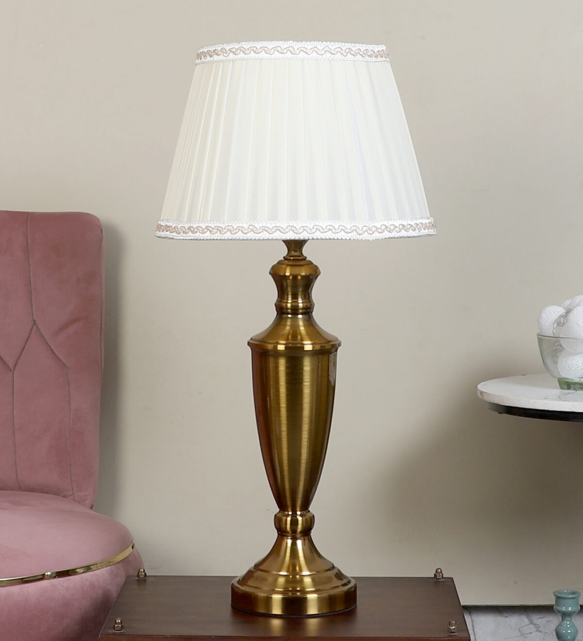 LEARC gold bronze finish table lamp with light gold shade having golden border TL5021-D