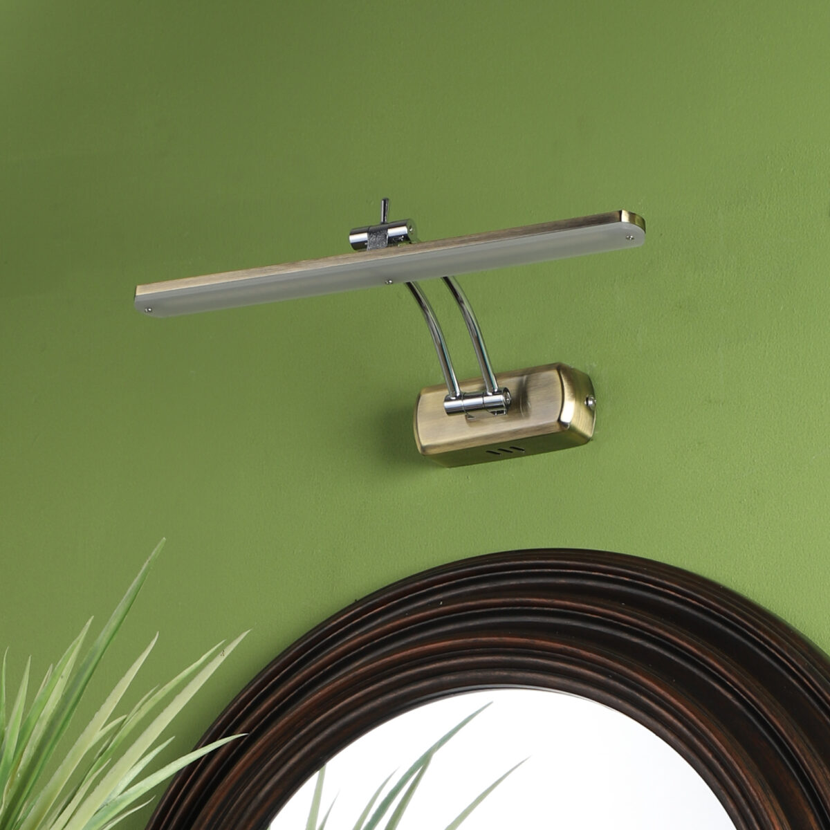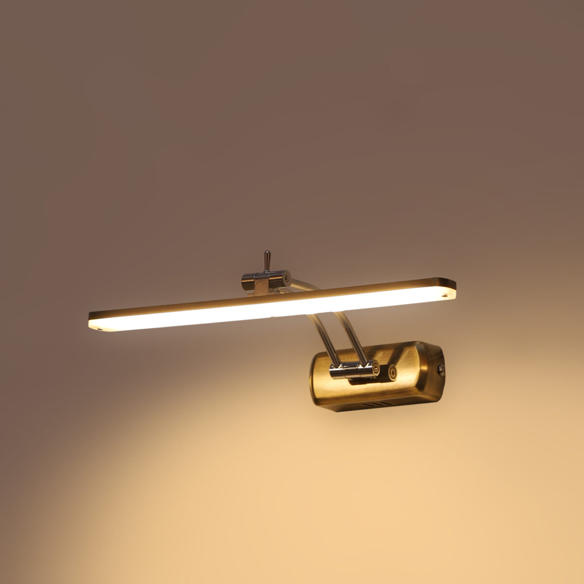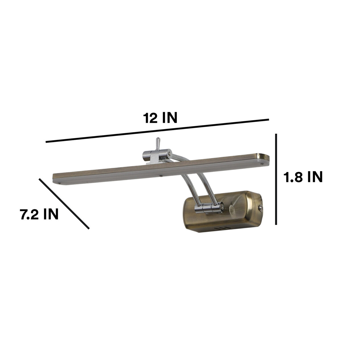 Antique gold finish LED picture light using high quality LED and driver with high success rate having less than 0.5% replacement with warm white (yellow) light output. It features two adjustible point. It is usually placed over the painting or a photo frame on the wall. Can also be used above the mirror light. Can be customised as per requirement in terms of body colour, colour of light output and wattage.