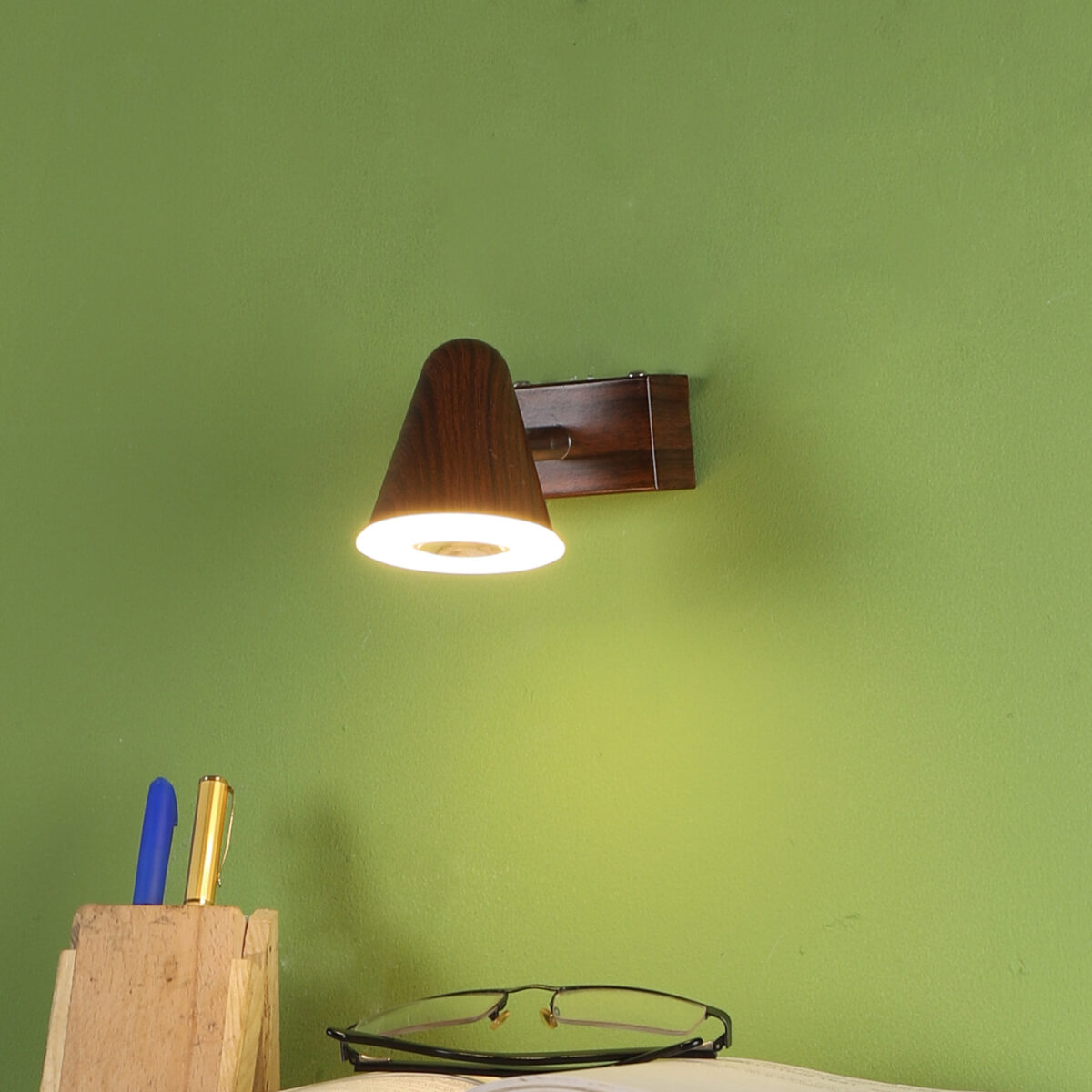 Aluminium, brown (wood finish with grains) single spot light using high quality LED and driver with high success rate having less than 0.5% replacement with warm white (yellow) light output. Great for installation above a dressing mirror, dressing table to provide illumination while applying make-up. It can also be used as a wall light, spot light, ceiling spot light bed side light, picture light. The lighting spot can be adjusted to any required position. Can also be made available in two and three light options. Can be customised as per requirement.