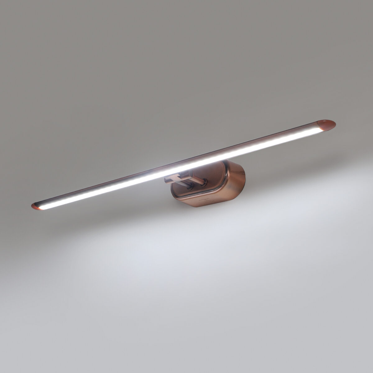 Copper finish 12W colour changing LED picture light using high quality LED and driver with high success rate having less than 0.5% replacement. It features one adjustible point. It is usually placed over the painting or a photo frame on the wall. Can also be used above the mirror light. Colour changes fom white to neutral white to yellow by switching on and off.