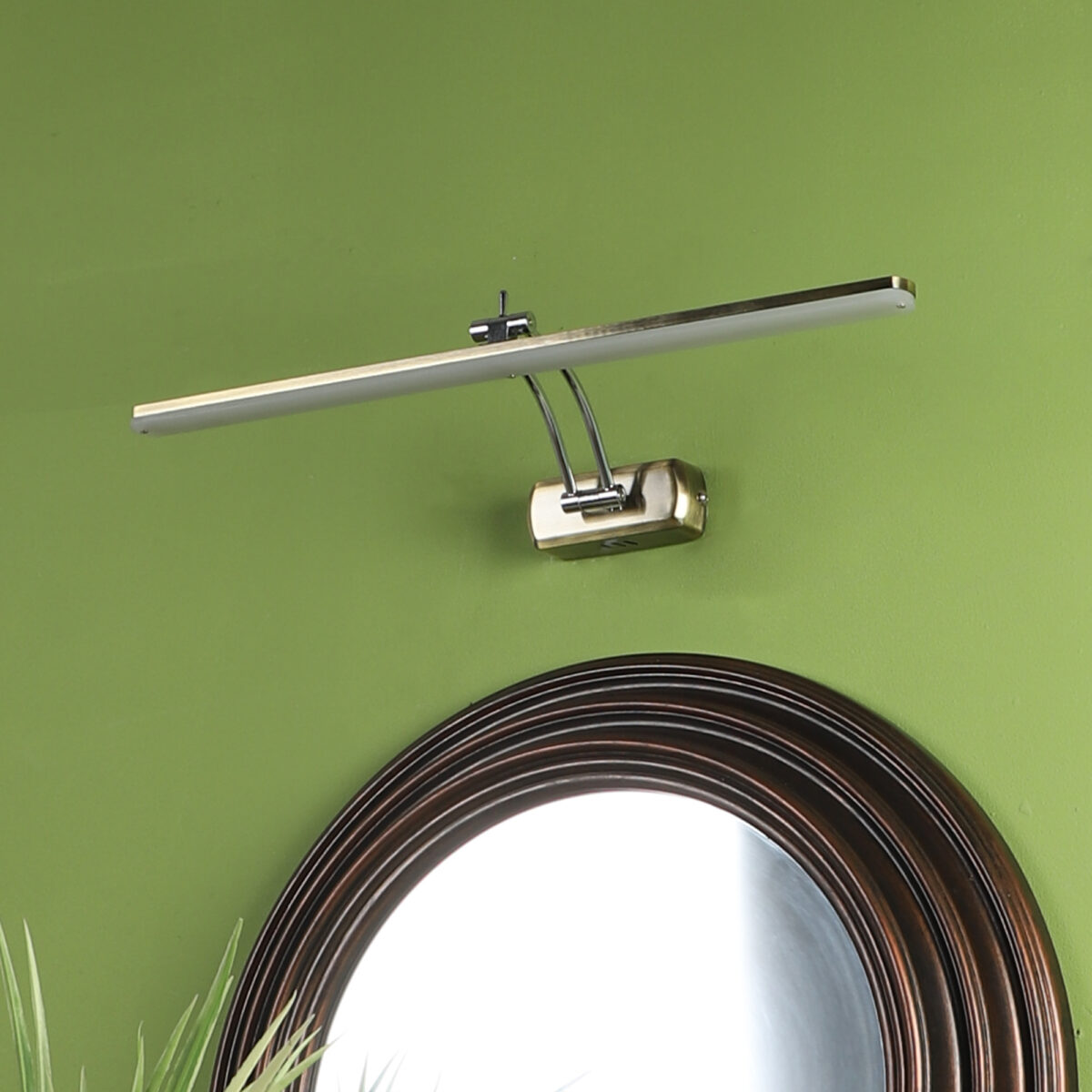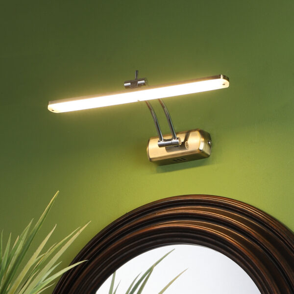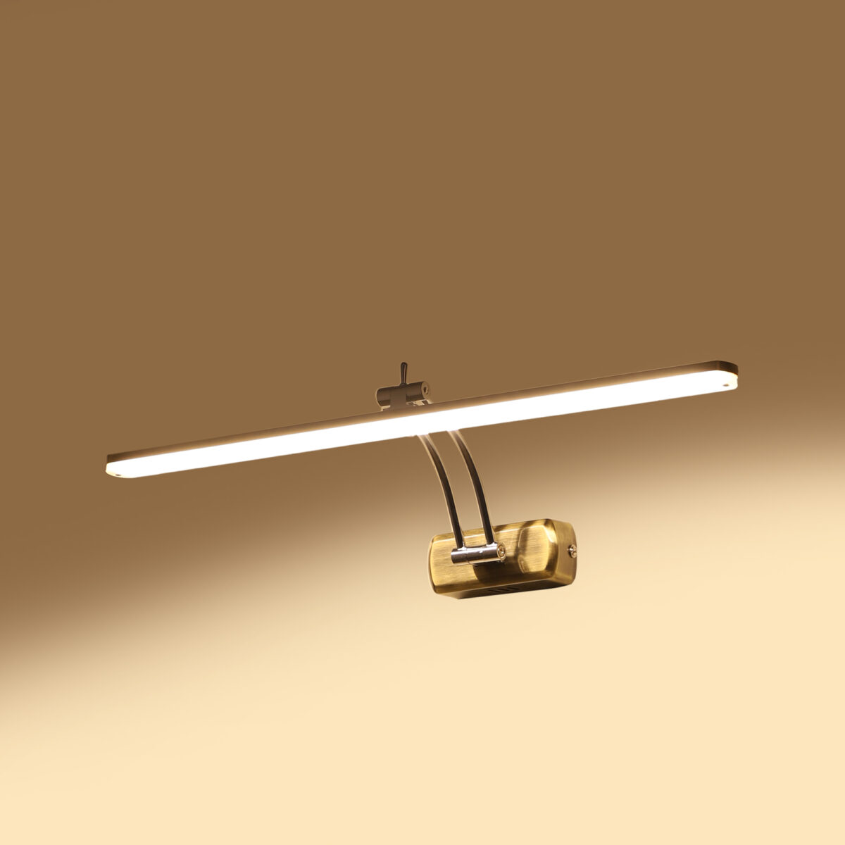 Antique gold finish LED picture light using high quality LED and driver with high success rate having less than 0.5% replacement with warm white (yellow) light output. It features two adjustible point. It is usually placed over the painting or a photo frame on the wall. Can also be used above the mirror light. Can be customised as per requirement in terms of body colour, colour of light output and wattage.