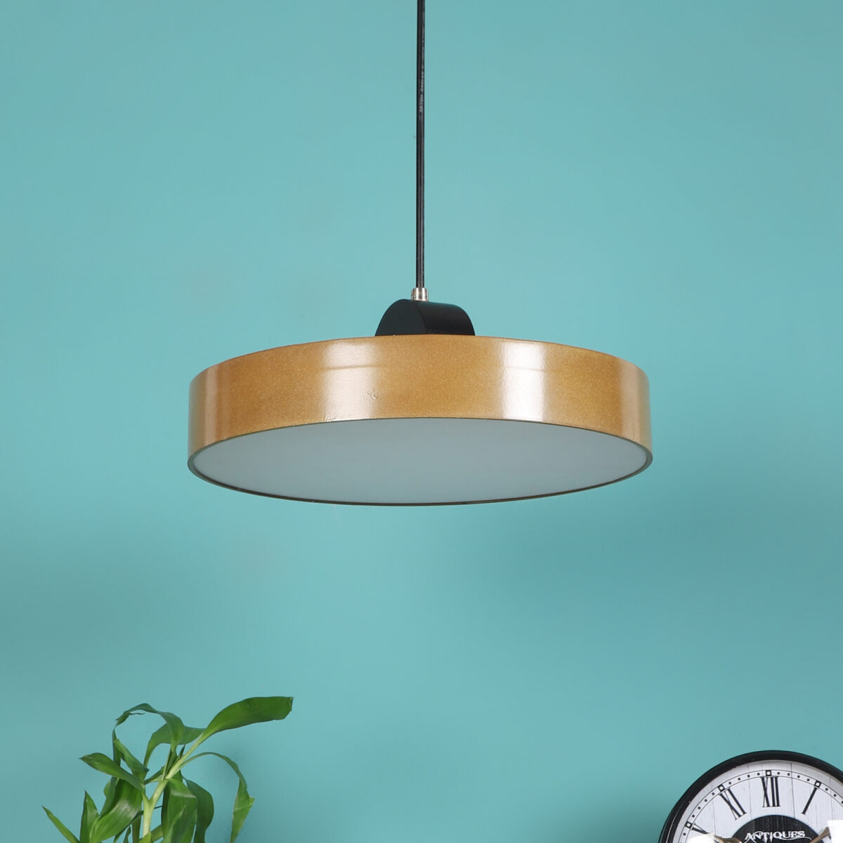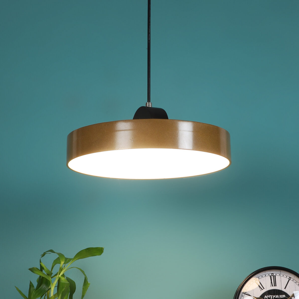 Exclusive gold powder coated modern, LED hanging light having high quality LED and branded LED driver having yellow light output. The suspension can be adjusted at time of installation to the desired height. Application includes both residential and comercial premises wherever it matches with your interiors. Can be customised as per requirement in terms of body colour, colour of light output and wattage.