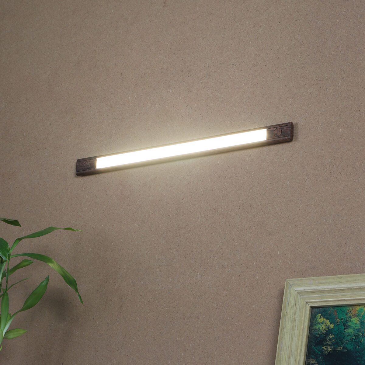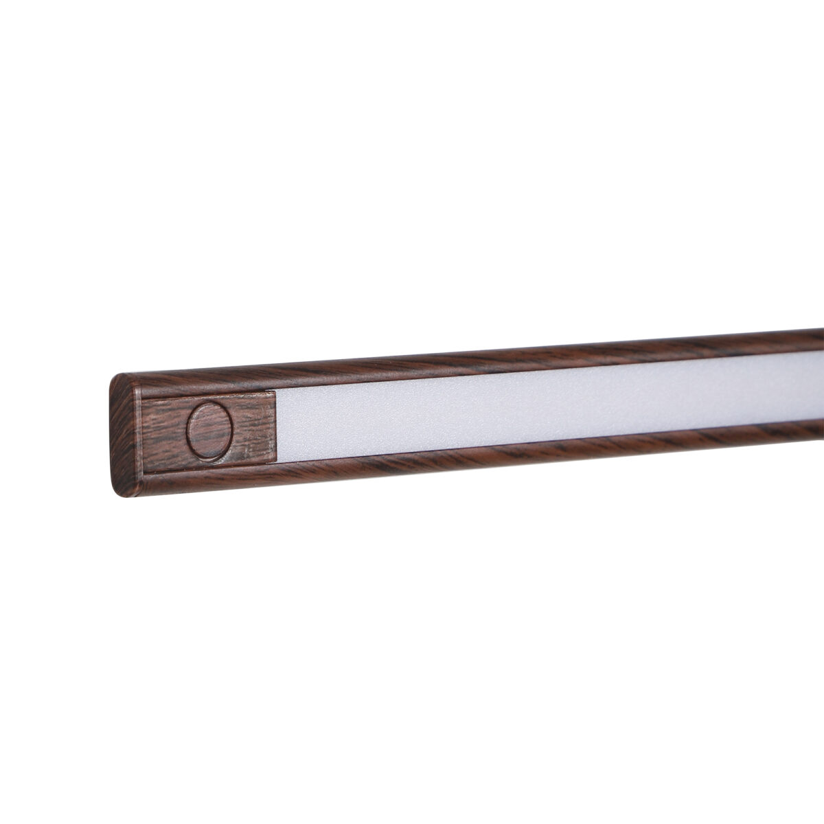 Brown (wooden finish with grains) 1 feet LED linear profile light made of mild steel and acryilic difuser for uniform light output. Extensively used in commercial projects under the cabinets, shelves, show cases display windows. Also used for residential purpose in cupboards , bar counters and other display shelves. Available in various lengths, wattage and colour of light output.