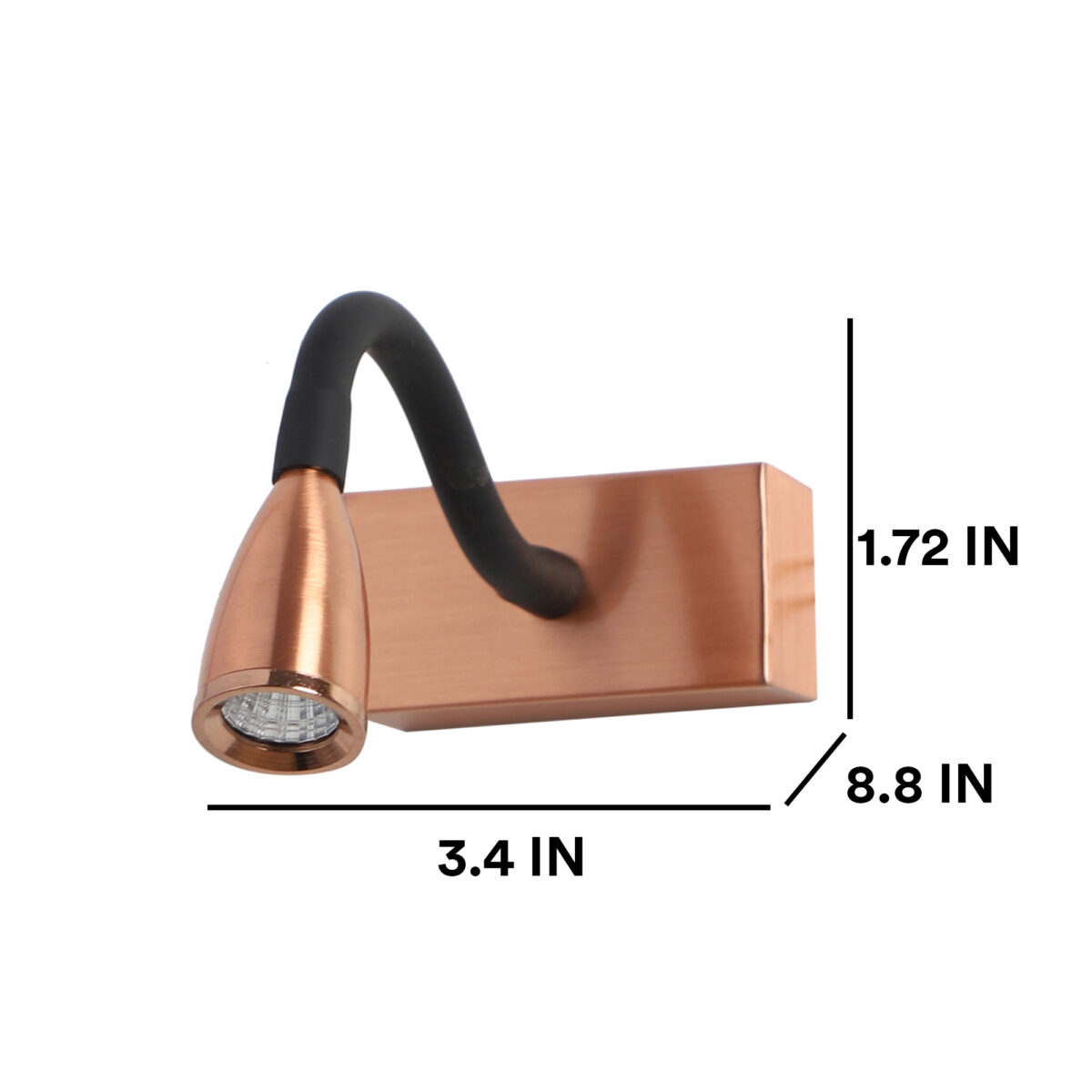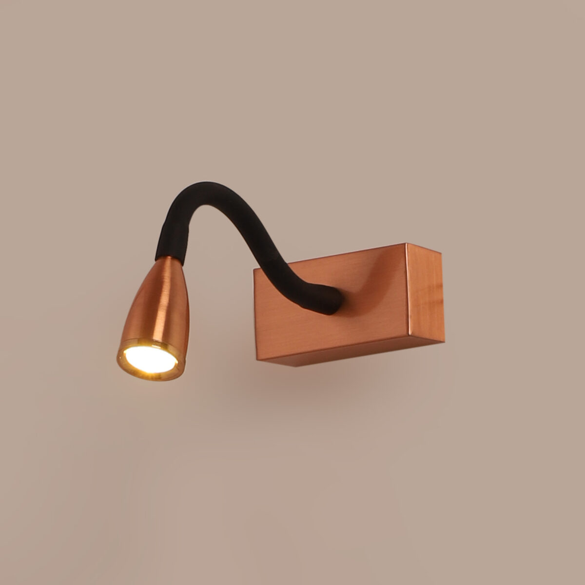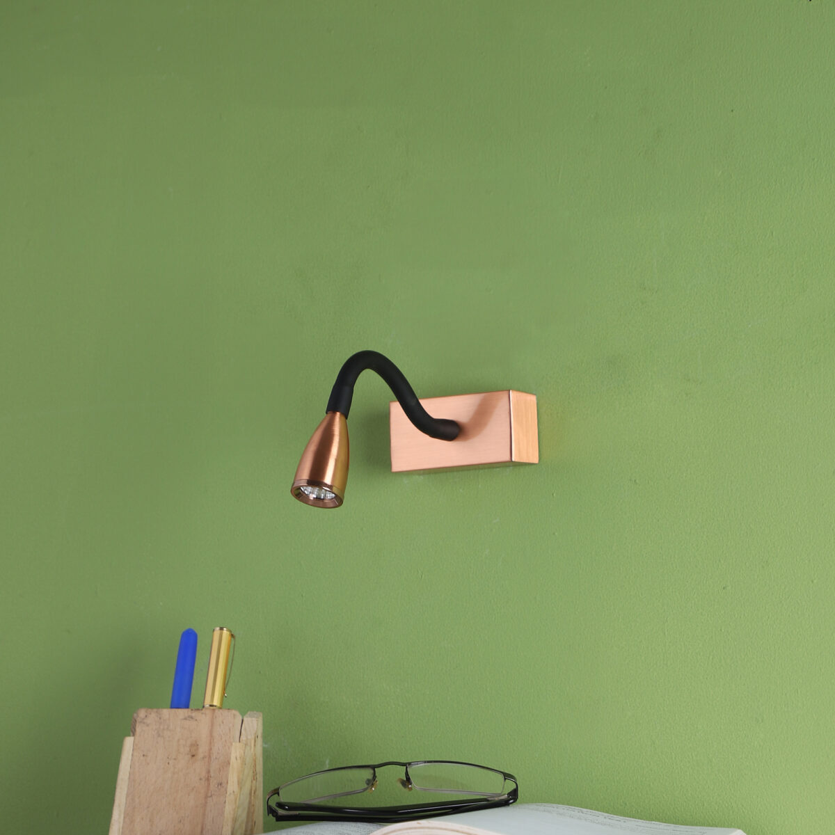 Copper finish sleek, adjustable bed side spot light using high quality LED and driver with high success rate having less than 0.5% replacement. This highlights a small area giving yellow light output , which can be adjusted by rotating the pipe in any required direction. The sleep of the other person is not disturbed while using this light since the area highlighted is limited. It can also be used as a spot light or a picture light to enhance the look of any object.Can be customised as per requirement.