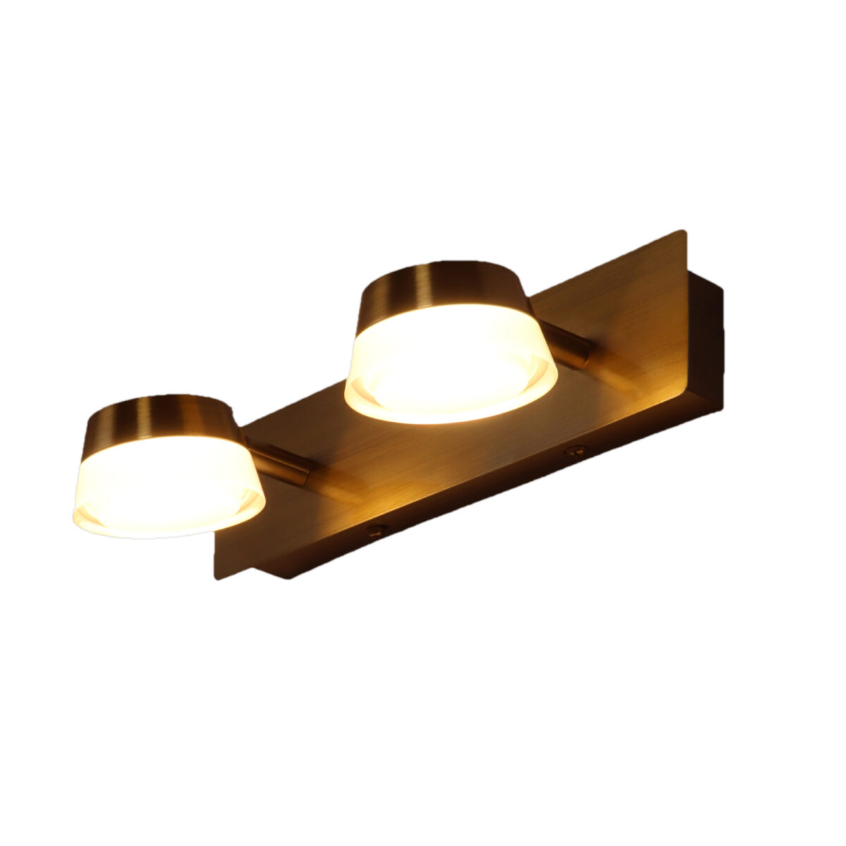 Aluminium die cast, antique gold finish double spot light using high quality LED and driver with high success rate having less than 0.5% replacement with warm white (yellow) light output. Great for installation above a dressing mirror, dressing table to provide illumination while applying make-up. It can also be used as a wall light, spot light, ceiling spot light bed side light, picture light. The lighting spot can be adjusted to any required position. Also availble in single and tripple spot options.