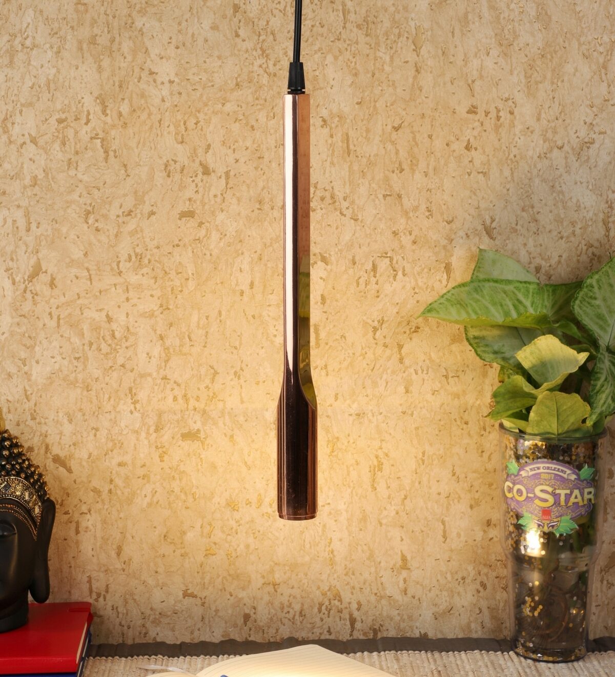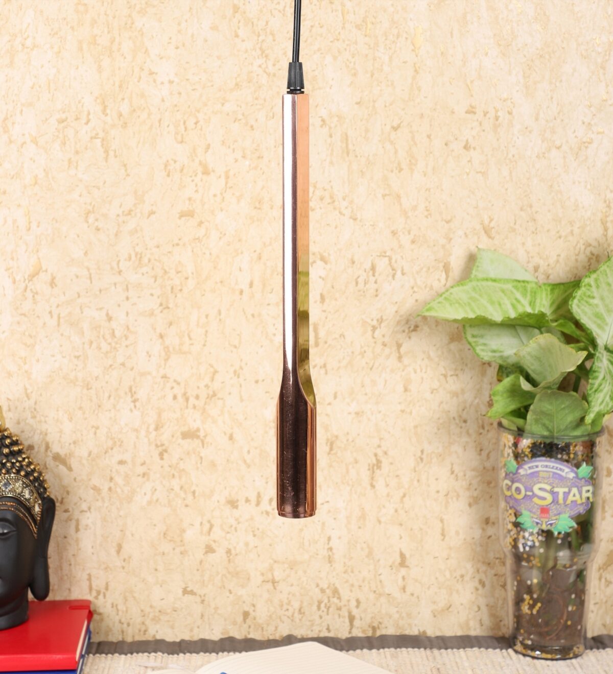 Copper finish, sleek, modern, LED hanging light having high quality LED and driver with high success rate having less than 0.5% replacement having warm white (yellow) light output The suspension can be adjusted at time of installation to the desired height. It is one of the highest selling premium design. Can be made available in a cluster of multiple quantities with round, square or rectangular base as per requirement . Application includes both residential and comercial premises wherever it matches with your interiors. Also available in antique gold finish with code HL4156.
