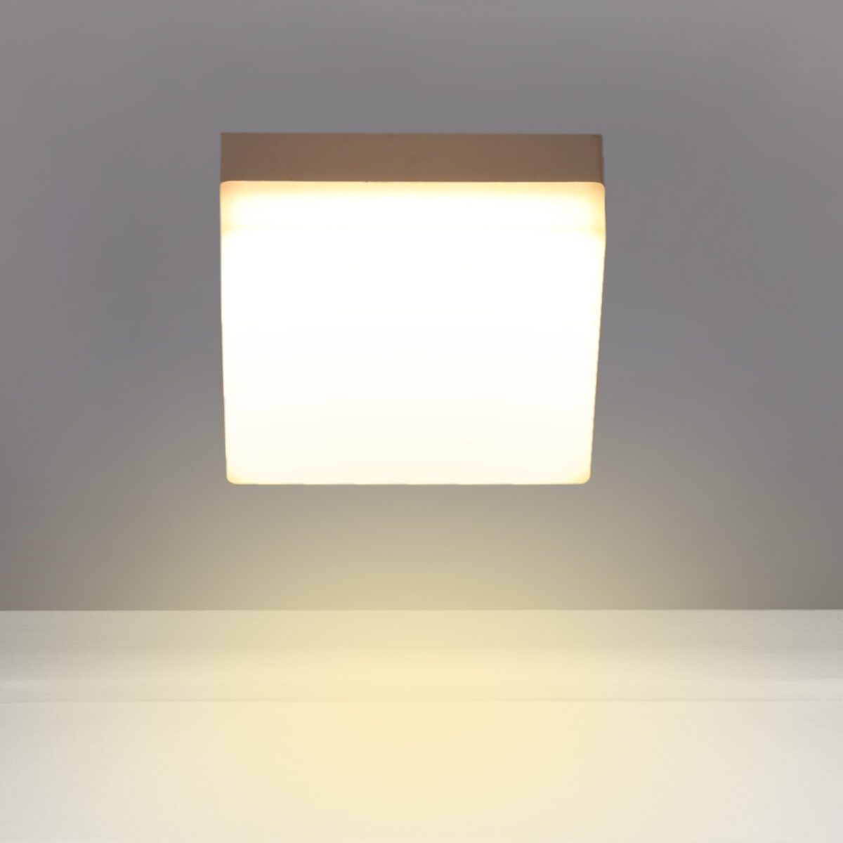 Square aluminium die cast outdoor ceiling light in white finish using high quality LED and driver with high success rate having less than 0.5% replacement. It spreads output in 360 degrees. It can be used in both indoor and outdoor applications . Application areas include porches, entrance, patio, verandah, balcony, bathroom, staircase ceiling, terrace, stilt parking, basement parking, Available in bigger size with code J1002-WW.