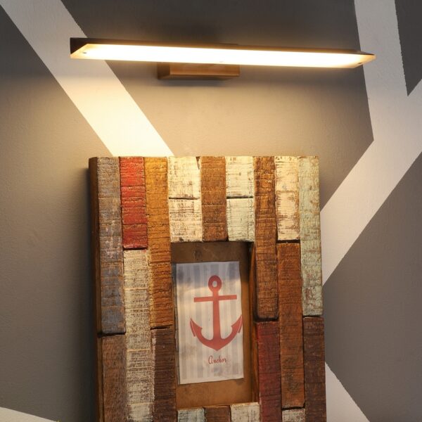 Exclusive dark brown (wood finish) LED picture light using high quality LED and driver with high success rate having less than 0.5% replacement with warm white (yellow) light output. It features one adjustible point. It is usually placed over the painting or a photo frame on the wall. Can also be used above the mirror. Its premium quality wood finish makes it one of the best selling product in our catalogue. It is also available in large and small sizes with codes ML336-L, ML336-S. It can be made in silver, antique, copper, white, and black finish in case of bulk requirement.
