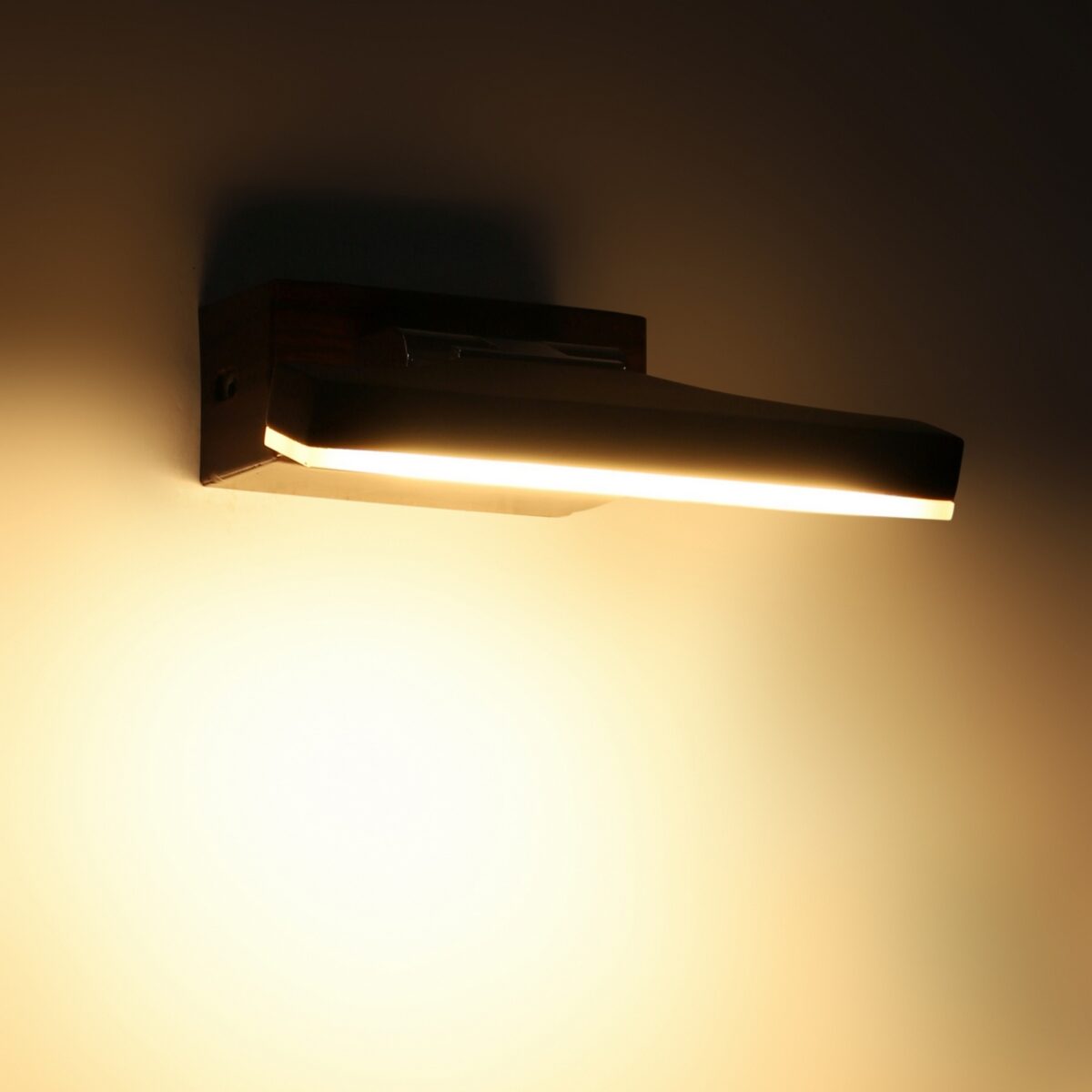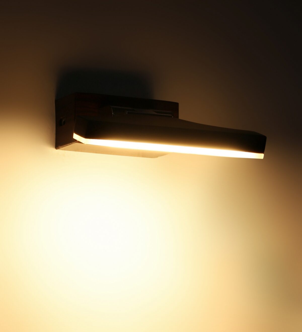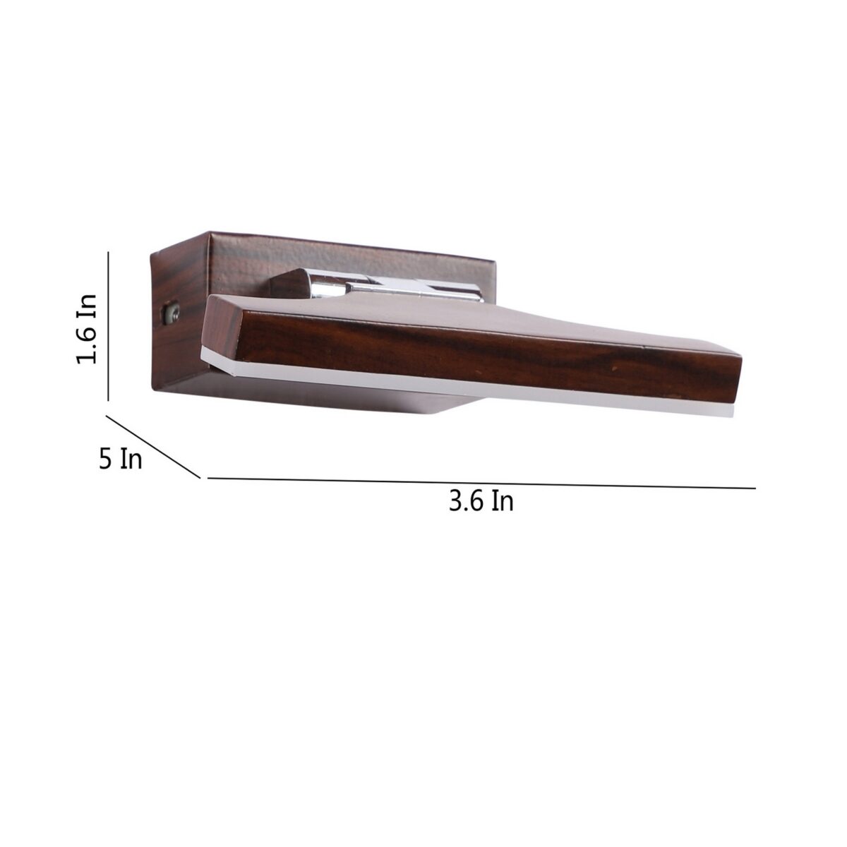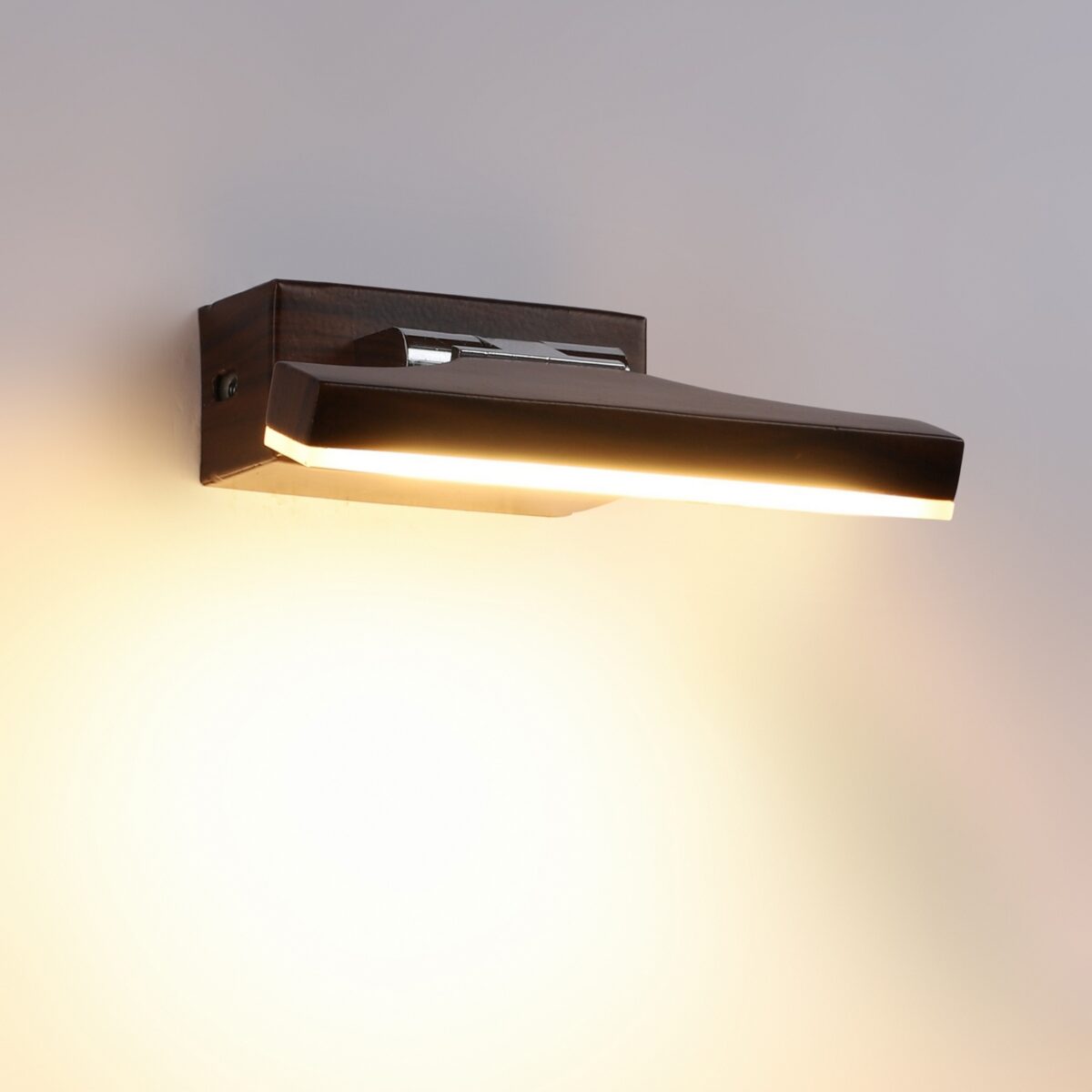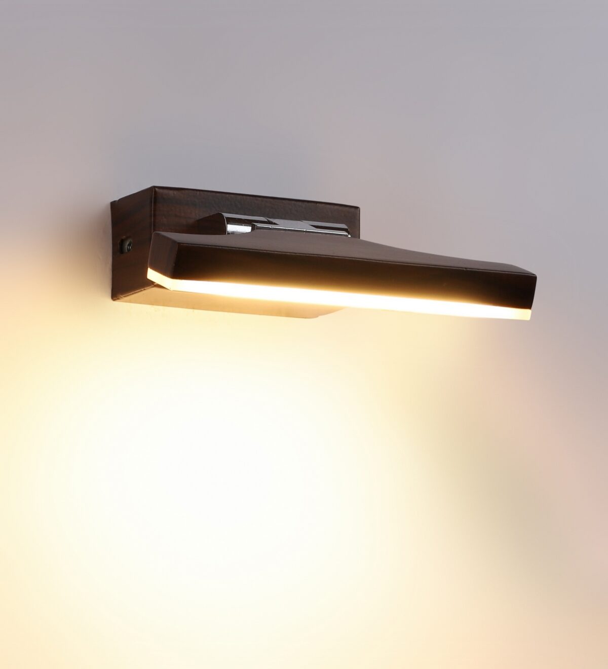 Exclusive dark brown (wood finish) LED picture light using high quality LED and driver with high success rate having less than 0.5% replacement with warm white (yellow) light output. It features one adjustible point. It is usually placed over the painting or a photo frame on the wall. Can also be used above the mirror. Its premium quality wood finish makes it one of the best selling product in our catalogue. Also available in white finish with code ML334-S. It can be made in silver, antique, copper, and black finish in case of bulk requirement.