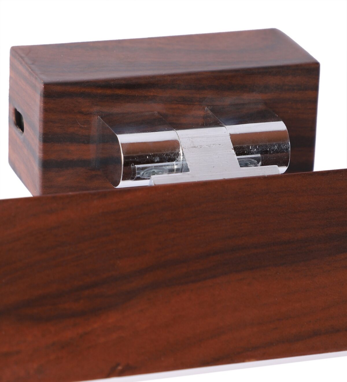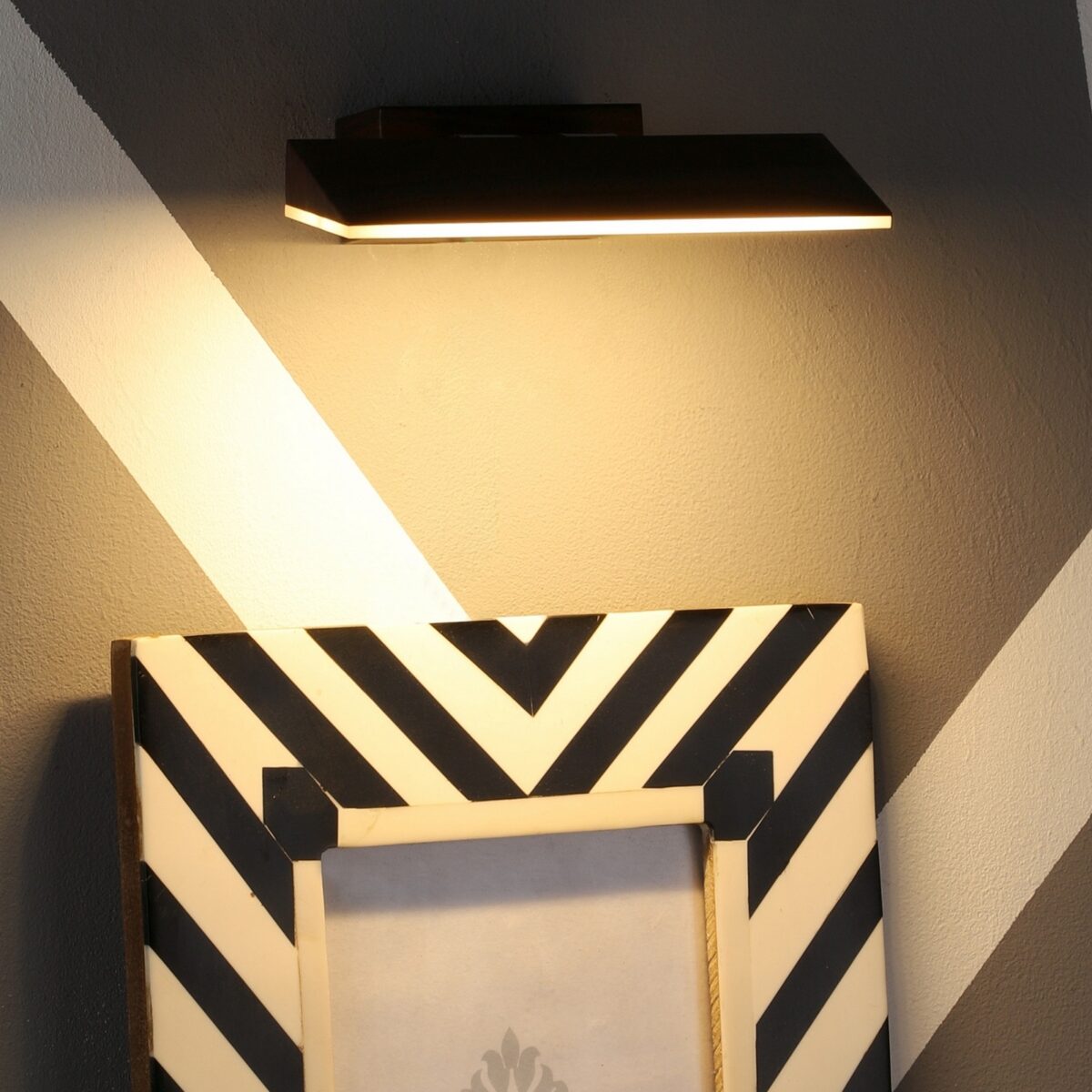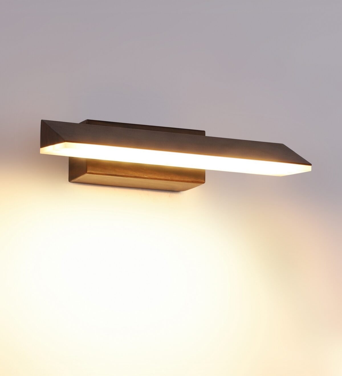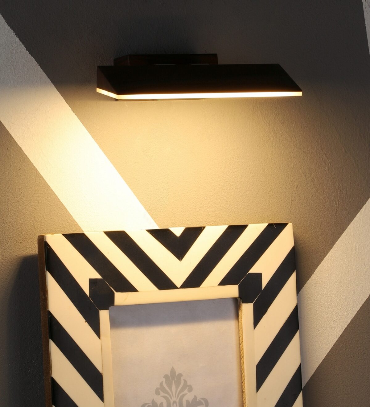 Exclusive dark brown (wood finish) LED picture light using high quality LED and driver with high success rate having less than 0.5% replacement with warm white (yellow) light output. It features one adjustible point. It is usually placed over the painting or a photo frame on the wall. Can also be used above the mirror. Its premium quality wood finish makes it one of the best selling product in our catalogue. It is also available in large and X-large sizes with codes ML336-L, ML336-XL. it can be made in silver, antique, copper, white, and black finish in case of bulk requirement.
