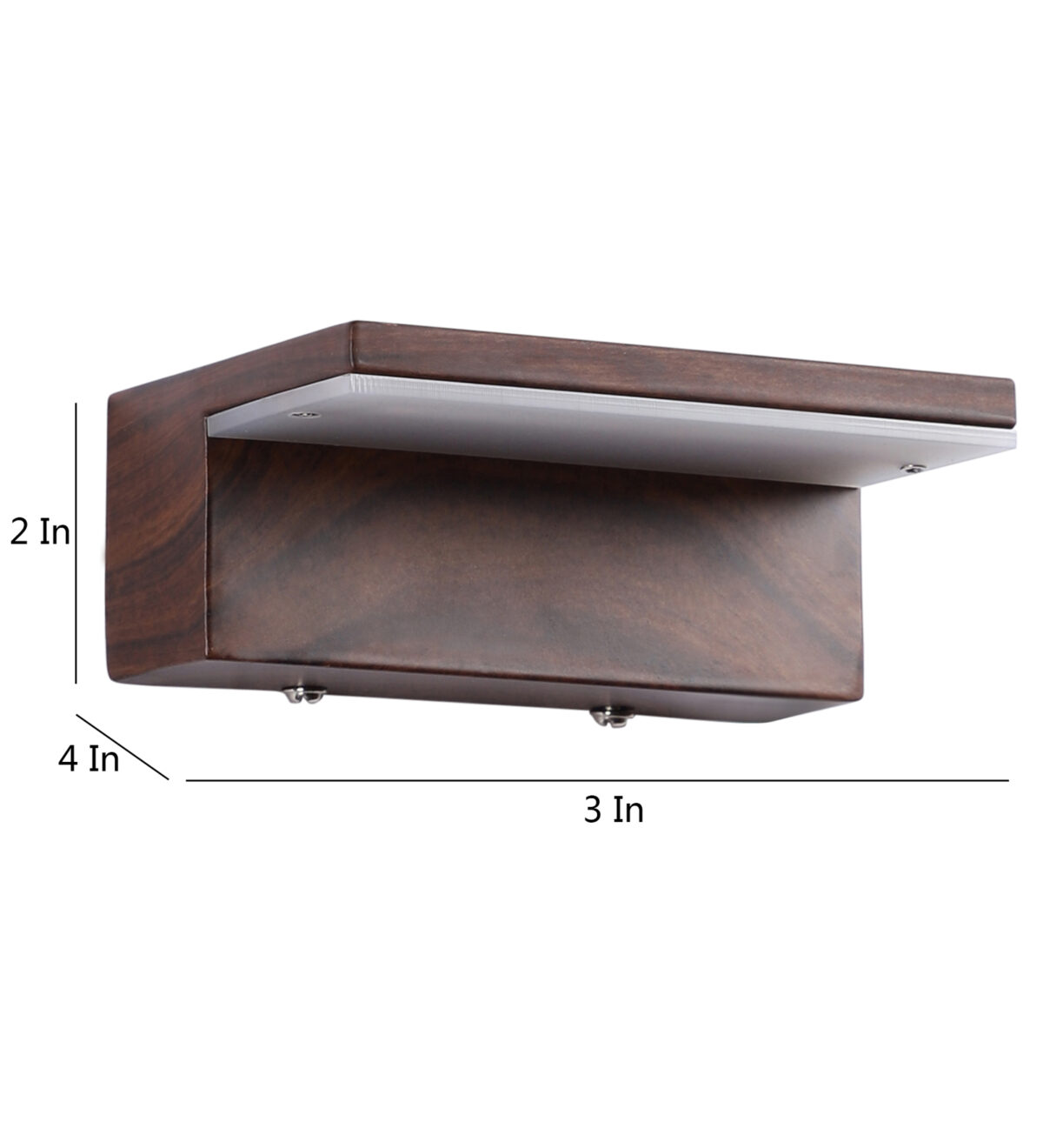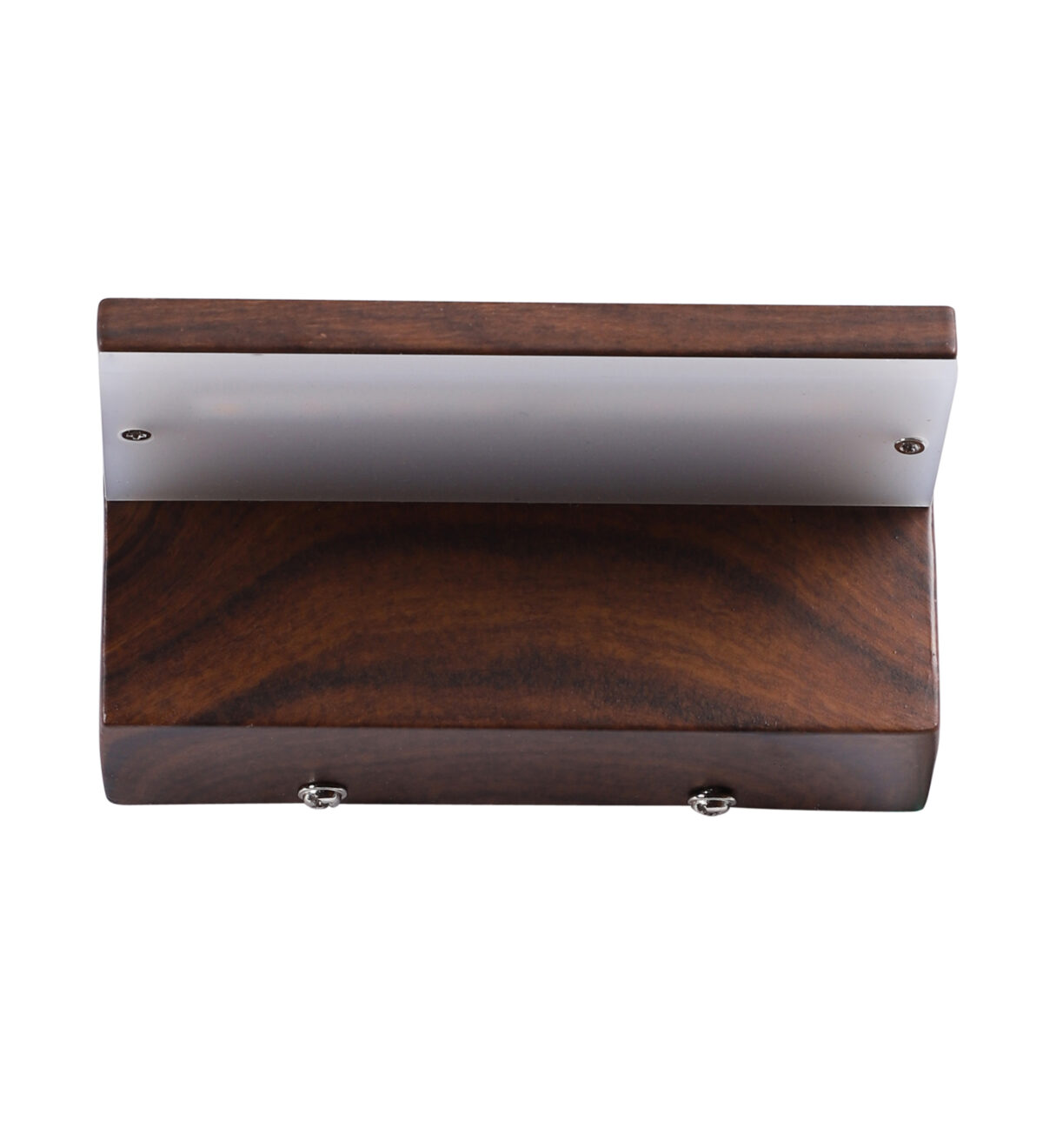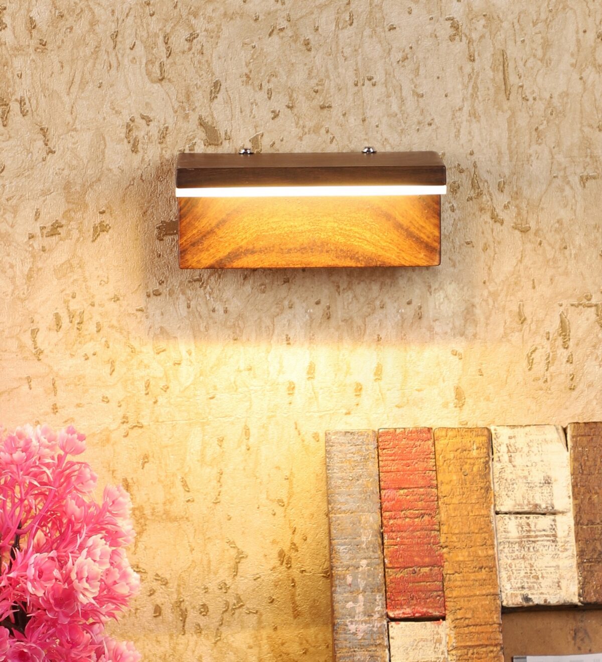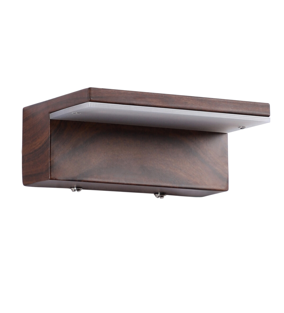 Brown (wood) finish LED wall light using high quality LED and driver with high success rate having less than 0.5% replacement with warm white (yellow) light output. Can also be used as a mirror light. It can be made in silver, antique, copper, white, and black finish having various width and wattage in case of bulk requirement.