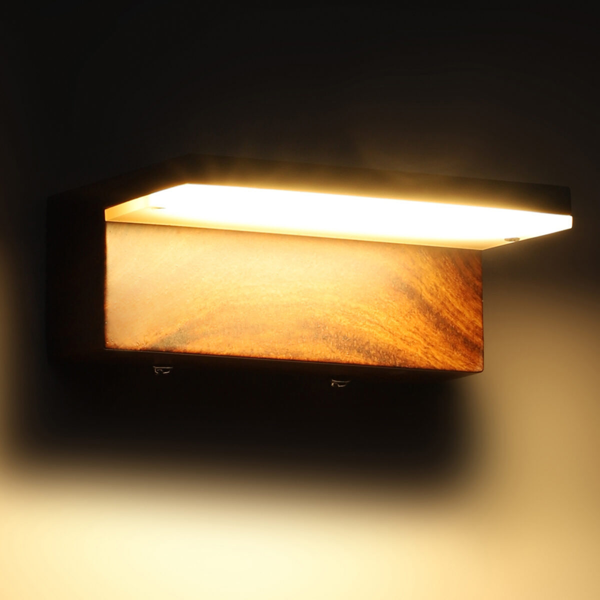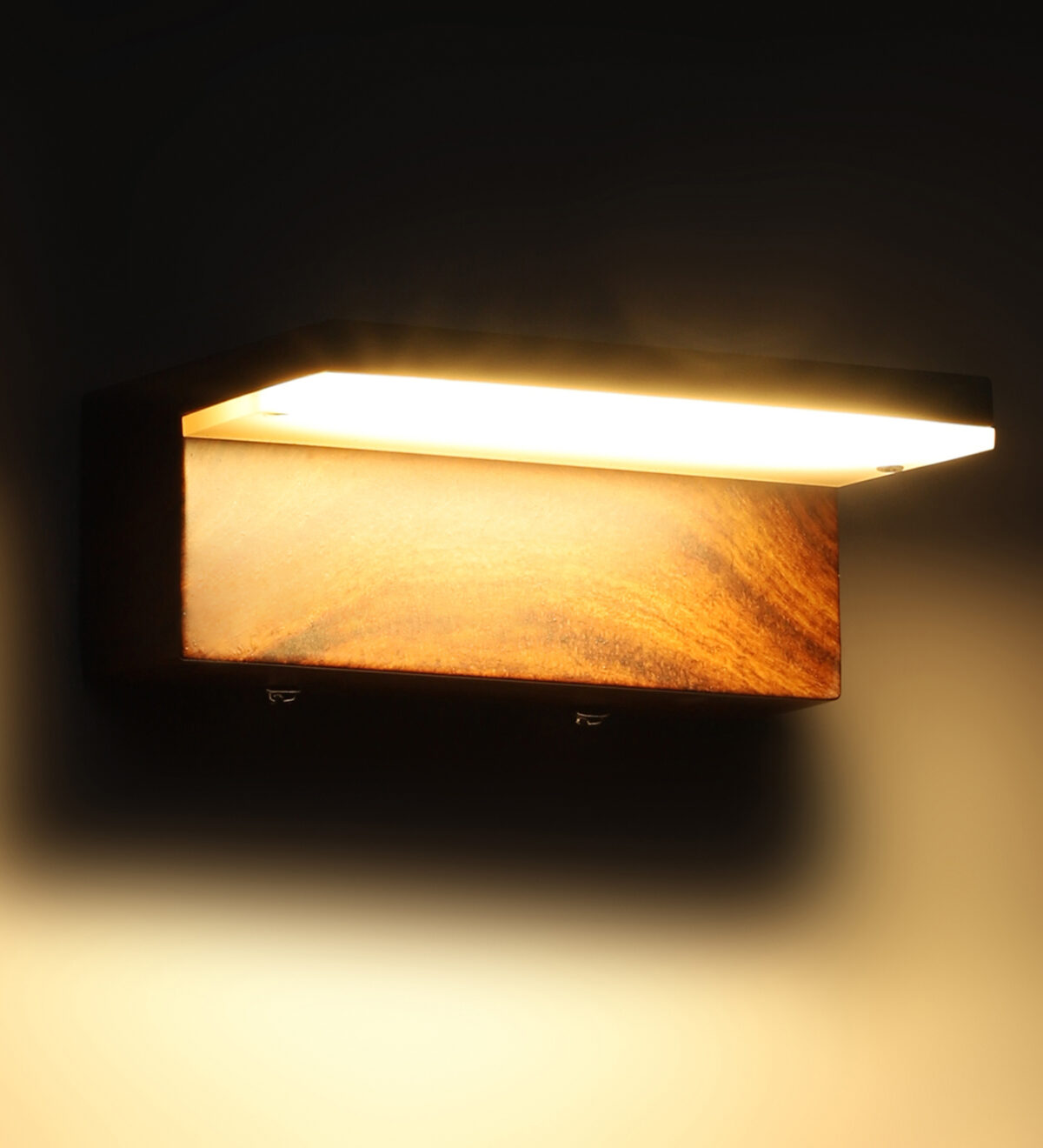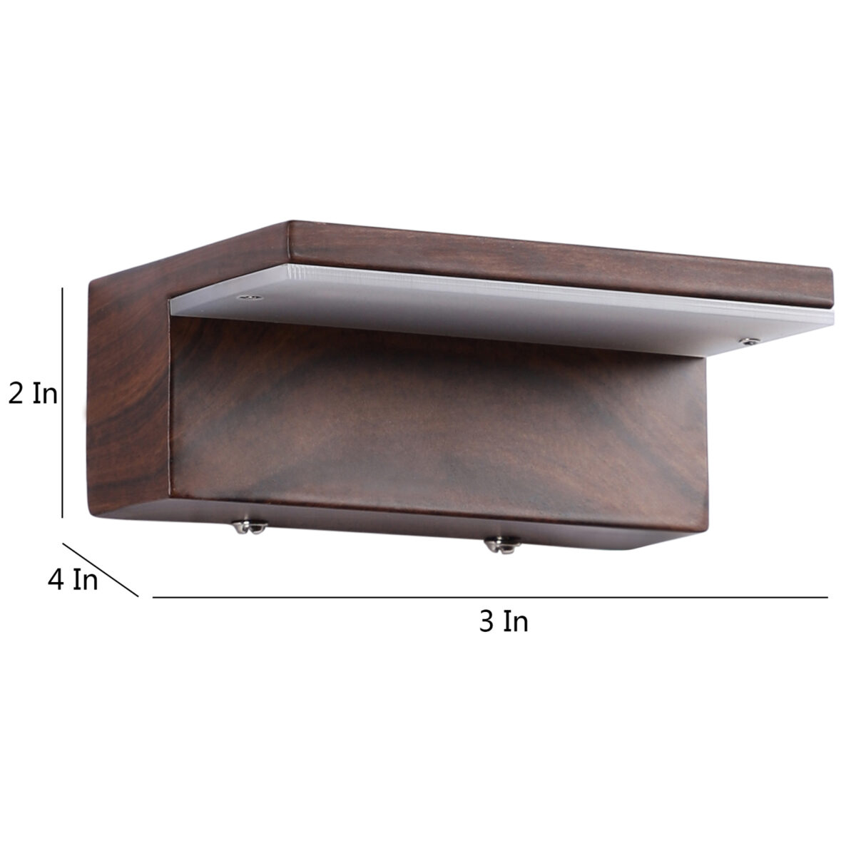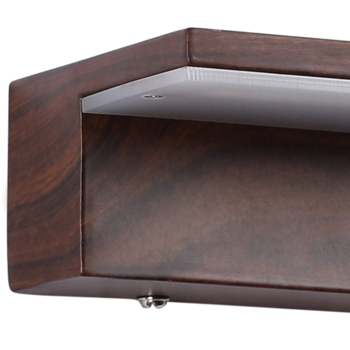 Brown (wood) finish LED wall light using high quality LED and driver with high success rate having less than 0.5% replacement with warm white (yellow) light output. Can also be used as a mirror light. It can be made in silver, antique, copper, white, and black finish having various width and wattage in case of bulk requirement.