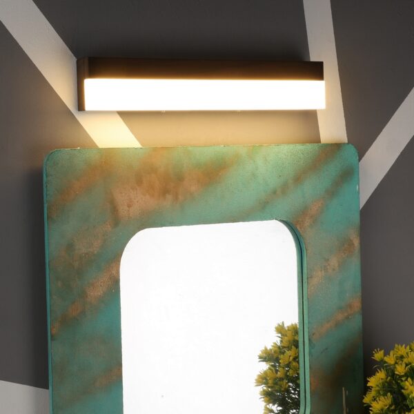 Brown (wood) finish LED wall light using high quality LED and driver with high success rate having less than 0.5% replacement with warm white (yellow) light output. Can also be used as a mirror light. Also available in bigger size with code ML337-S, ML337-L. It can be made in silver, antique, copper, white, and black finish having various width and wattage in case of bulk requirement.
