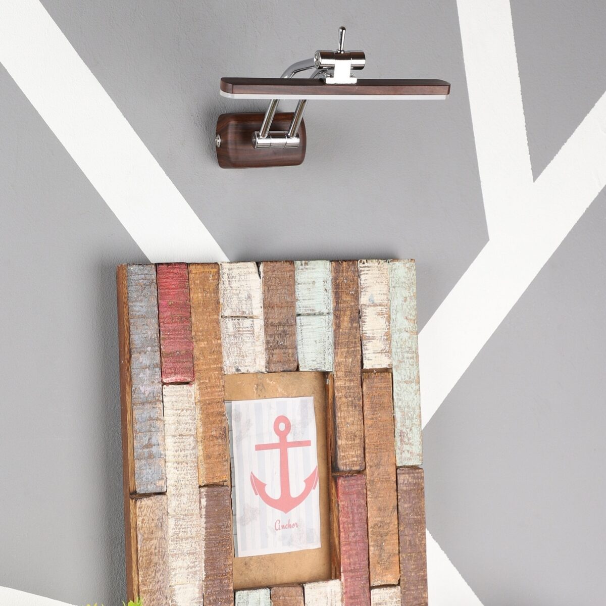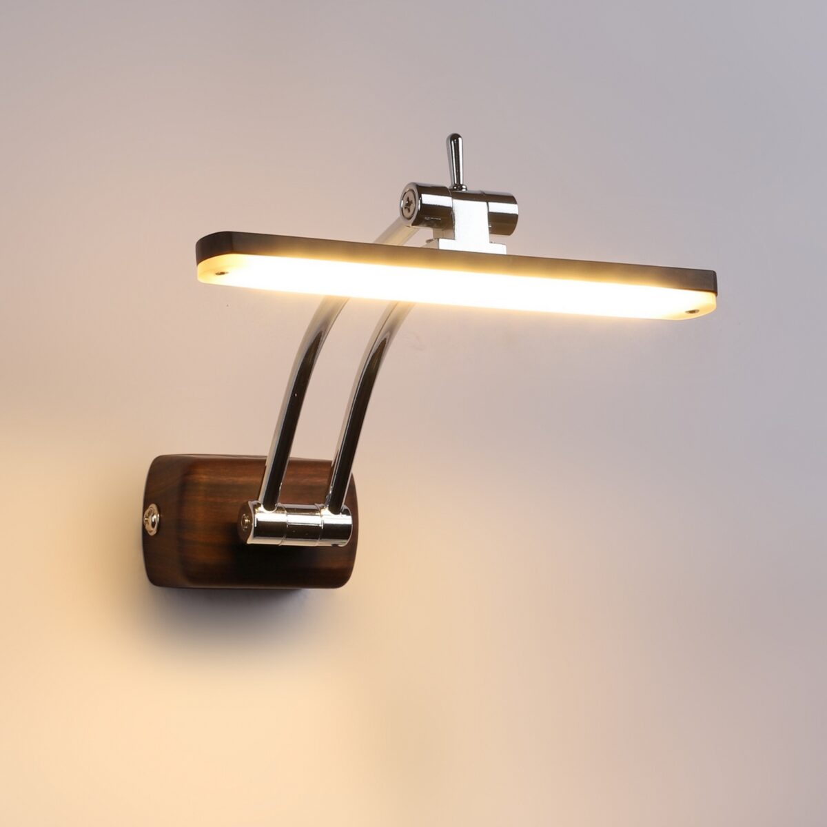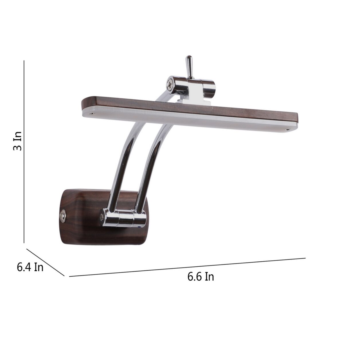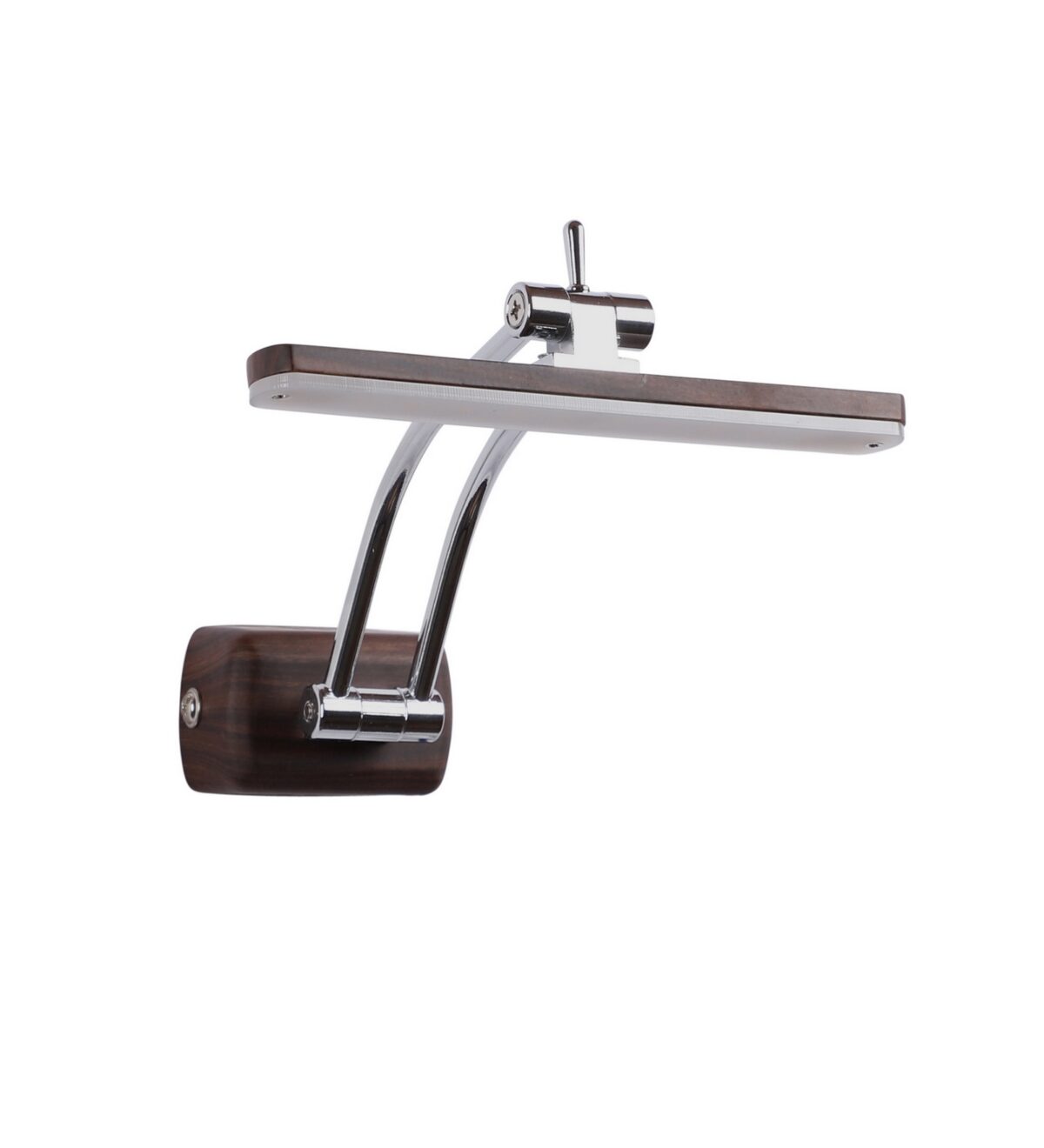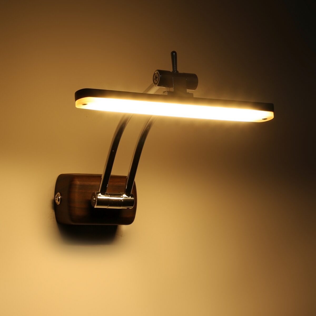 Exclusive dark brown (wood finish) LED picture light using high quality LED and driver with high success rate having less than 0.5% replacement with warm white (yellow) light output. It features two adjustible points. It is usually placed over the painting or a photo frame on the wall. Its premium quality wood finish makes it one of the best selling product in our catalogue. It is also available in medium and big sizes with codes ML333-M, ML333-L. it can be made in silver, antique, copper, white, and black finish in case of bulk requirement.