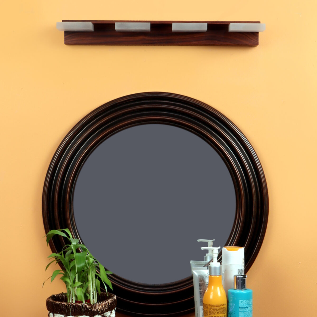 Exclusive dark brown (wood finish) LED mirror light using high quality LED and driver with high success rate having less than 0.5% replacement with warm white (yellow) light output. It is usually placed over the mirror. Can also be used as a picture light or a wall light. It can be made in silver, antique, copper, white, and black finish with two, three, five and six lamp units also, in case of bulk requirement. Please scroll down to see matching products.