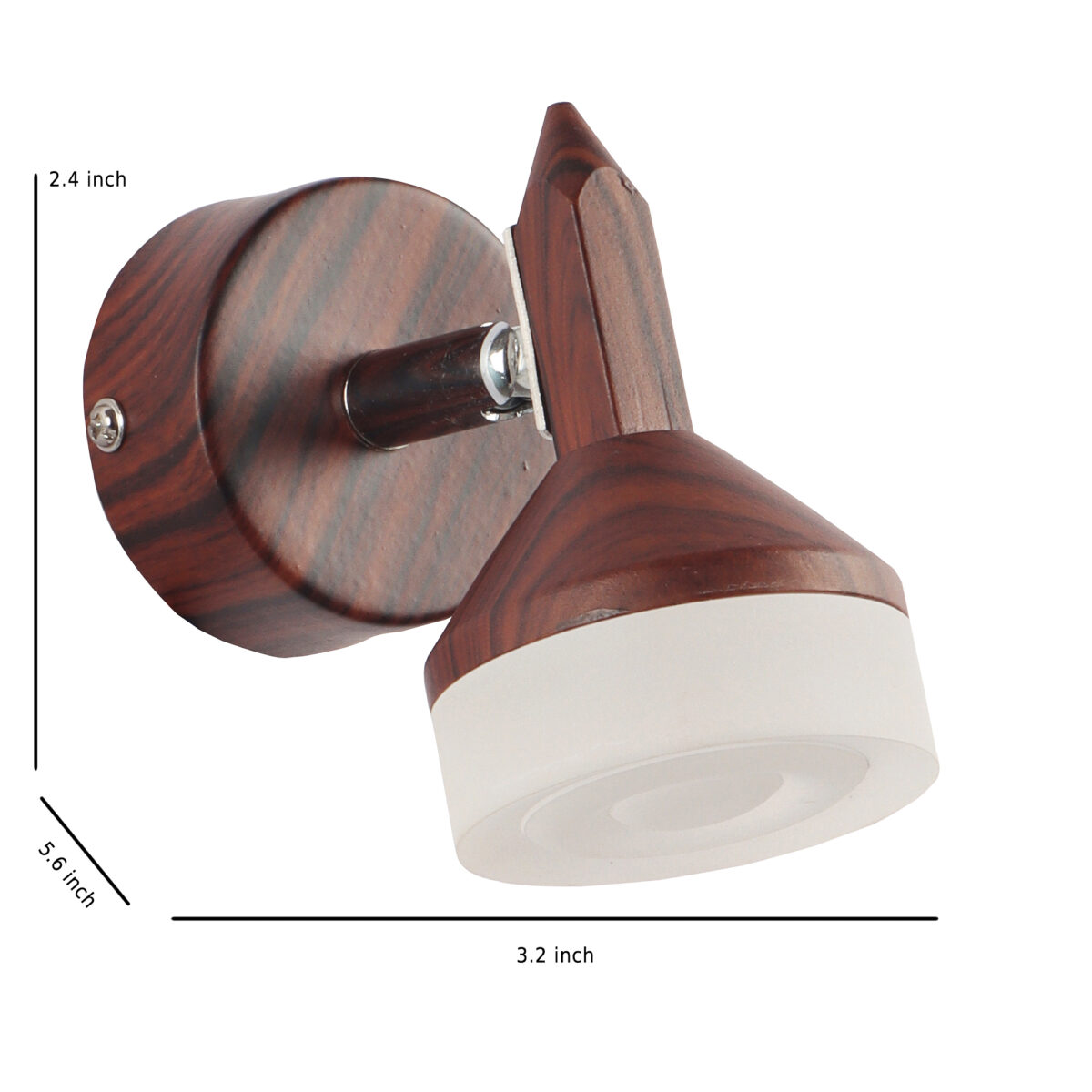 Aluminium die cast, premium brown (wood finish with grains) adjustable spot/picture light. It is having a spot of 5W to provide a very bright warm white (yellow)output. The light emitting spot is mounted on a rotatable neck which can be rotated in all the directions enabling spot to be positioned wherever required. Picture lights are functional wall lights which offer a direct light on the object we need to enhance. Can also be made available in white (6000K) and neutral white (4000K) light output for bulk requirement. Also available in two spot option with code ML370-2. Can also be made available in three, four, five and six spot options in case of bulk requirement.