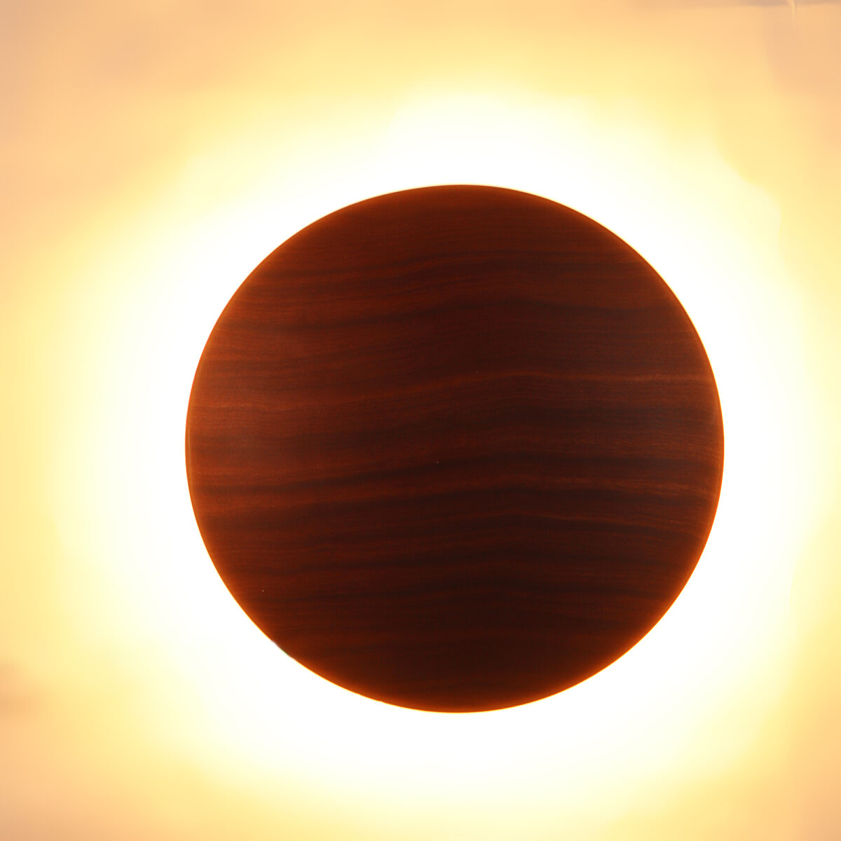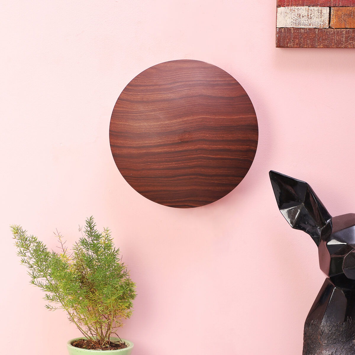 Wood finish, aluminium sheet round LED wall light with indirect light, using high quality LED and driver with high success rate having less than 0.5% replacement with warm white (yellow) light output.This design is largely preferred by architects and interior designers. Application includes both residential and commercial premises. Can also be used as a wall highlighter. Also available in attractive glossy marble finish with codes WL2549, WL2550.