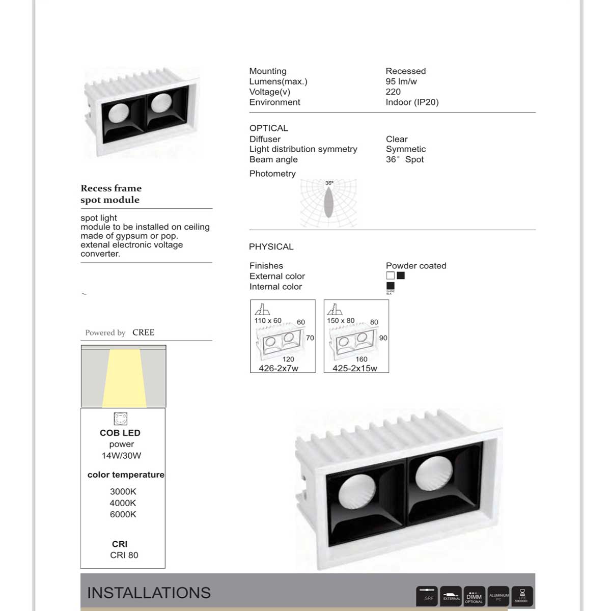 Premium aluminium die cast powder coated white finish 2 x 7watt LED down light with CREE COB and top branded LED driver.