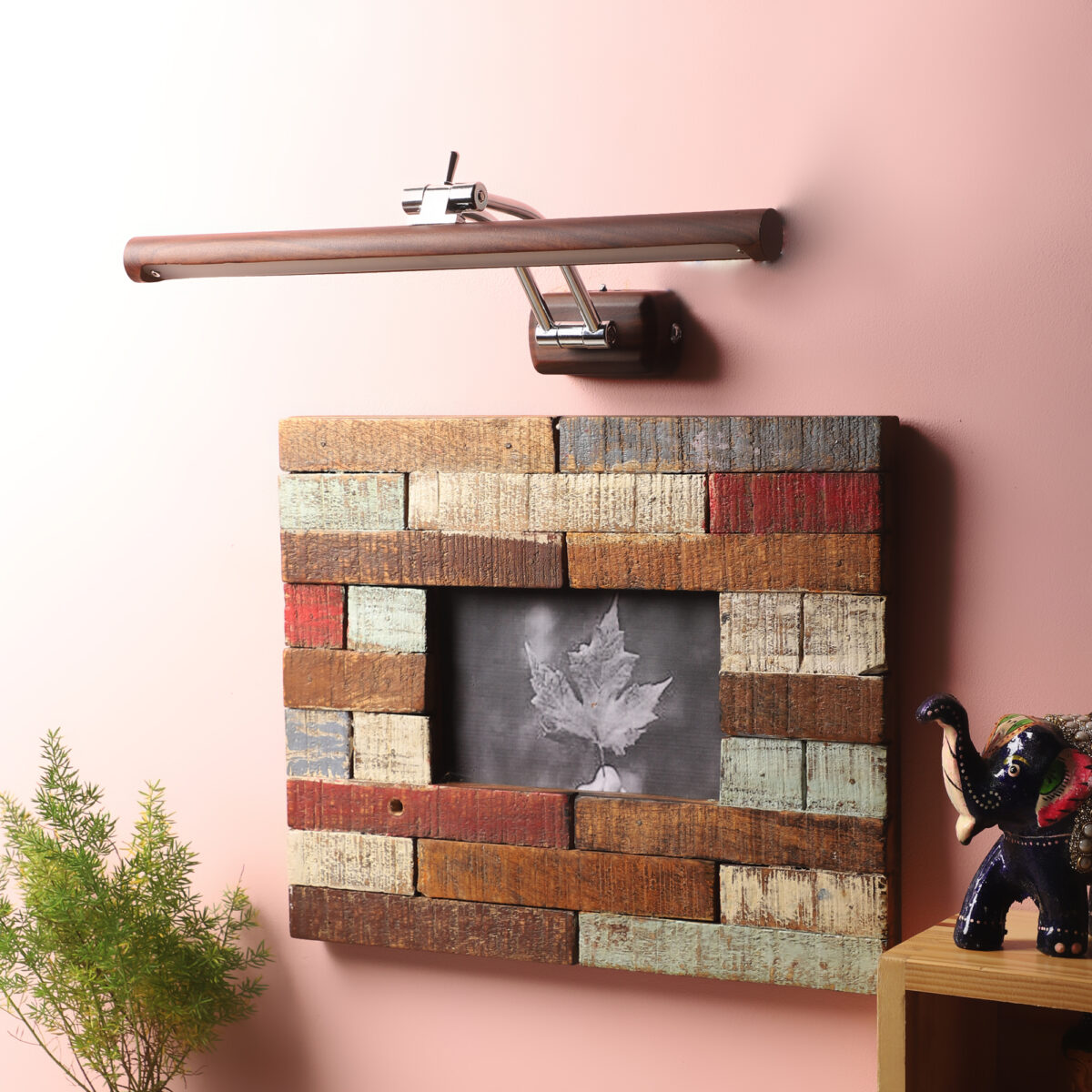 Exclusive brown (wood) LED picture light using high quality LED and driver with high success rate having less than 0.5% replacement with warm white (yellow) light output. It features two adjustible points. It is usually placed over the painting or a photo frame on the wall. It is one of the best selling product in our catalogue. it can be made in silver, antique, copper, white, and black finish in case of bulk requirement.