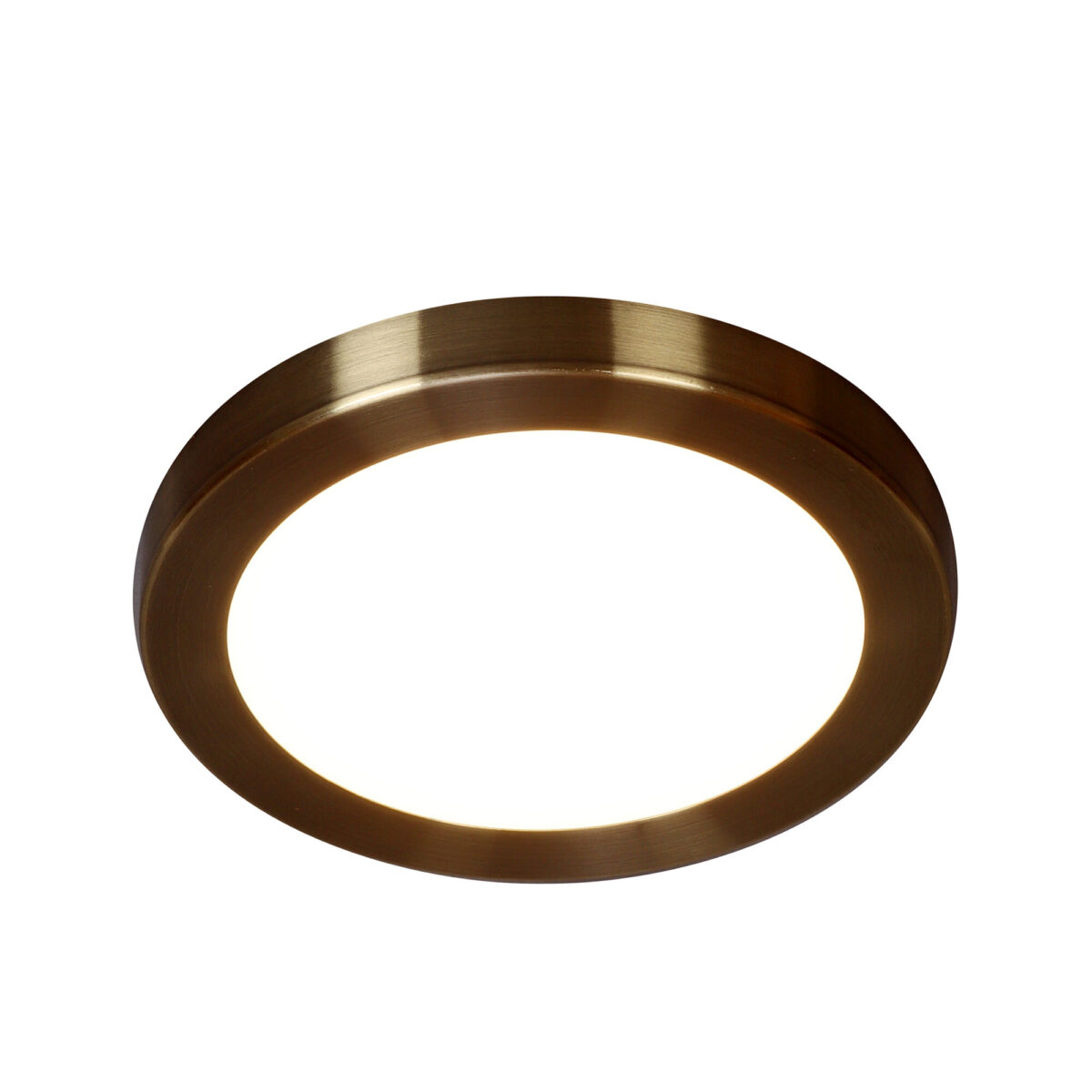 Antique brass finish square LED surface seiling light with warm white (yellow) light output. Can be used both indoors and outdoors.